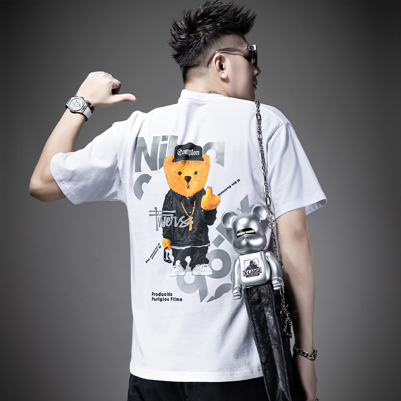 Мужская хлопковая летняя футболка, свободный крой, с медвежатами, короткий рукав