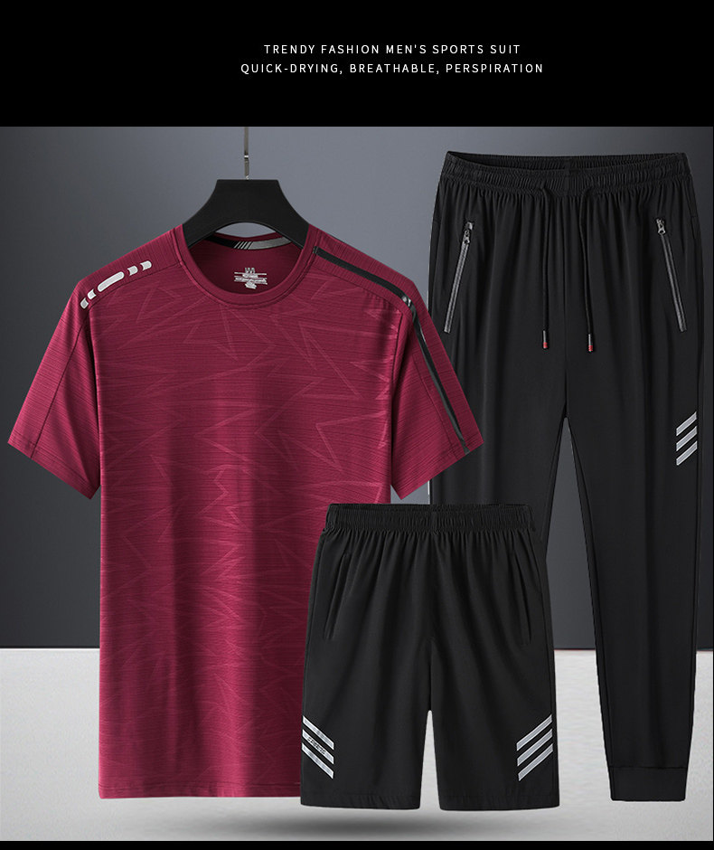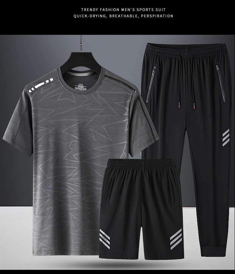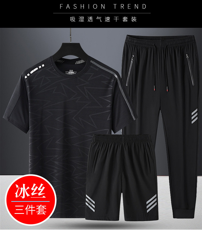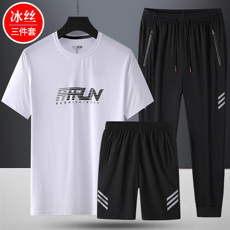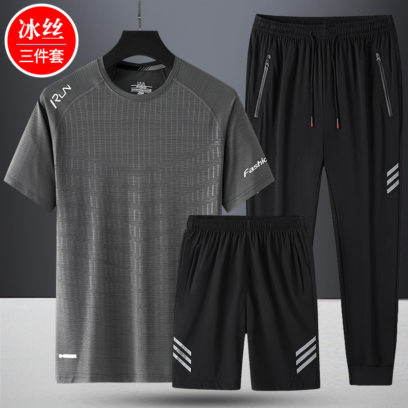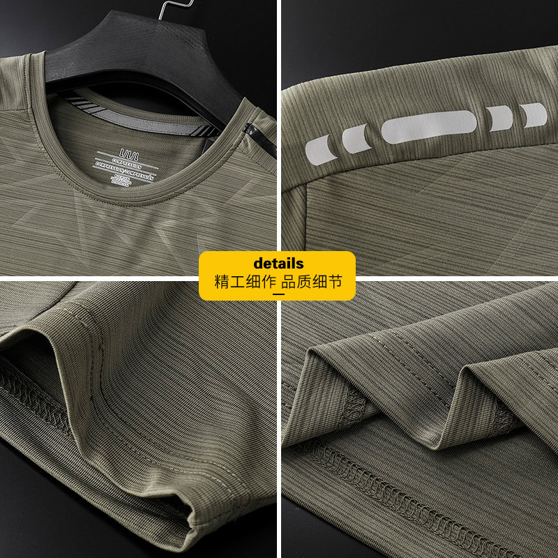 Комплект, летняя спортивная дышащая шелковая футболка с коротким рукавом для спортзала, 3 предмета, короткий рукав