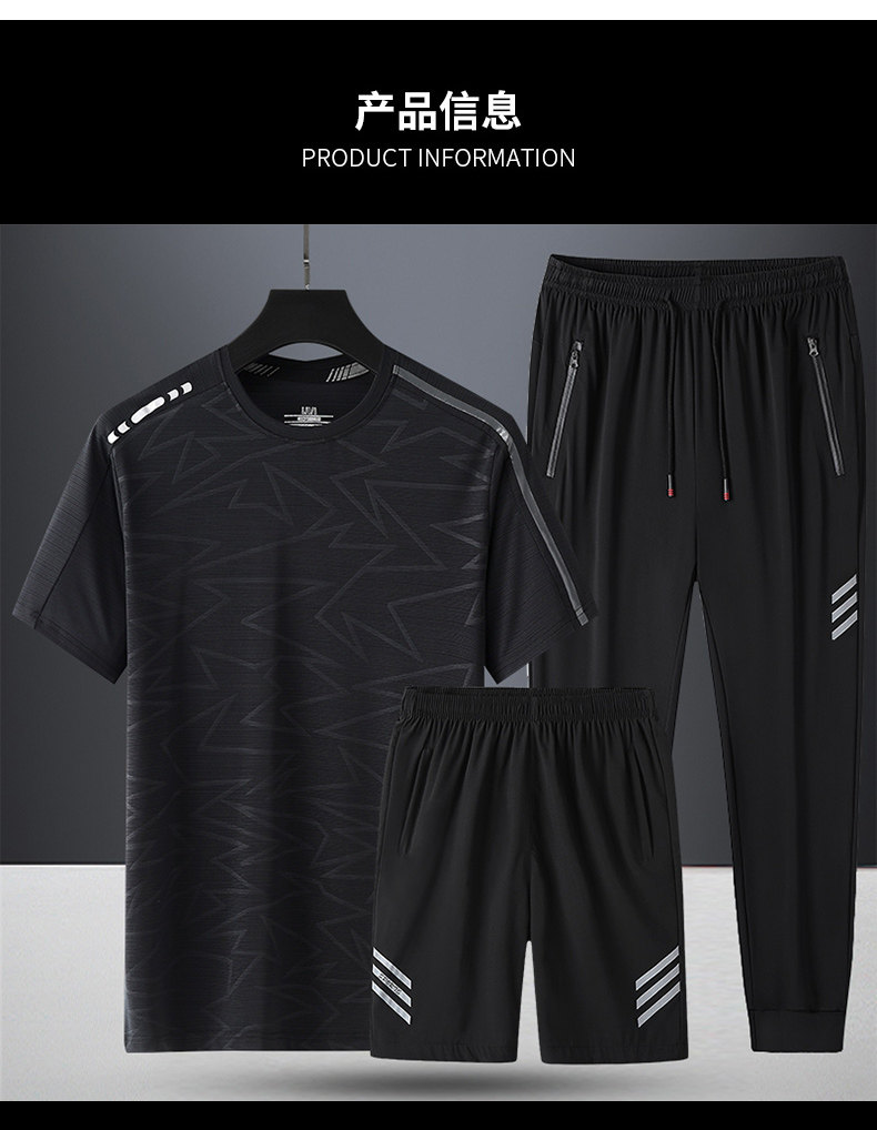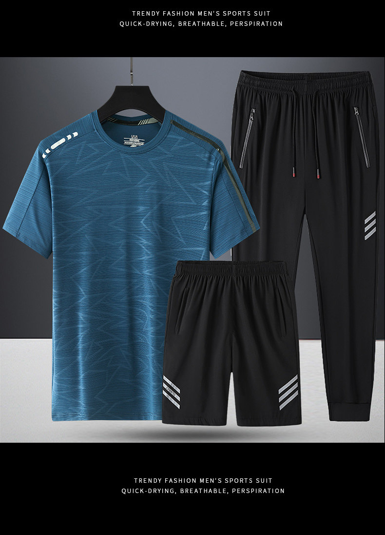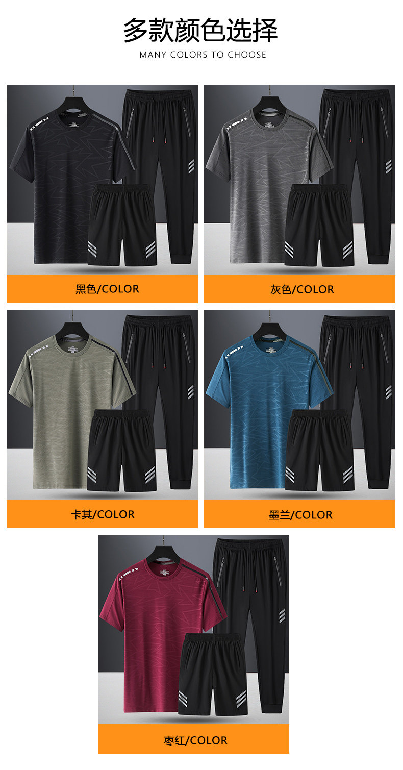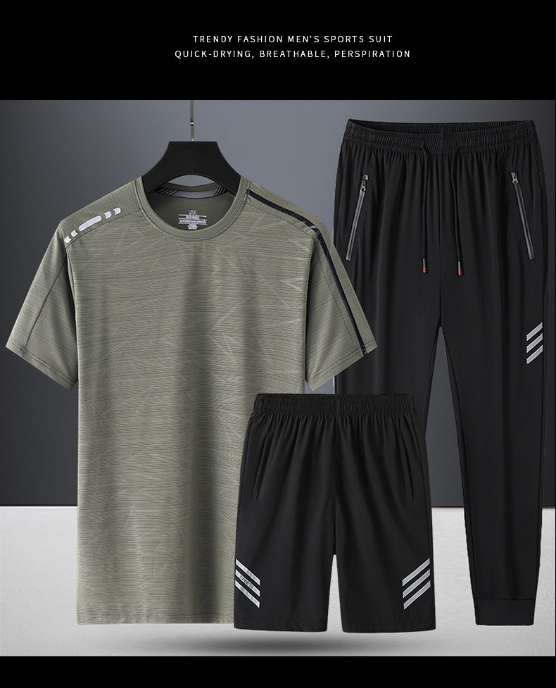 Комплект, летняя спортивная дышащая шелковая футболка с коротким рукавом для спортзала, 3 предмета, короткий рукав