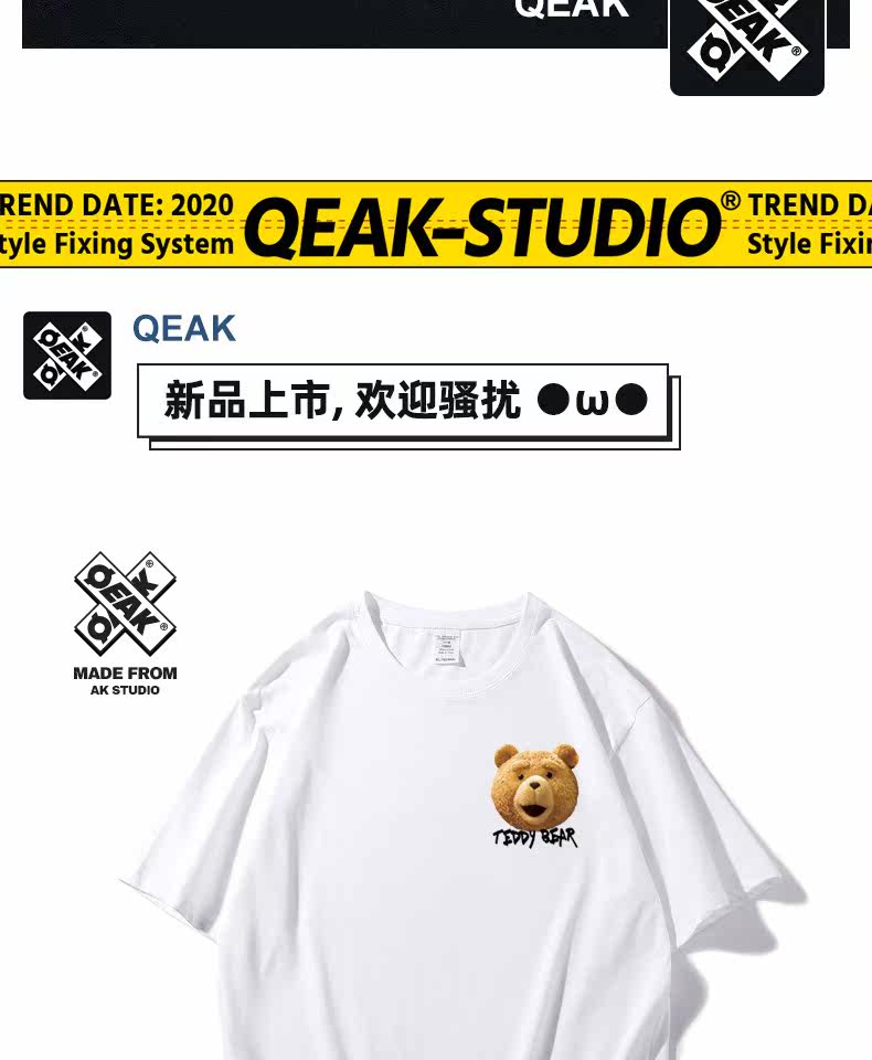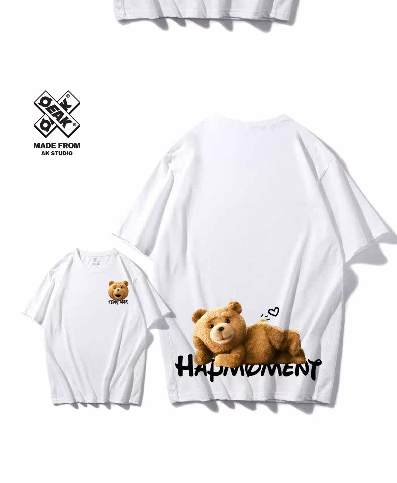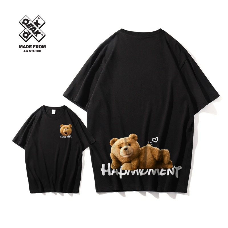 Tide, хлопковая футболка, с медвежатами, короткий рукав, в корейском стиле, для влюбленных