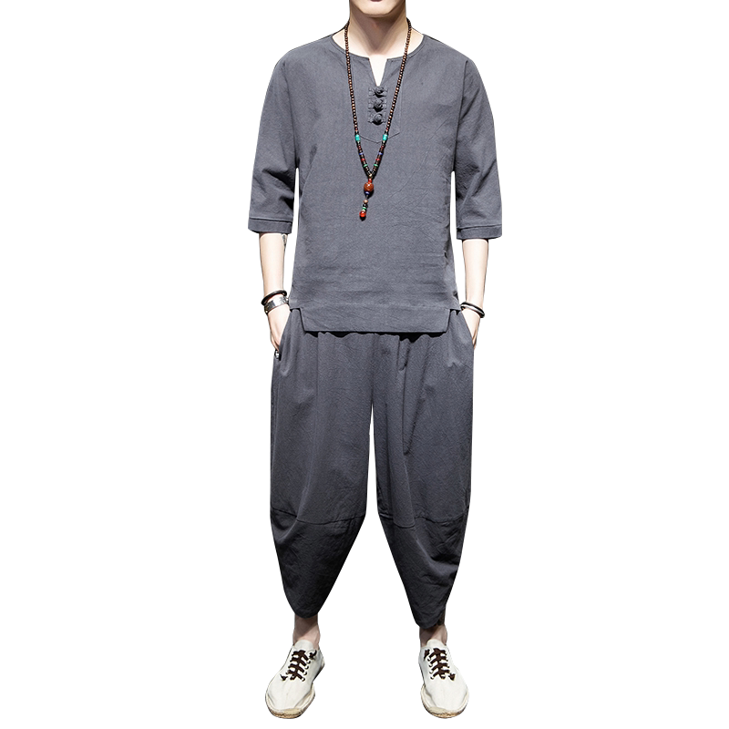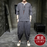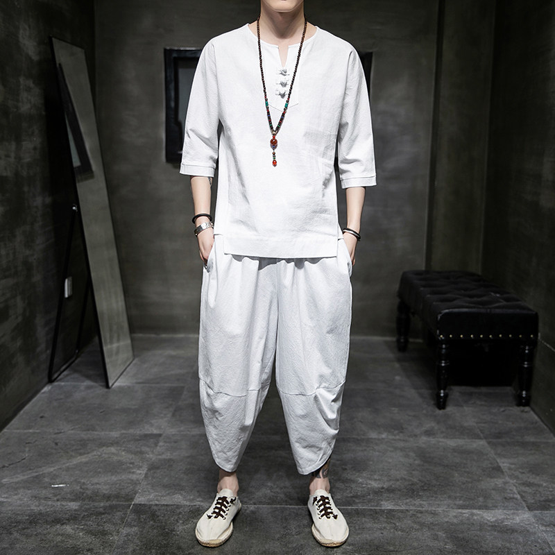Летний комплект, футболка с коротким рукавом для отдыха, ханьфу, китайский стиль, оверсайз, большой размер, из хлопка и льна