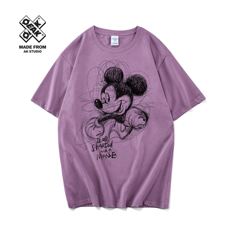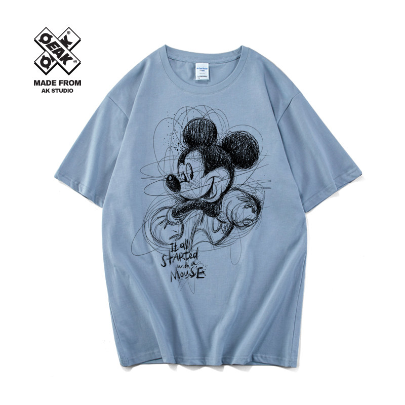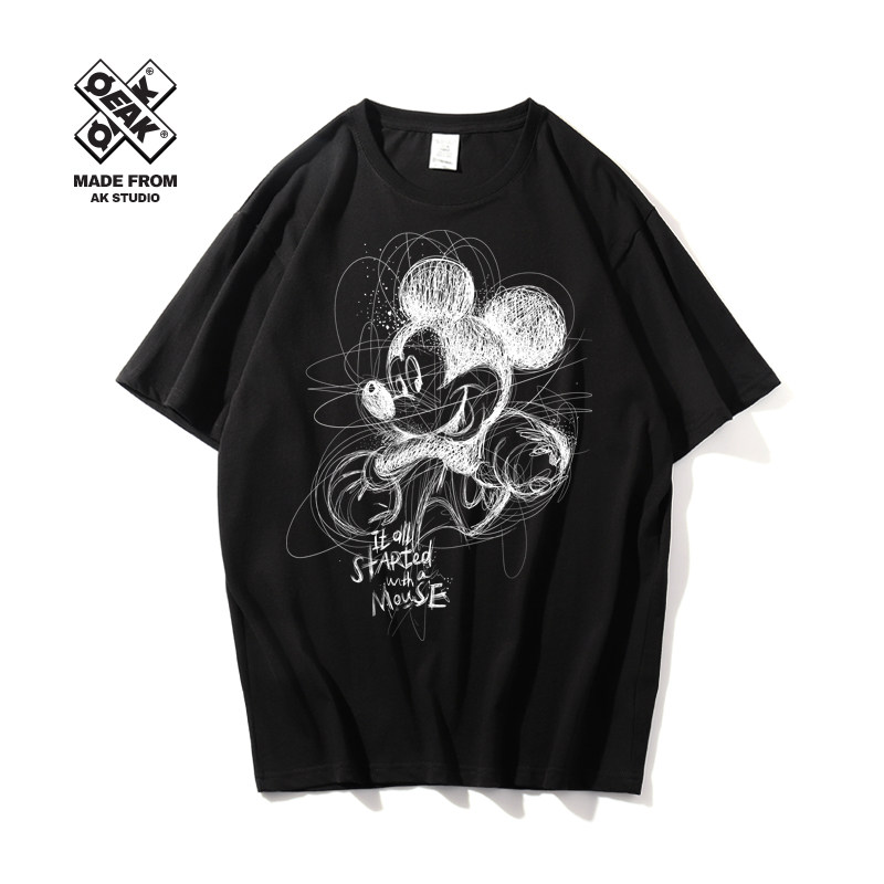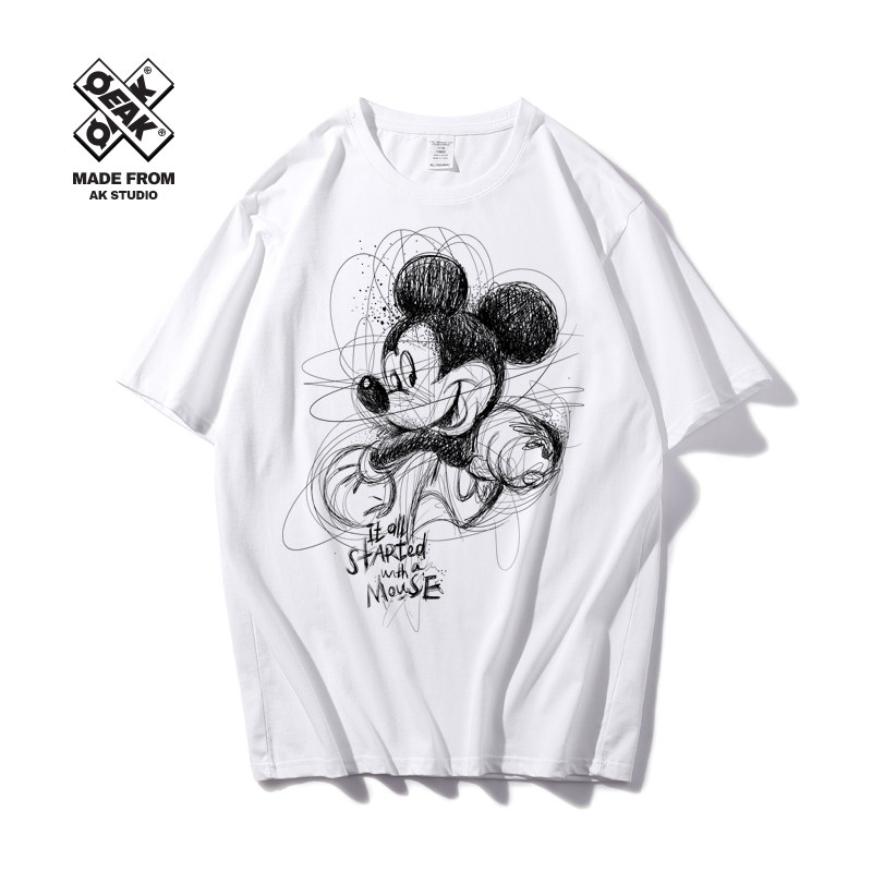 Мультяшная белая хлопковая брендовая футболка подходит для мужчин и женщин, ручная роспись, принт, короткий рукав, коллекция 2021, в корейском стиле, для влюбленных