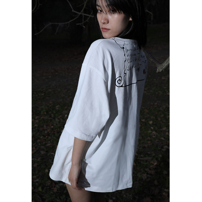 Японская ретро хлопковая футболка с коротким рукавом, принт, свободный крой