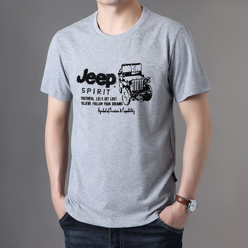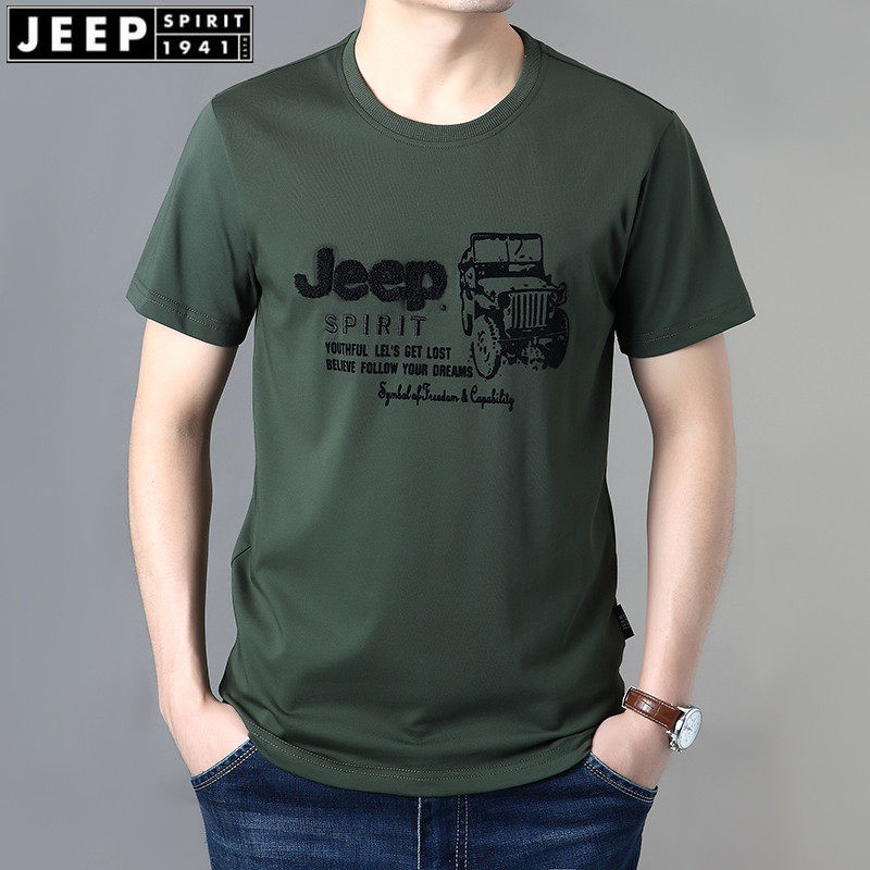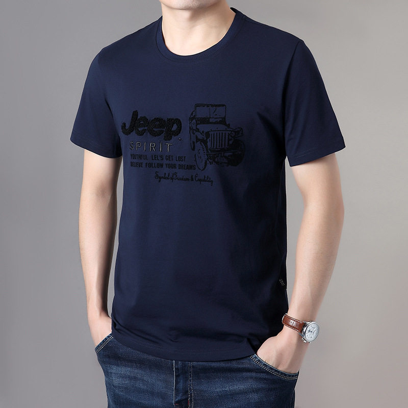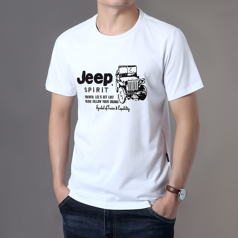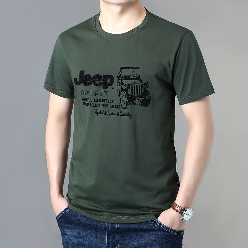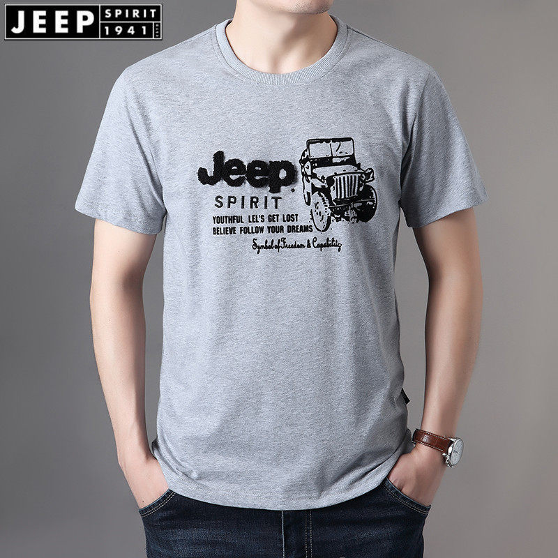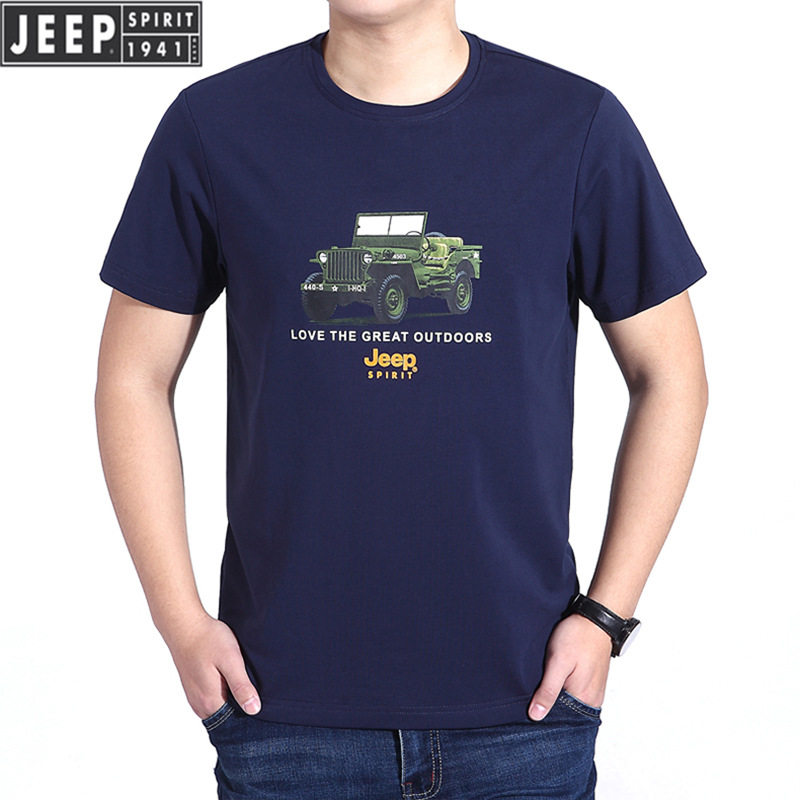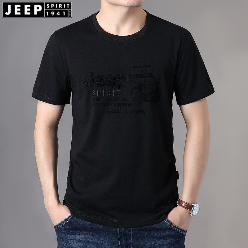 Джип, базовая приятная телу хлопковая футболка с коротким рукавом, большой размер