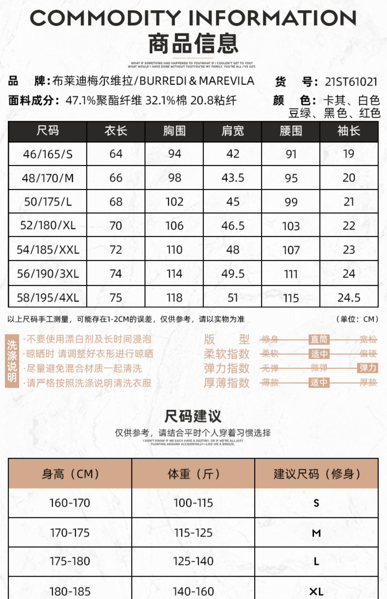 | Размер: | 46/S/165, 48/M/170, 50/L/175, 52/XL/180, 54/XXL/185, 56/XXXL/190, 58/XXXXL/195, Пожалуйста, проконсультируйтесь с обслуживанием клиентов для точного кода |