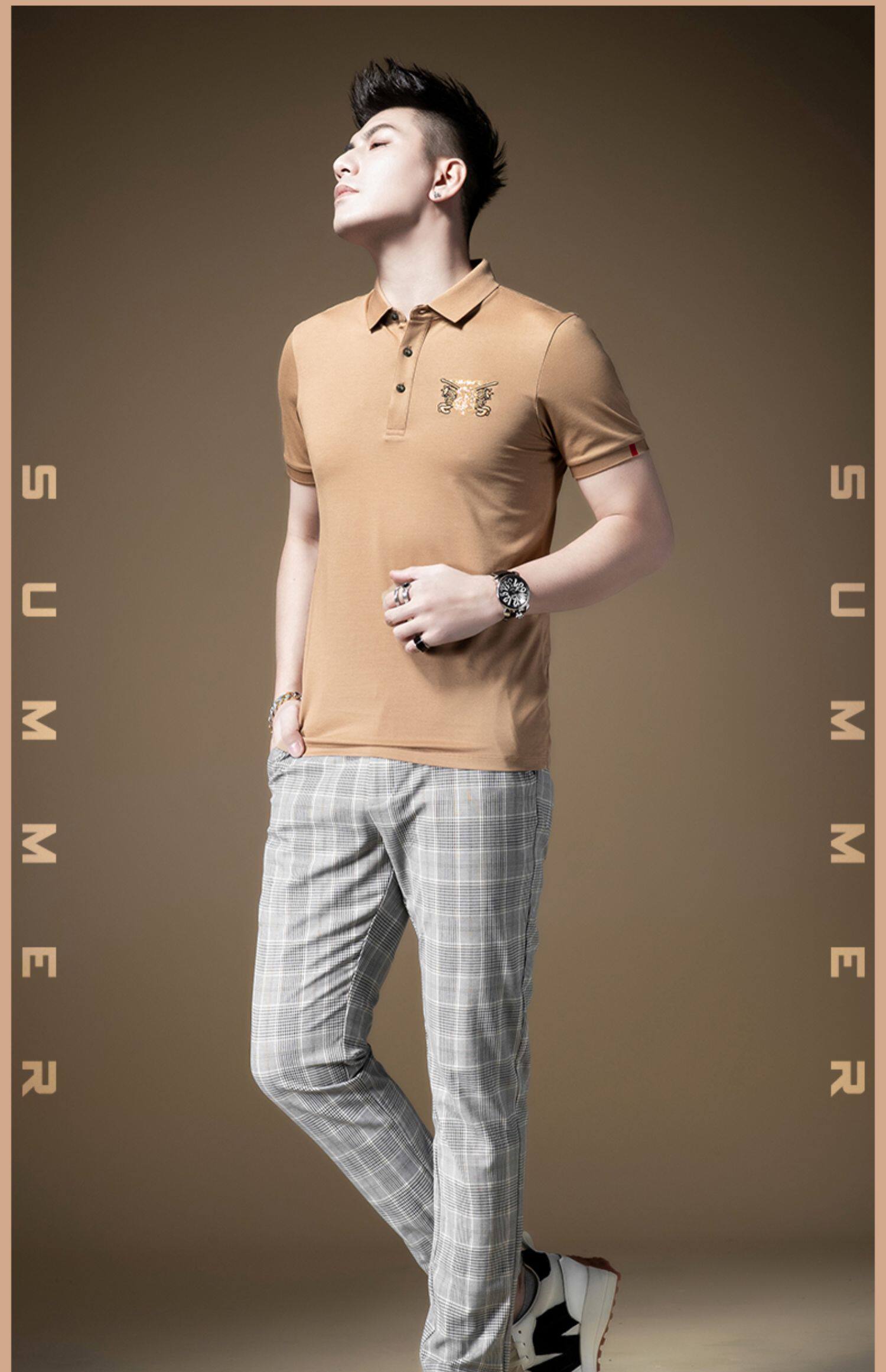 Модная элитная футболка polo, с вышивкой, короткий рукав
