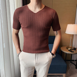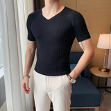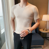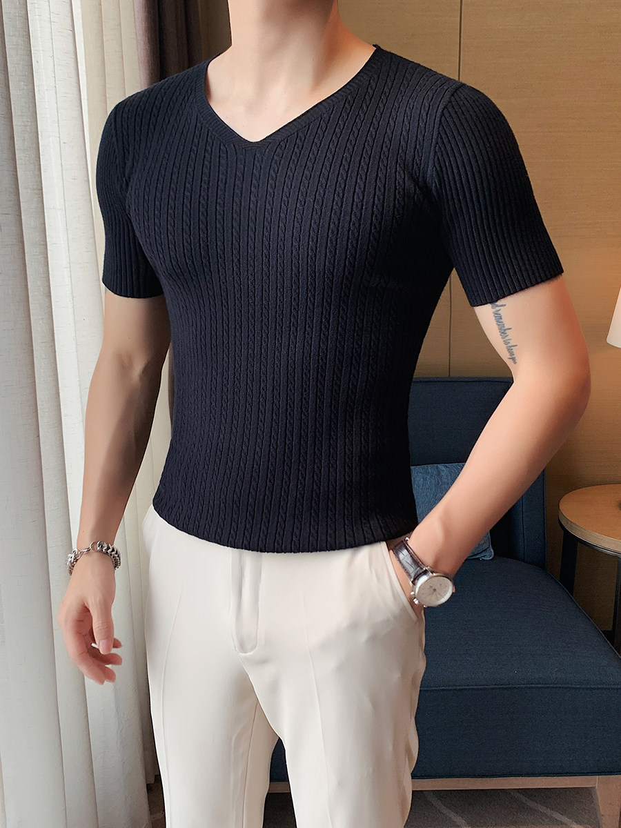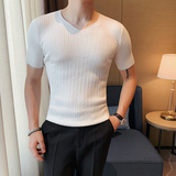 Мужская тонкая элитная базовая приятная телу трикотажная шелковая футболка с коротким рукавом, V-образный вырез, в корейском стиле
