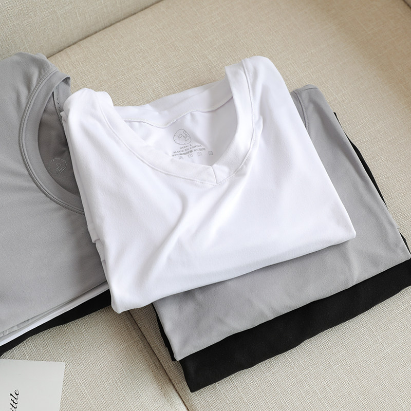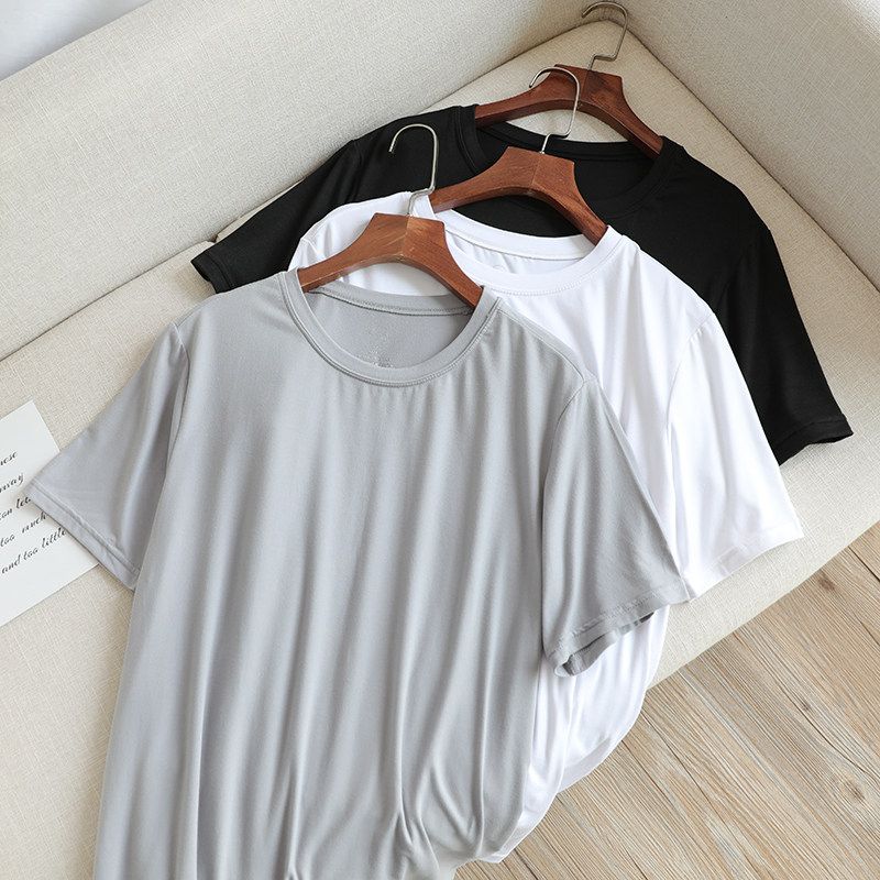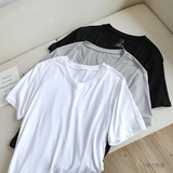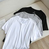 Мужская маска для лица, однотонная базовая приятная телу шелковая футболка с коротким рукавом с круглым воротником, 3 шт, короткий рукав, сезон 2021, V-образный вырез