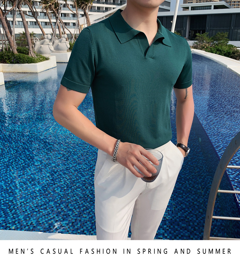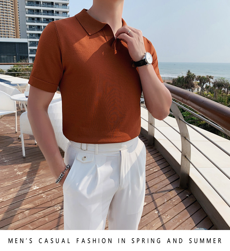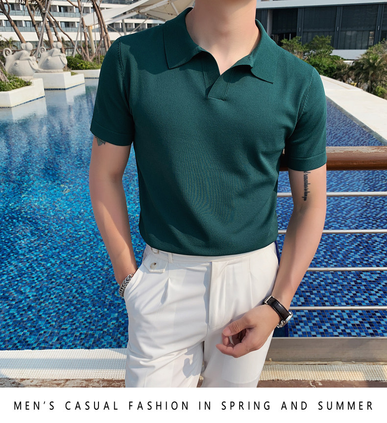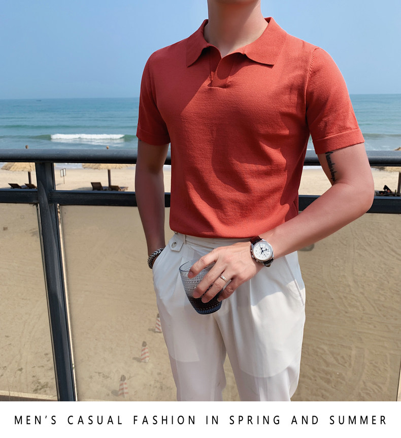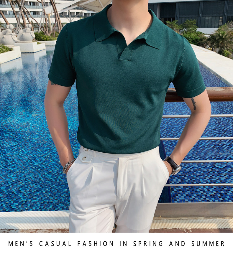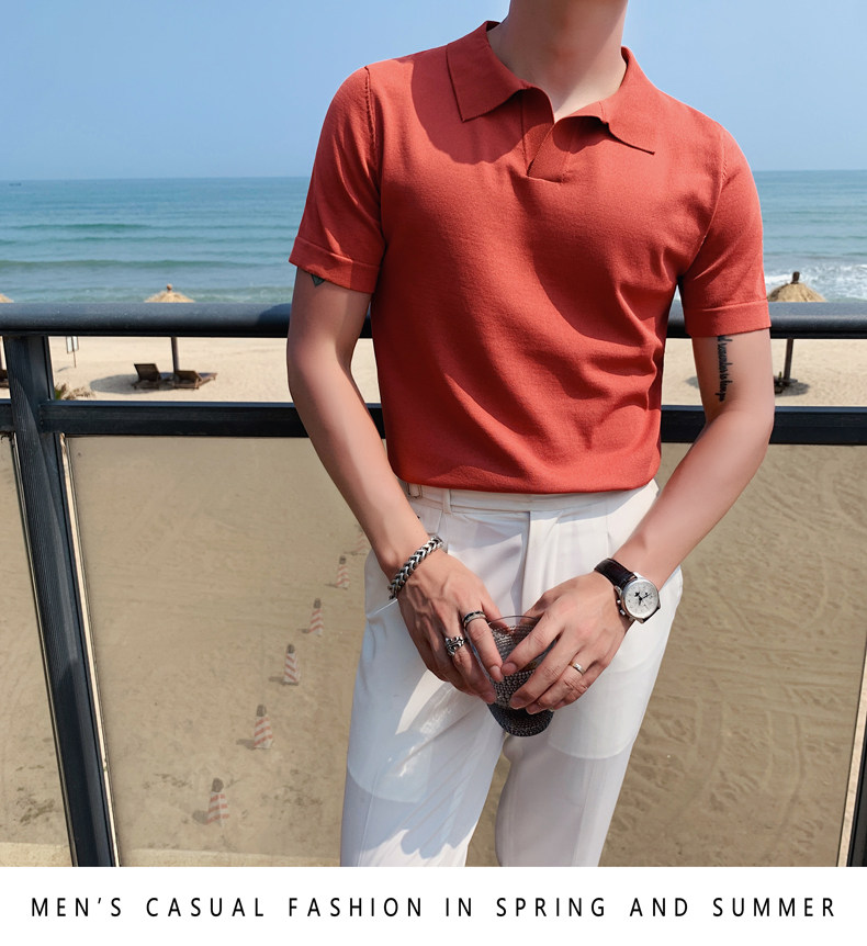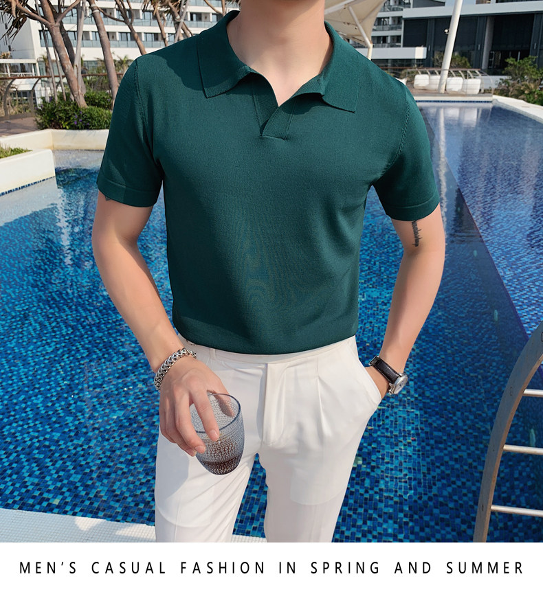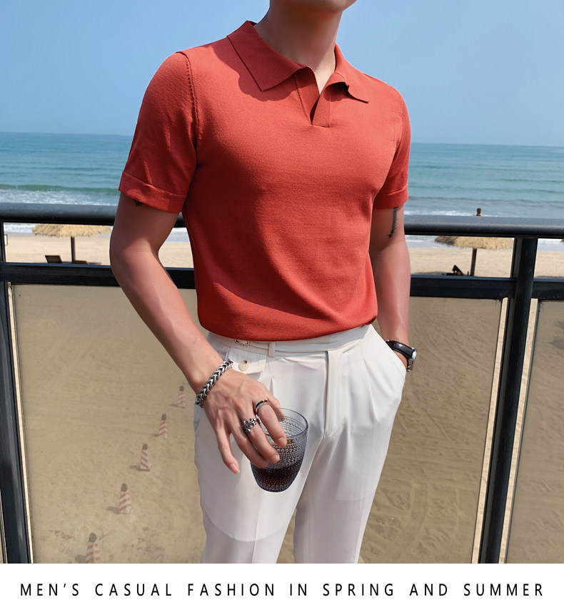 Футболка polo, летняя тонкая трикотажная мужская цветная шелковая трендовая рубашка для отдыха, в корейском стиле, облегающий крой