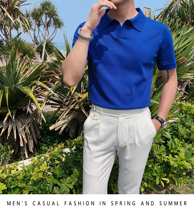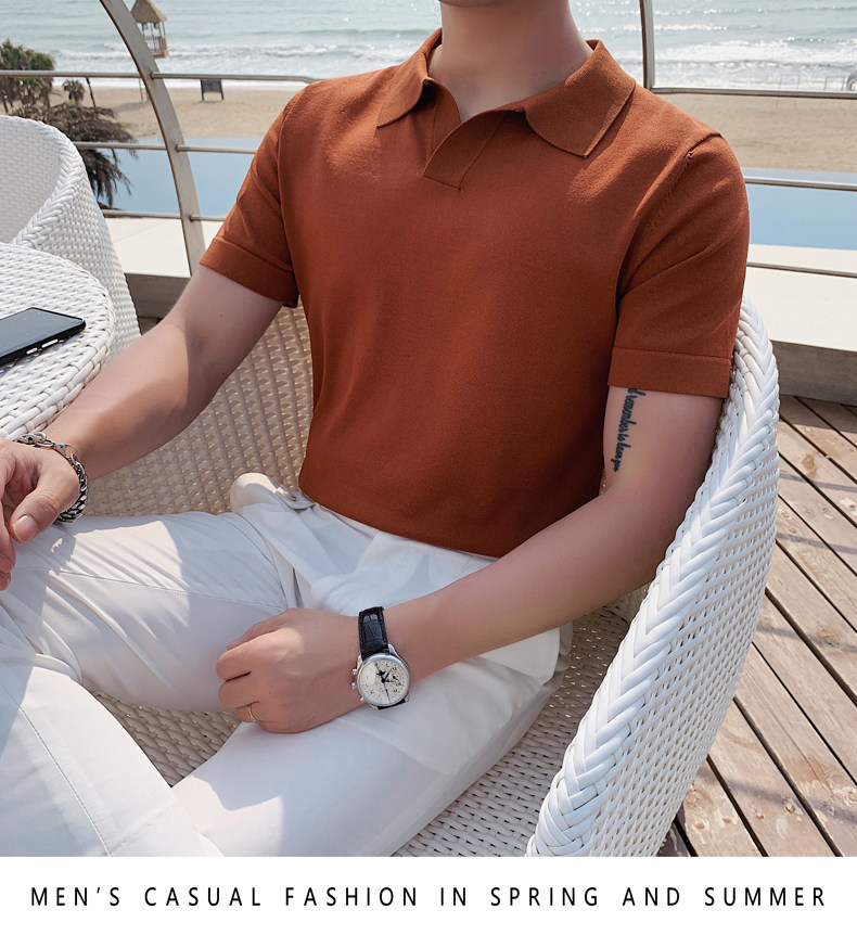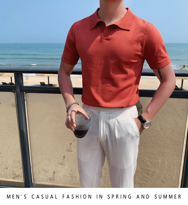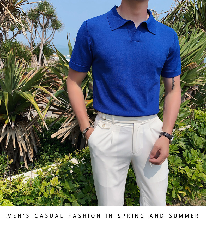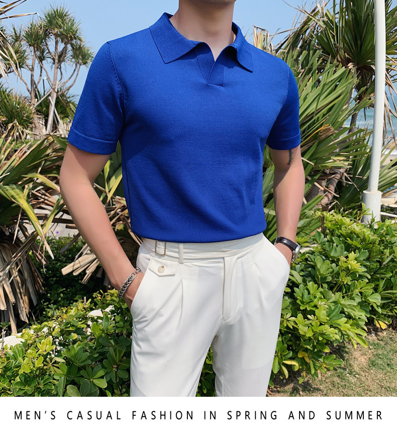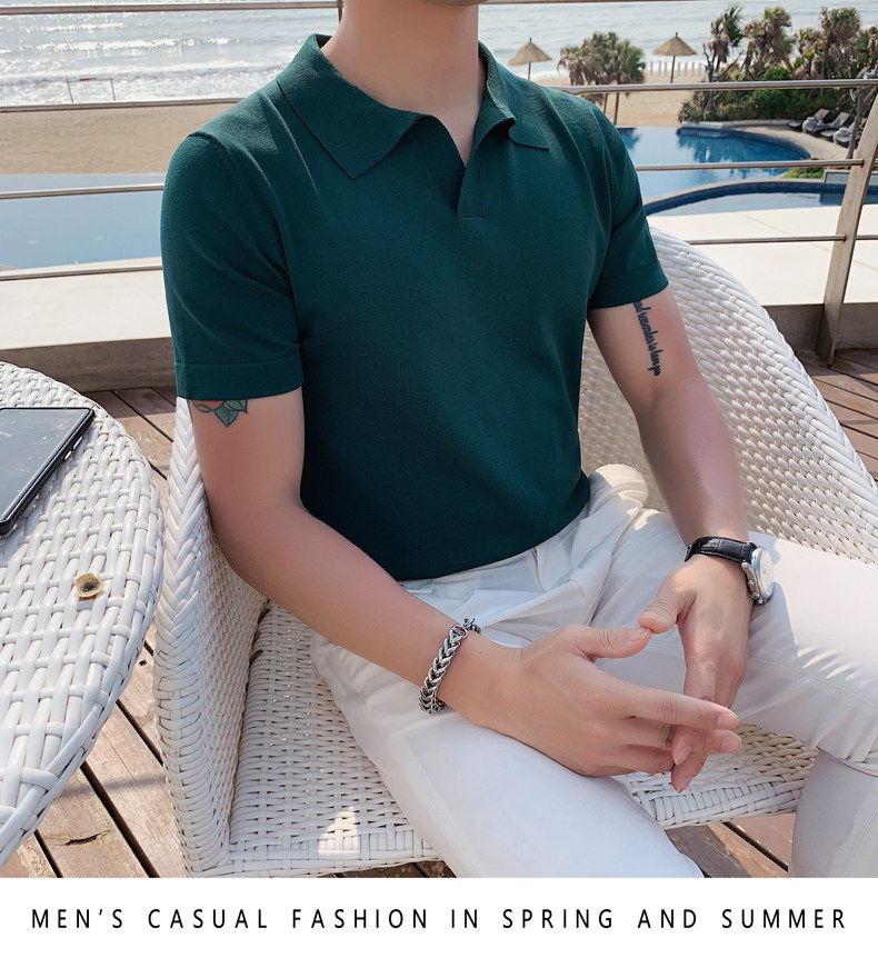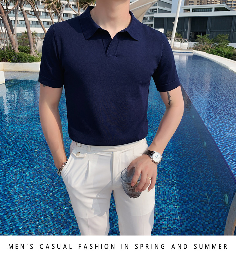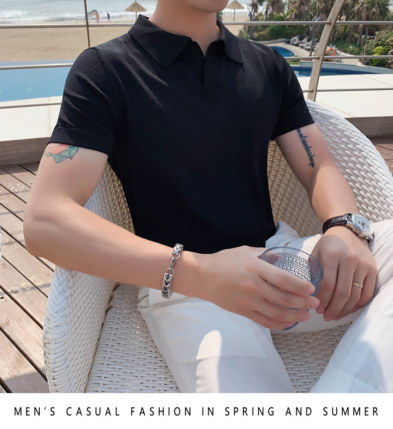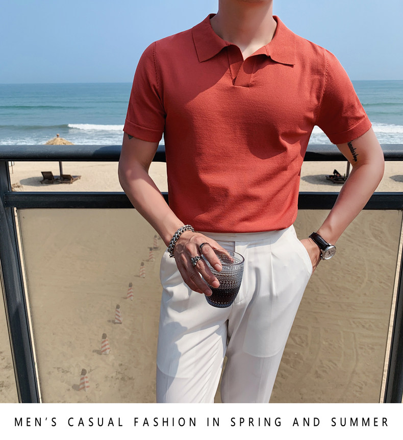 Футболка polo, летняя тонкая трикотажная мужская цветная шелковая трендовая рубашка для отдыха, в корейском стиле, облегающий крой