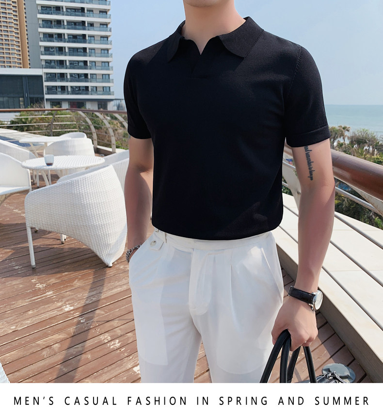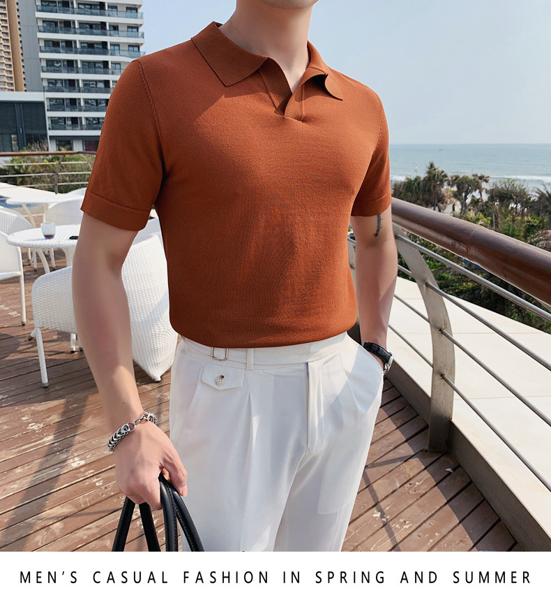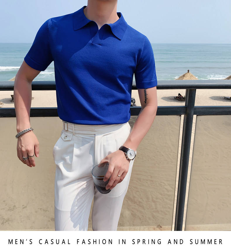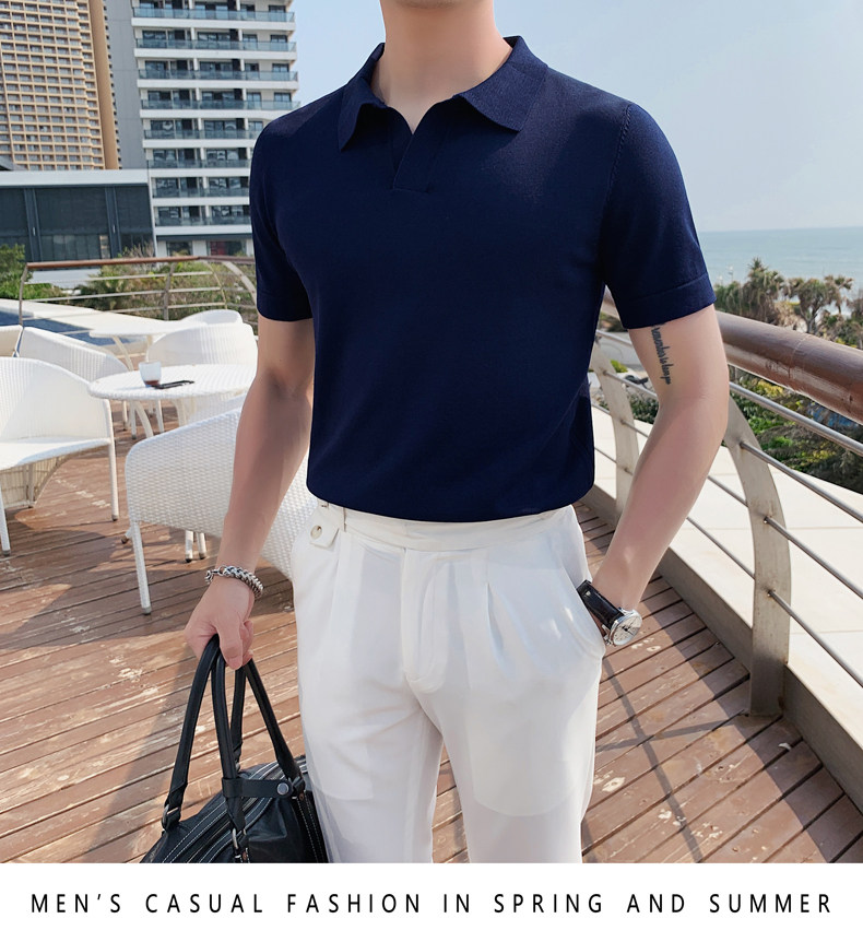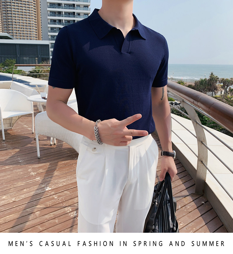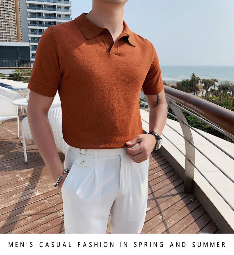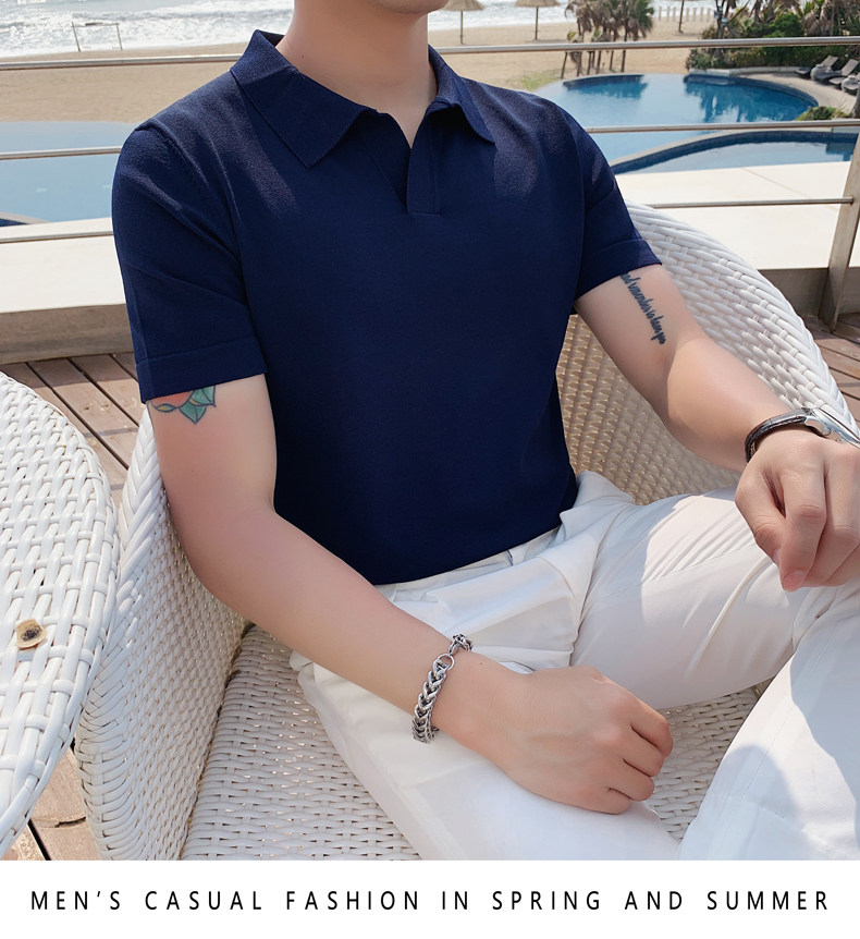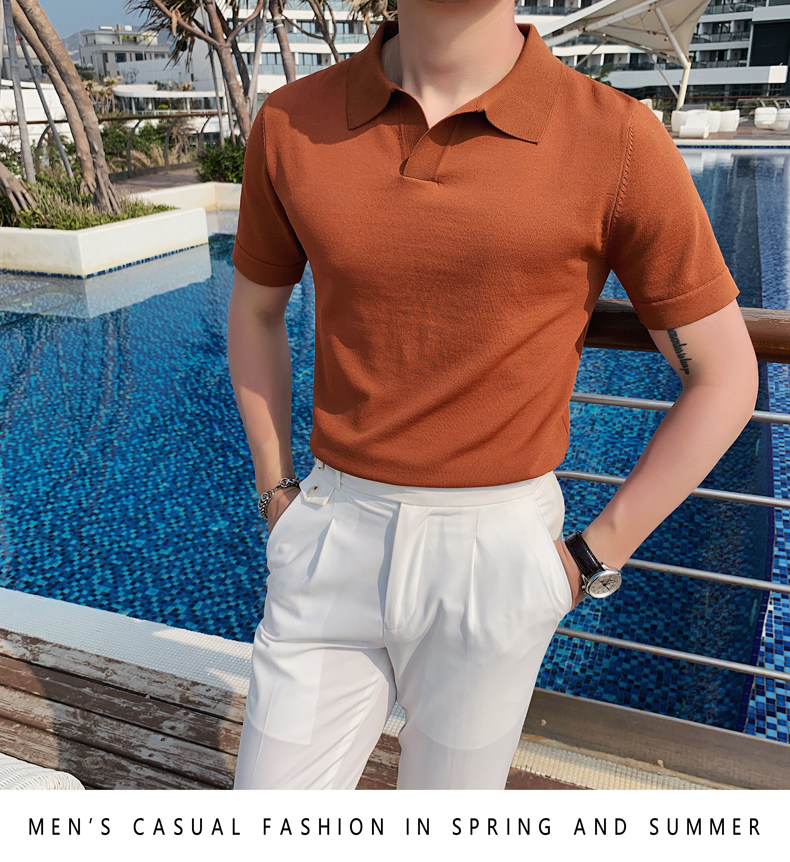 Футболка polo, летняя тонкая трикотажная мужская цветная шелковая трендовая рубашка для отдыха, в корейском стиле, облегающий крой