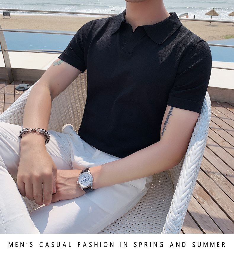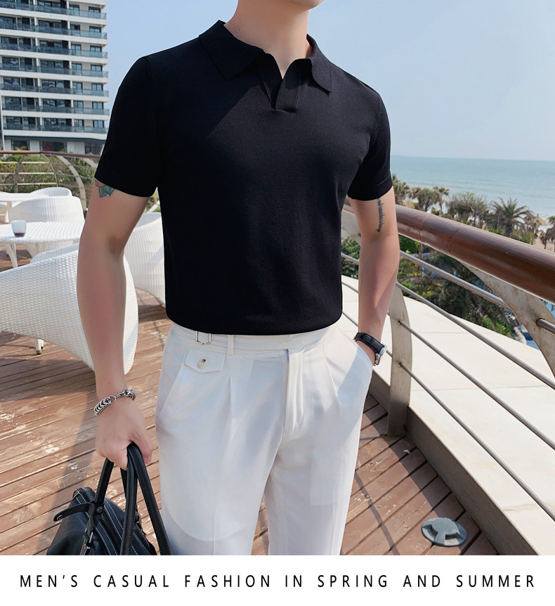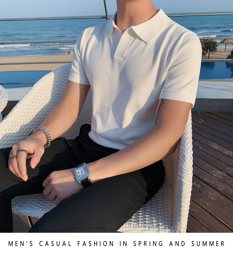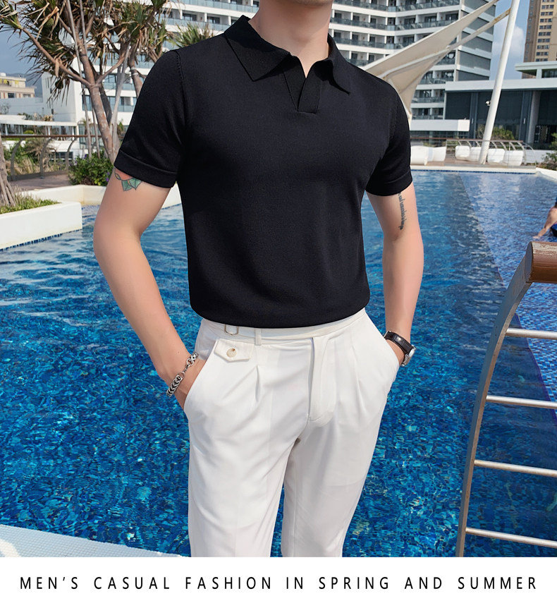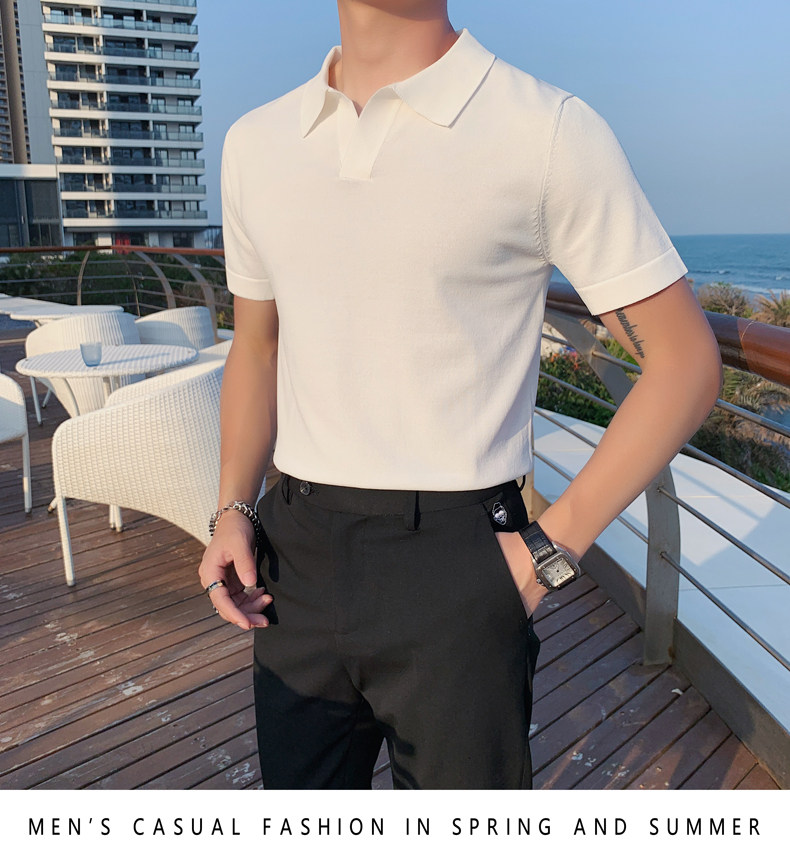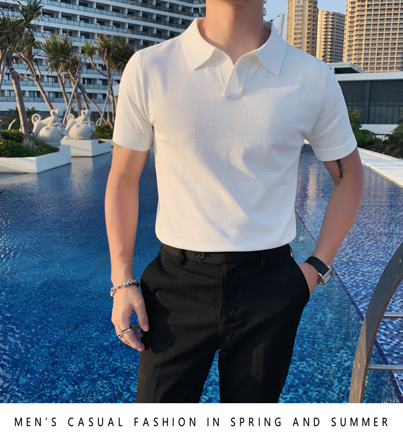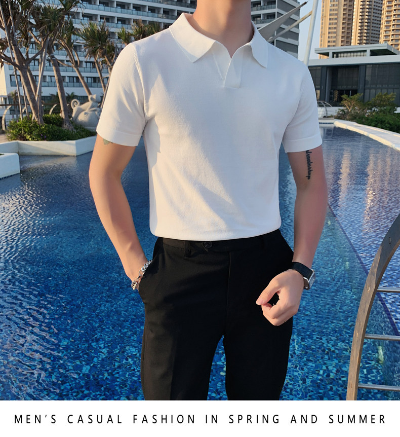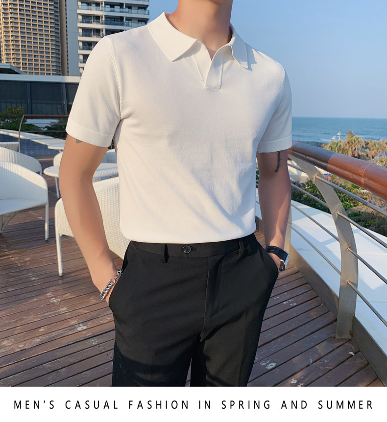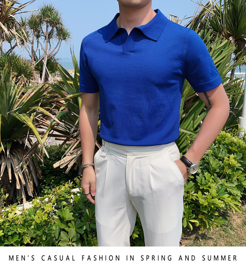 Футболка polo, летняя тонкая трикотажная мужская цветная шелковая трендовая рубашка для отдыха, в корейском стиле, облегающий крой