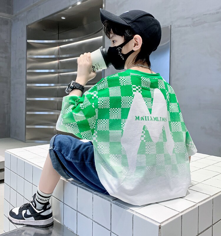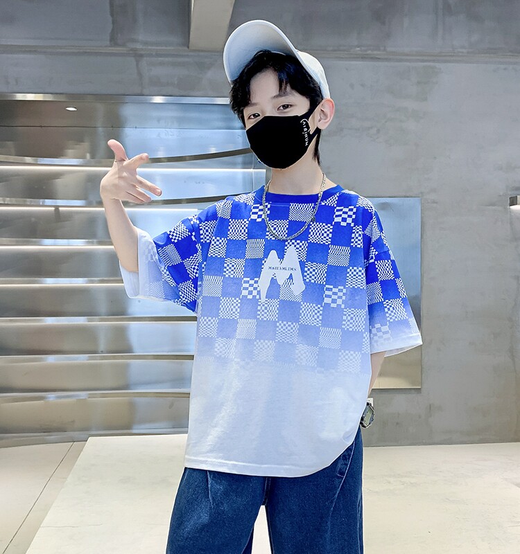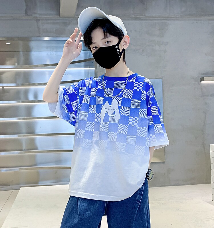 Летняя спортивная хлопковая трендовая футболка с коротким рукавом для мальчиков, подходит для подростков, 12-15 лет