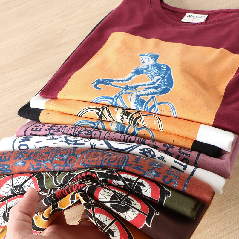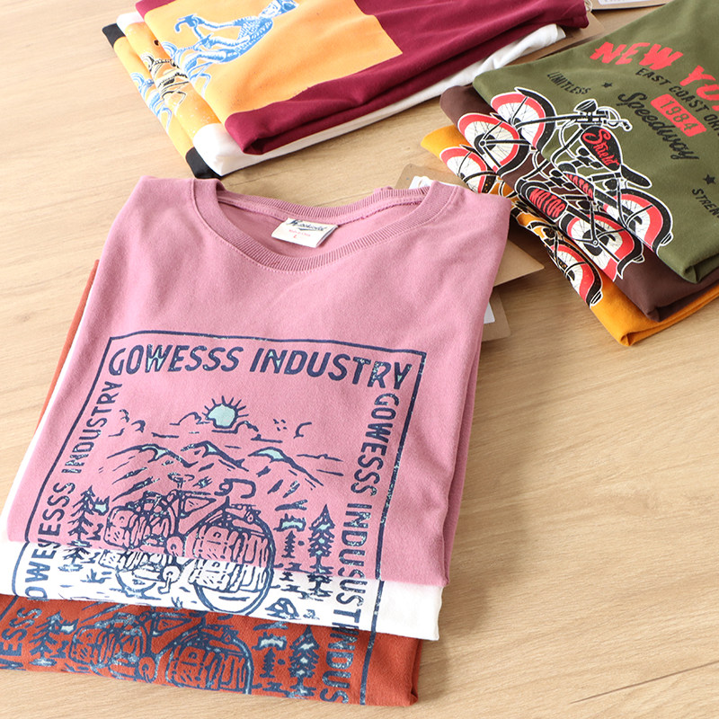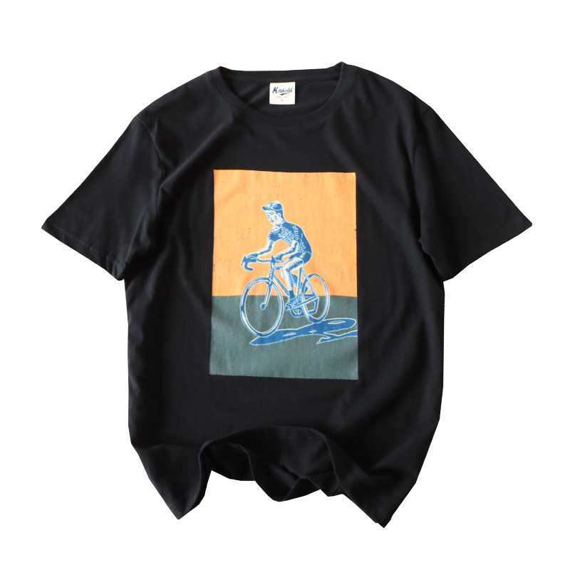 (Трансграничная торговля), японская ретро хлопковая базовая футболка подходит для мужчин и женщин, свободный крой