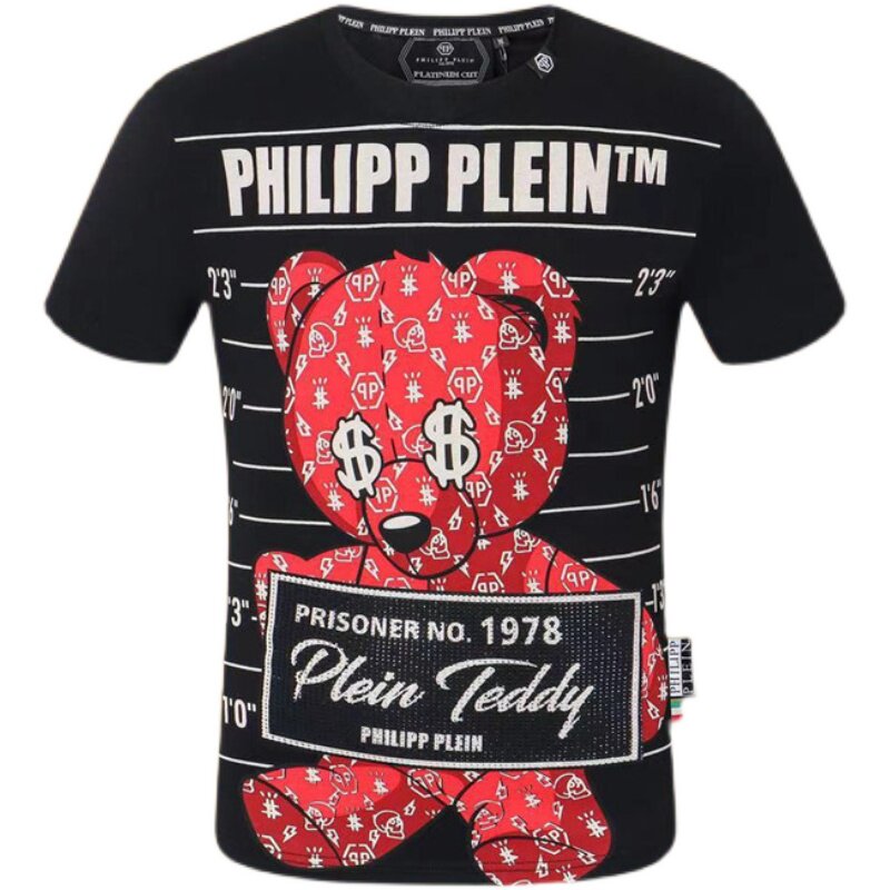 Мужская летняя мультяшная трендовая футболка с круглым воротником, европейский стиль, с медвежатами, короткий рукав, облегающий крой