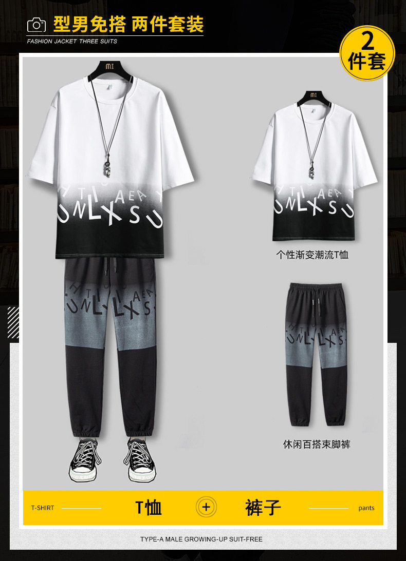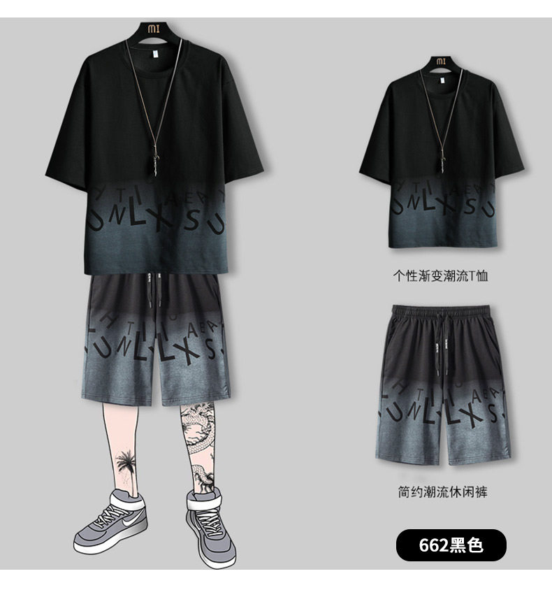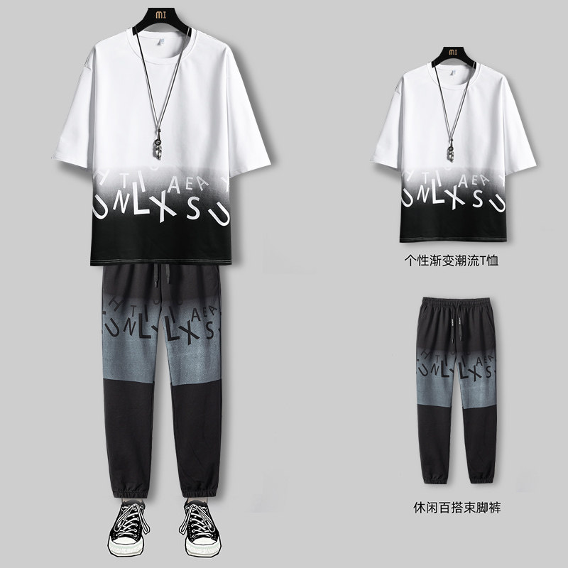 Мужской спортивный костюм, летняя шелковая футболка с коротким рукавом, короткий рукав, оверсайз