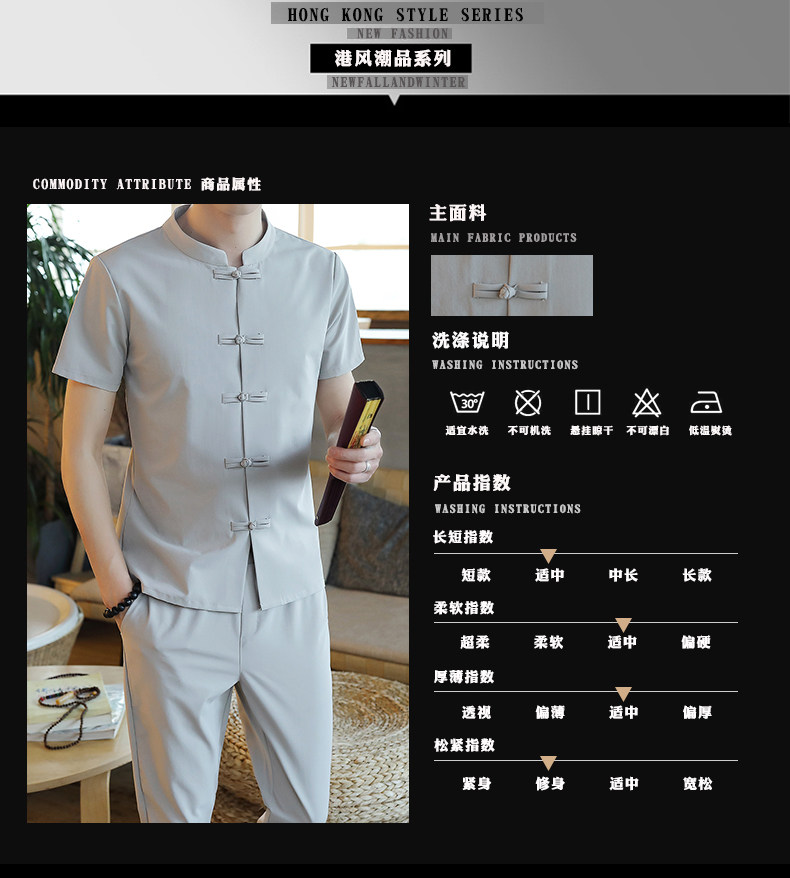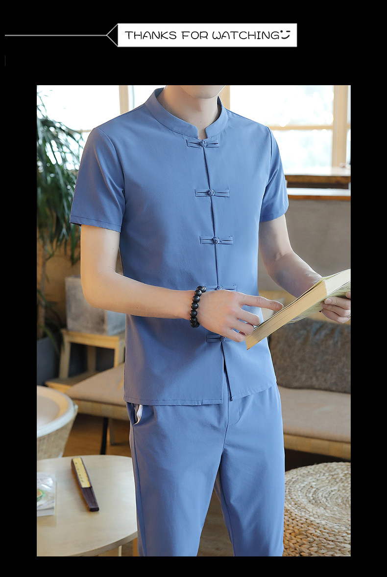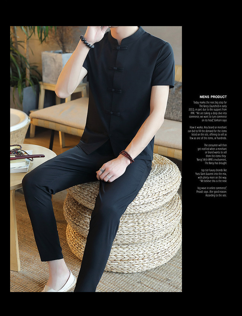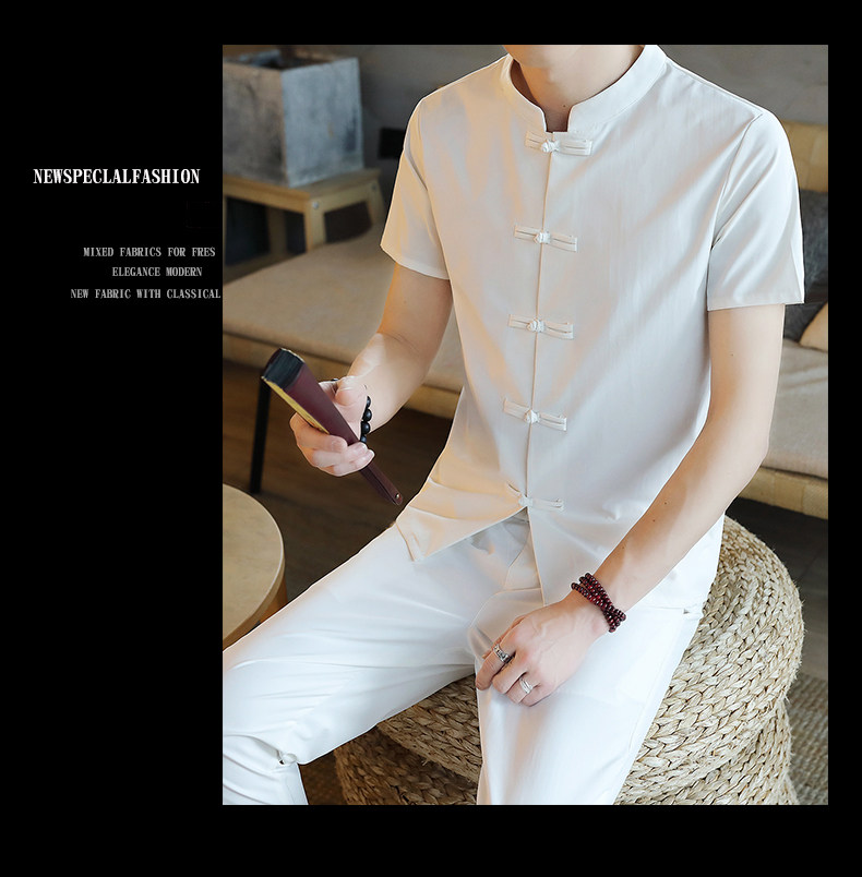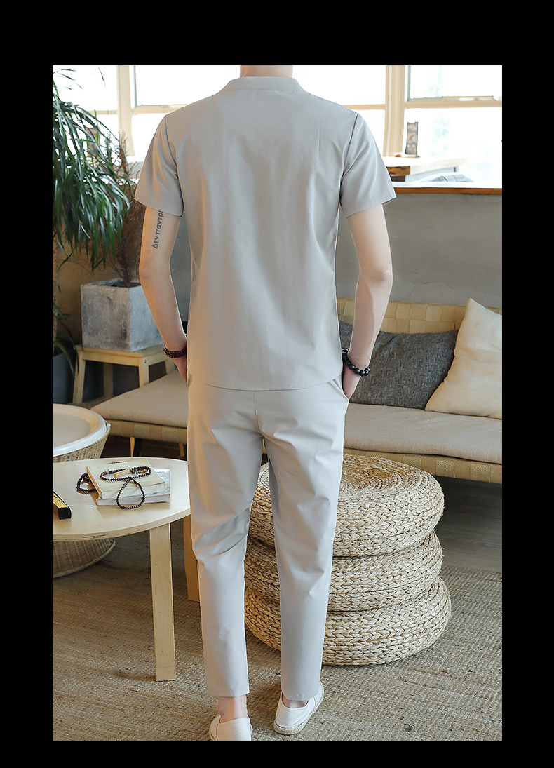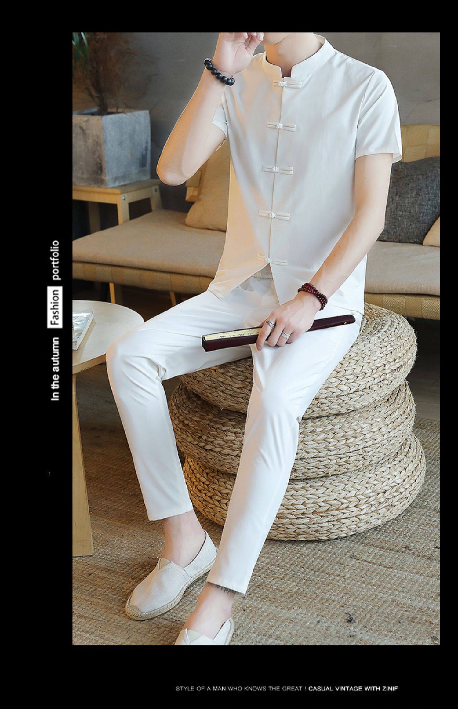 Летняя футболка с коротким рукавом, шелковый ретро комплект, китайский стиль, из хлопка и льна