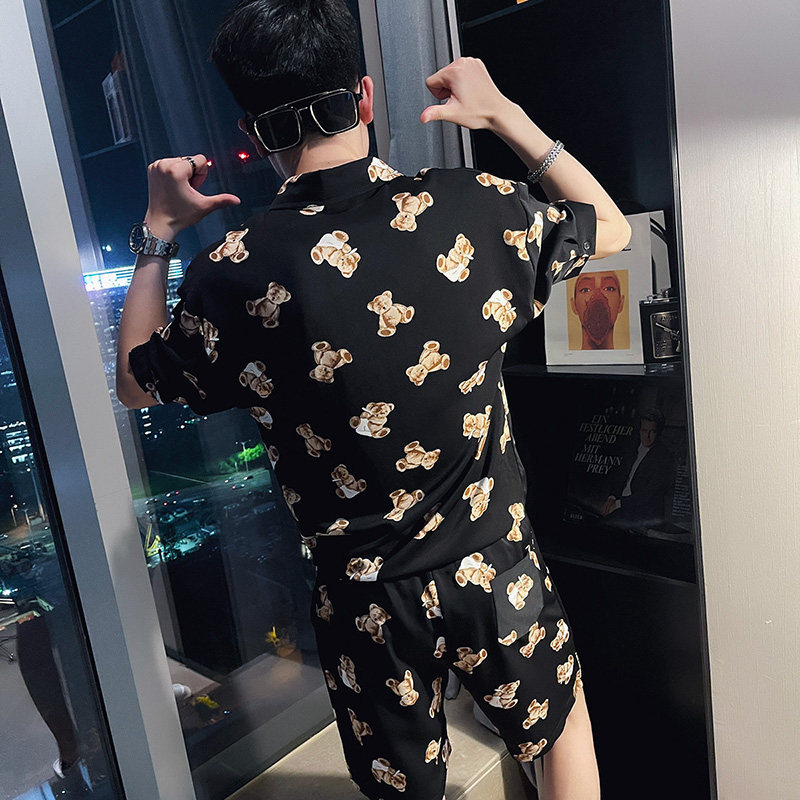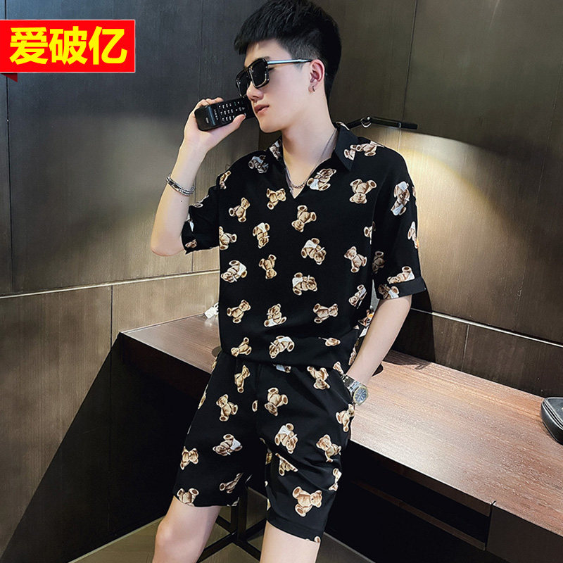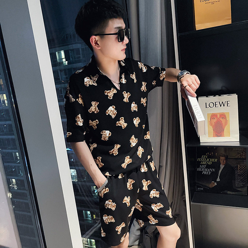 Футболка с коротким рукавом, летний трендовый шелковый комплект, в корейском стиле