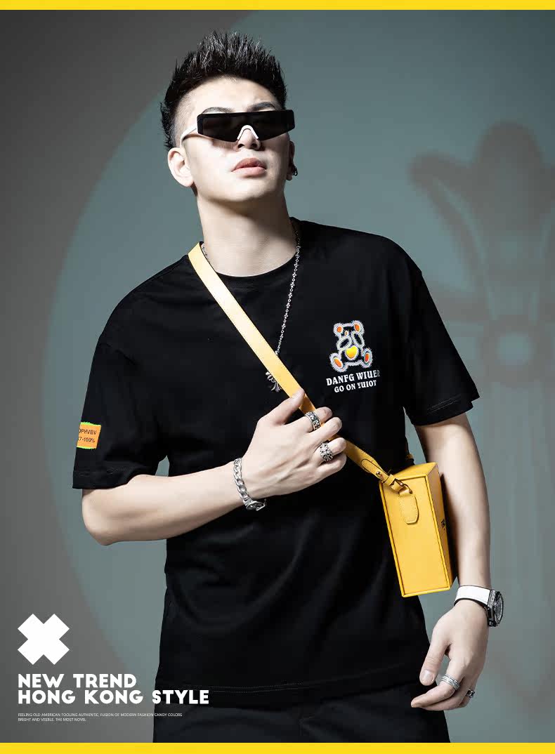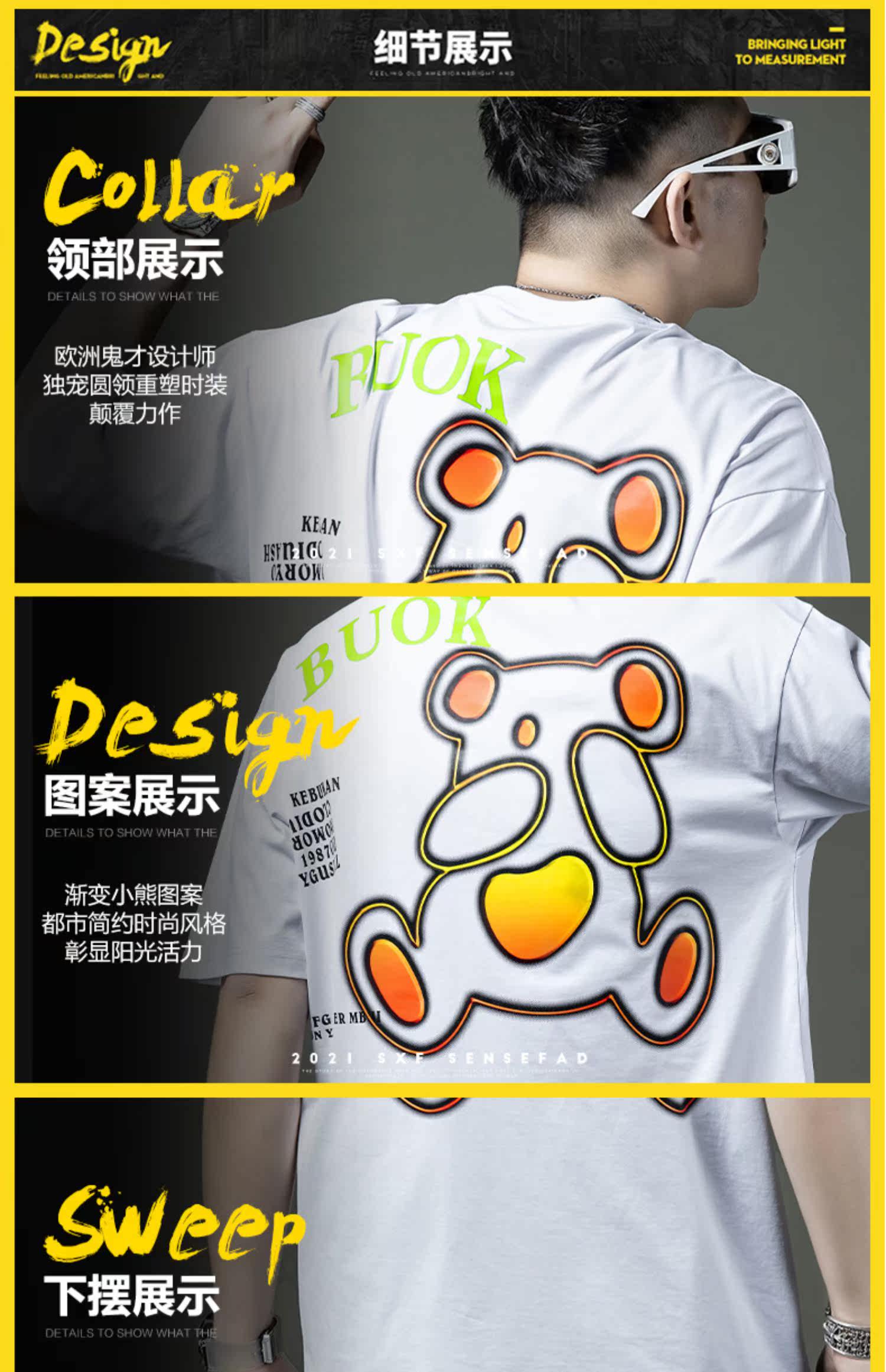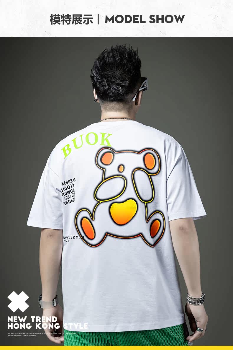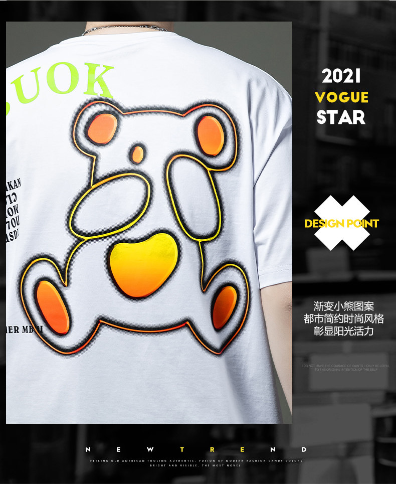 Мужская летняя хлопковая футболка с коротким рукавом, с медвежатами, свободный крой, городской стиль