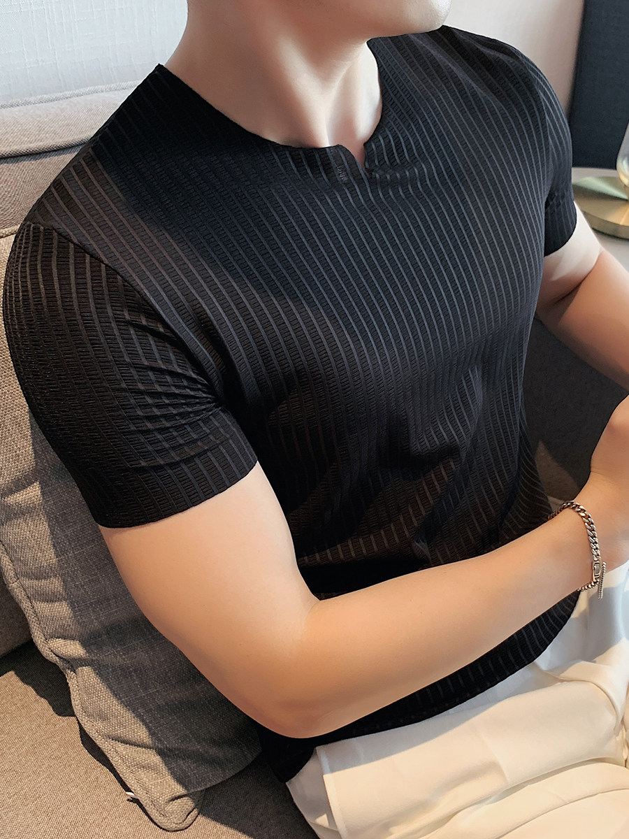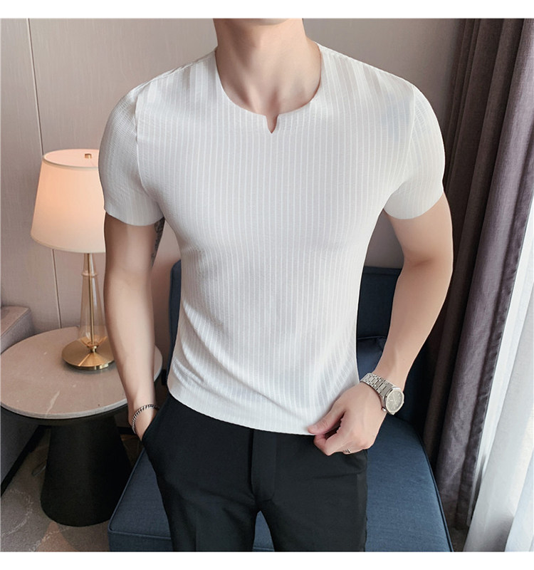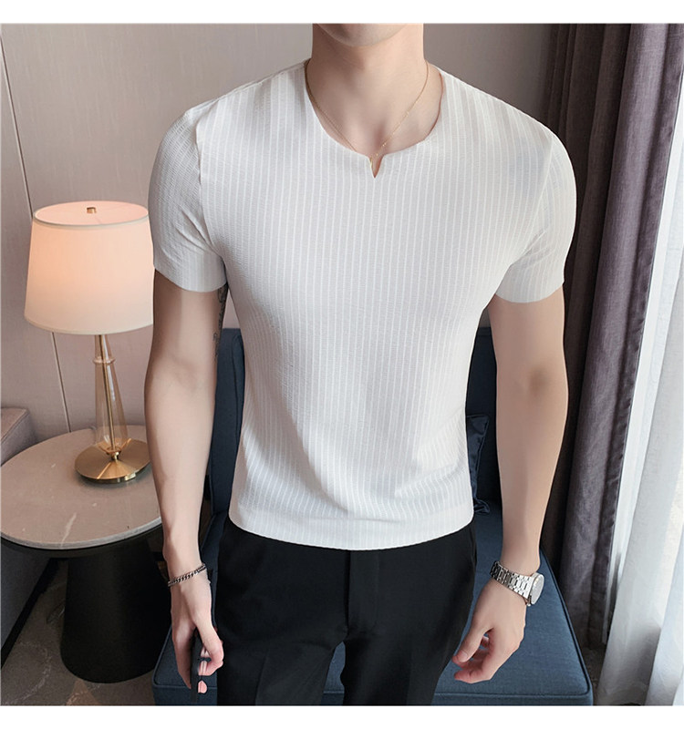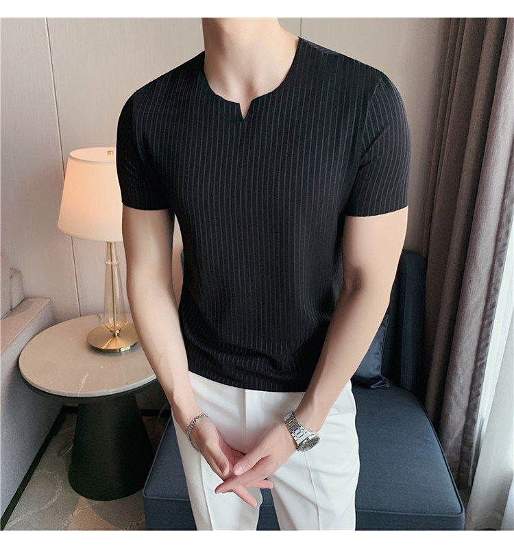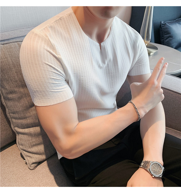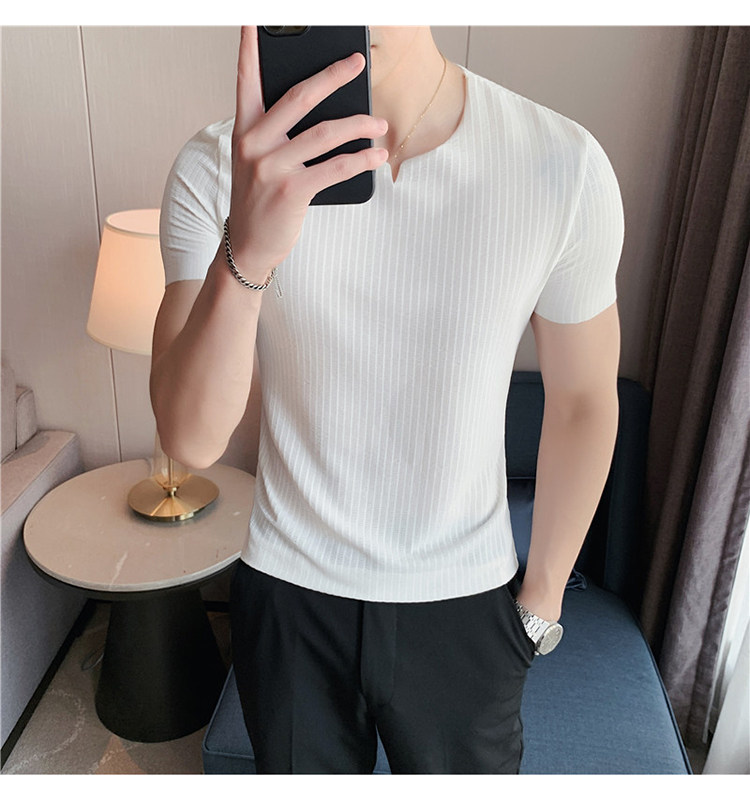 Мужская летняя тонкая приталенная шелковая комфортная дышащая футболка, V-образный вырез, короткий рукав
