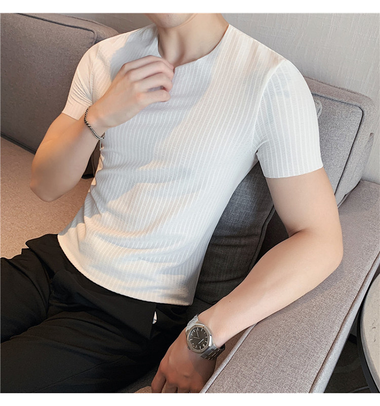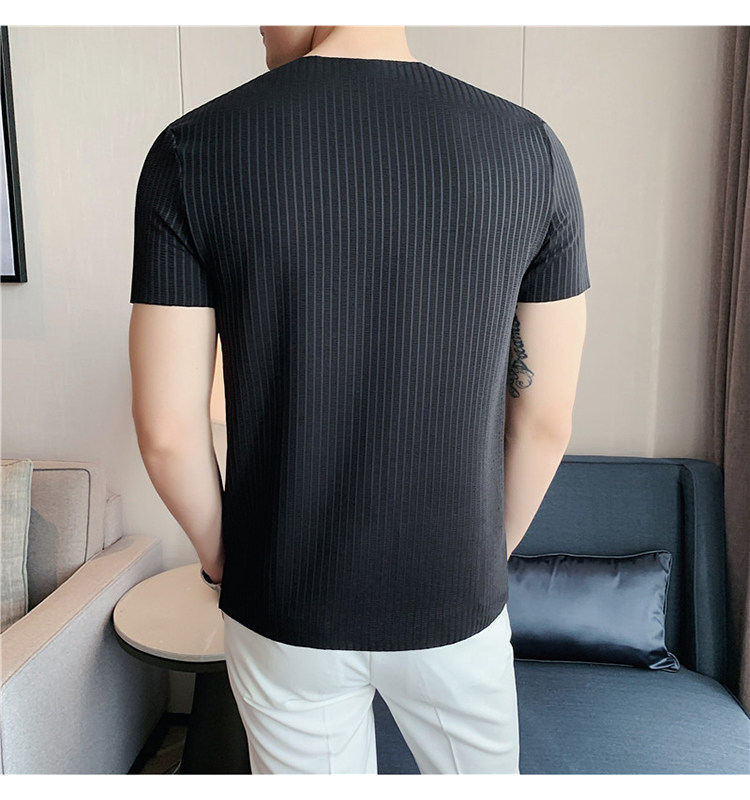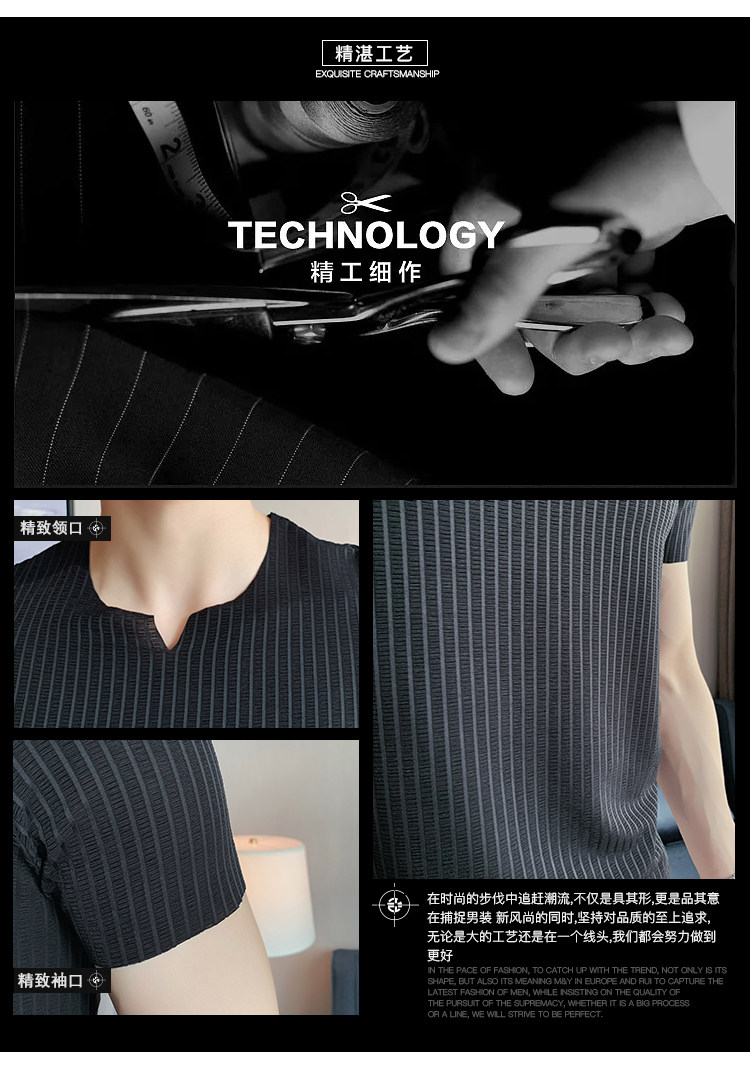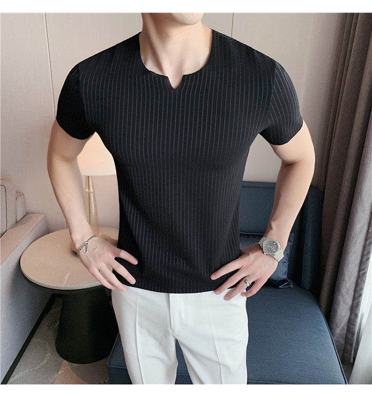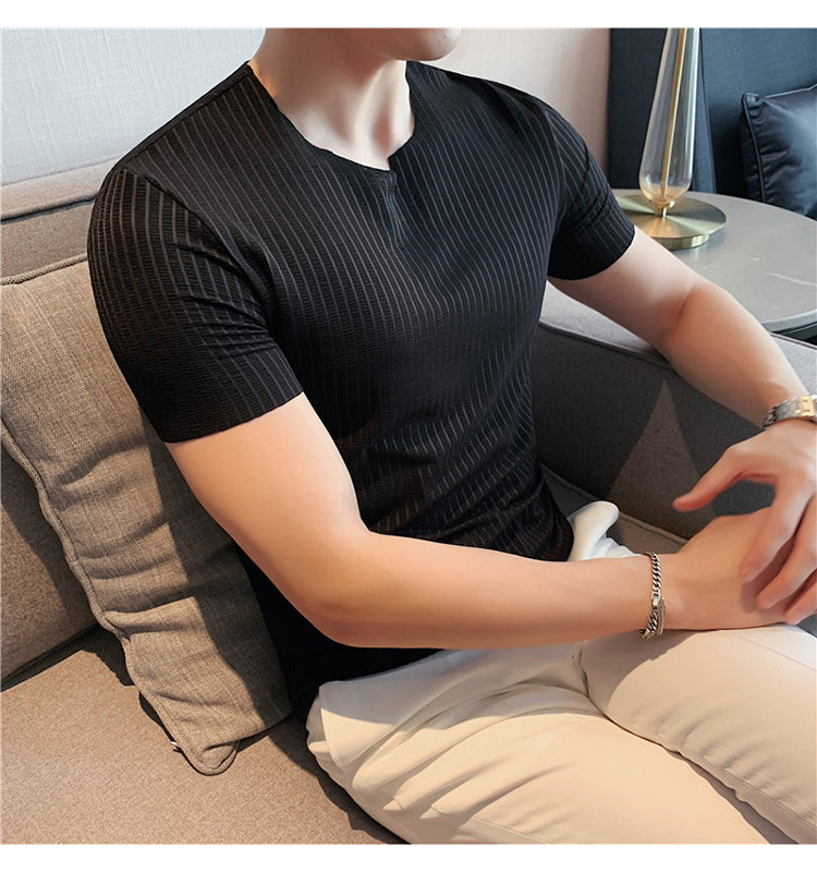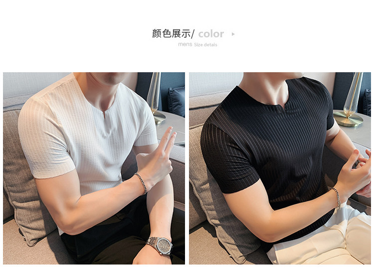 Мужская летняя тонкая приталенная шелковая комфортная дышащая футболка, V-образный вырез, короткий рукав