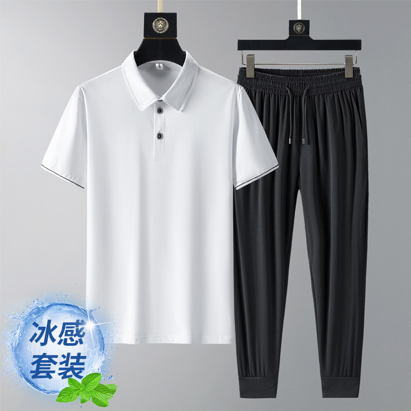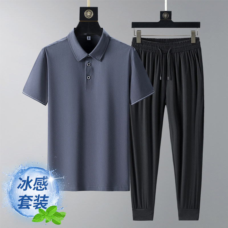 Летняя хлопковая футболка с коротким рукавом, шелковая летняя одежда для пожилых людей, футболка polo, спортивный костюм, для среднего возраста