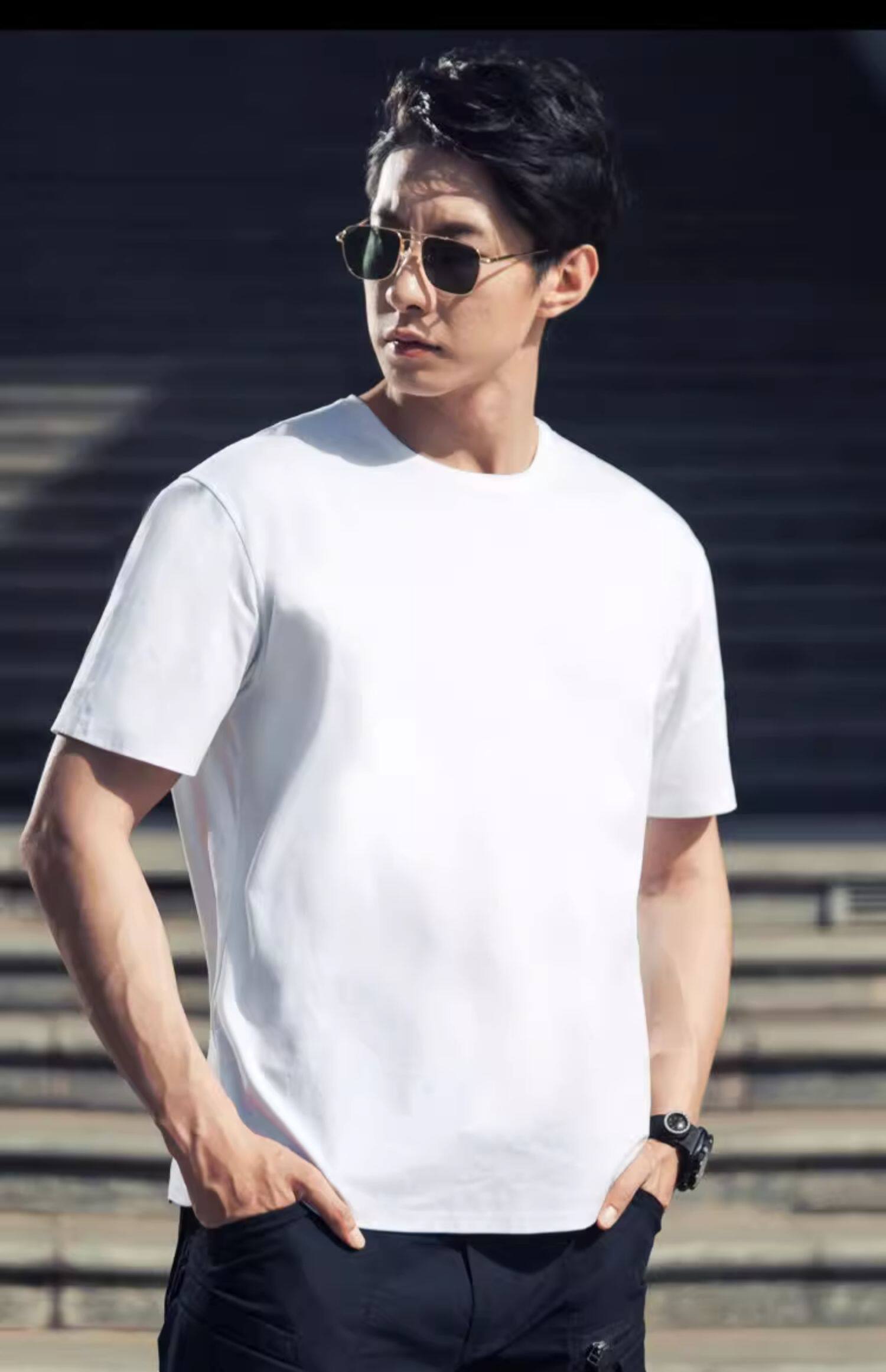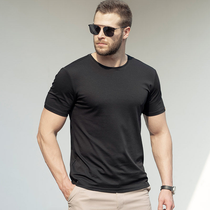 Мужская летняя базовая универсальная легкая и тонкая футболка с круглым воротником, облегающий крой