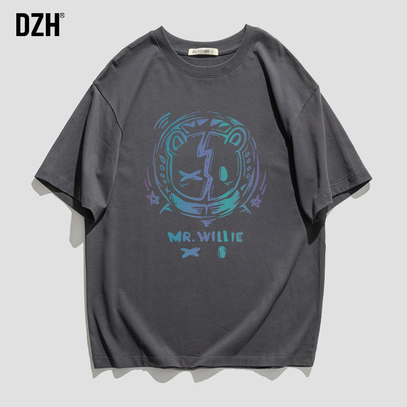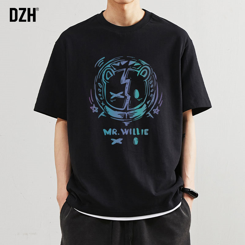 Черная цветная летняя трендовая футболка, оверсайз, коллекция 2021, в корейском стиле, градиент, короткий рукав