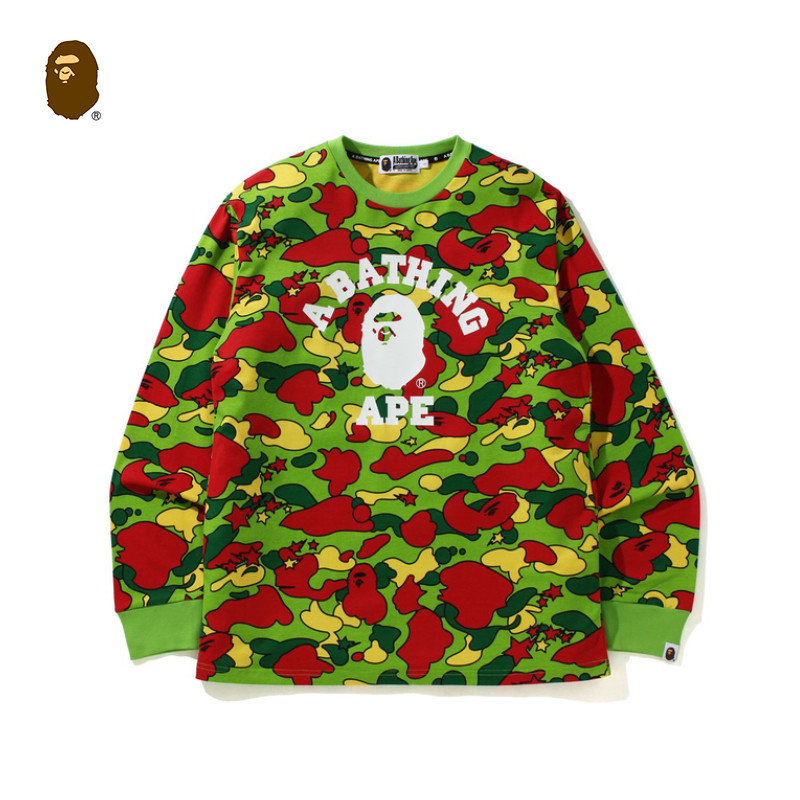 BAPE Демисезонная утепленный лонгслив, человеческая голова, камуфляжная раскраска, принт