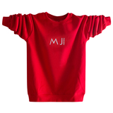 Хлопковый красный лонгслив с круглым воротником, футболка