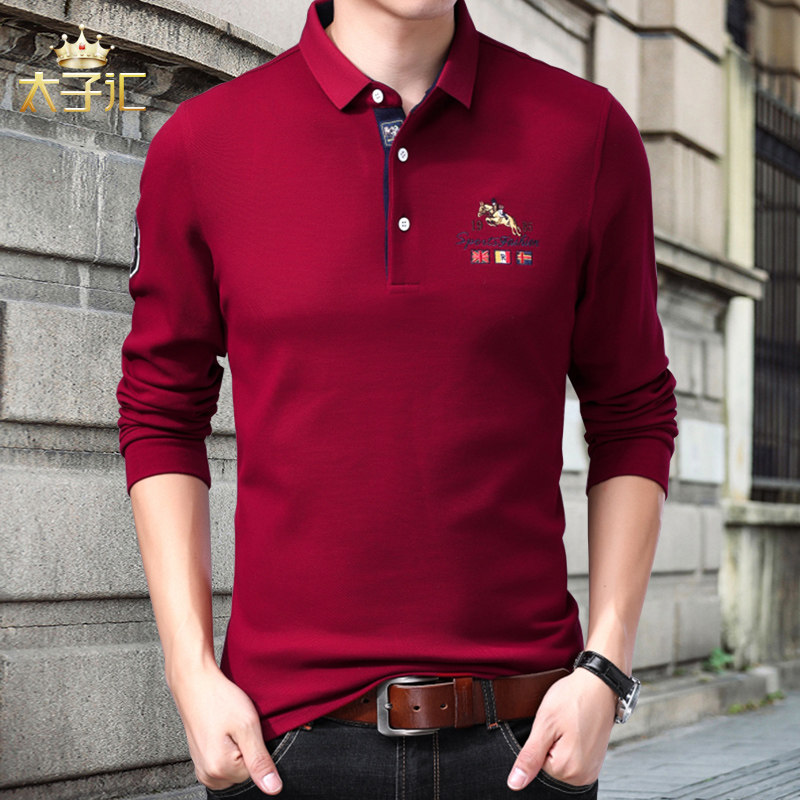 Красный хлопковый лонгслив, осенняя футболка polo для отдыха, 100% хлопок, для мужчины среднего возраста, оверсайз