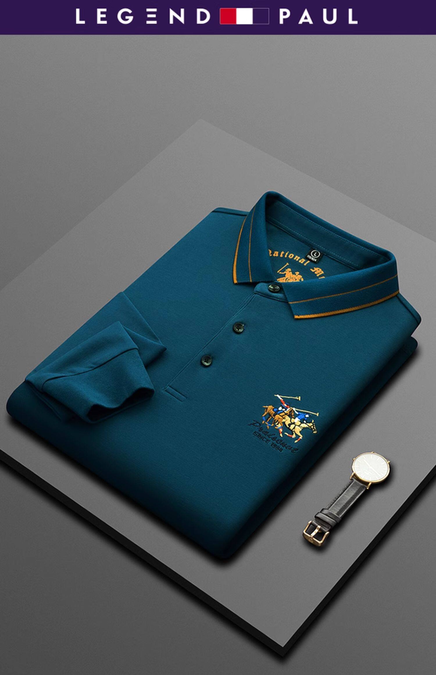Футболка polo, демисезонный хлопковый элитный лонгслив, с вышивкой, для среднего возраста