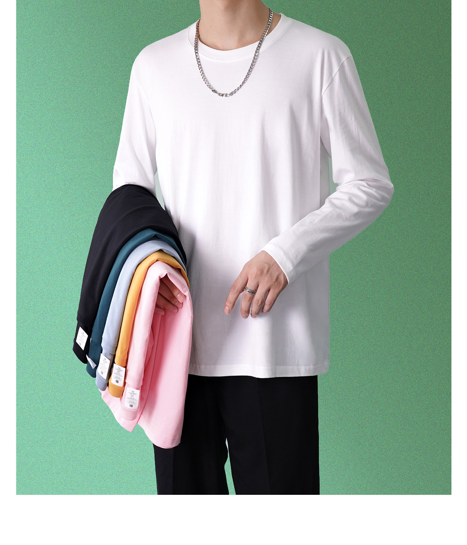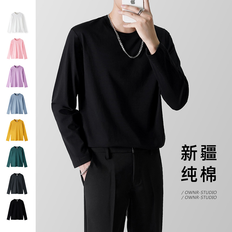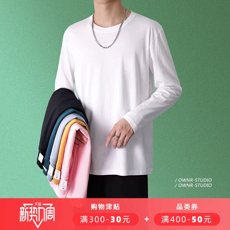 Хлопковая футболка, мужской весенний белый черный приятный телу лонгслив для отдыха, оверсайз, круглый воротник
