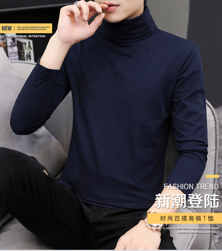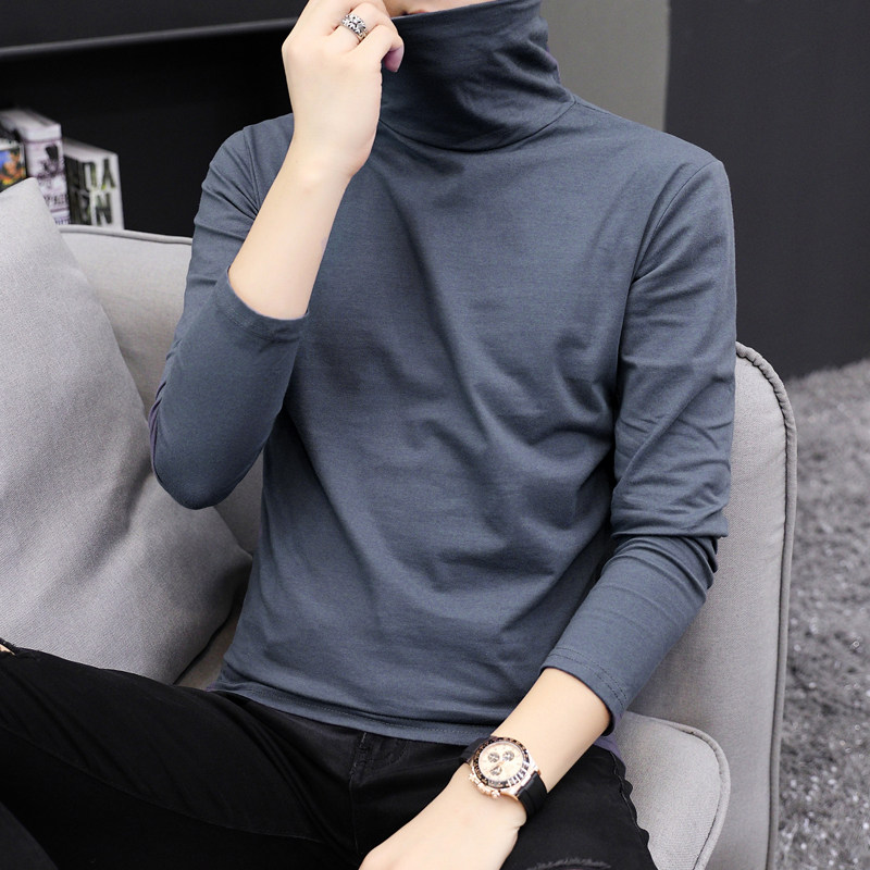 Мужской хлопковый осенний демисезонный лонгслив, тонкое трендовое универсальное базовое приятное телу нижнее белье, в корейском стиле