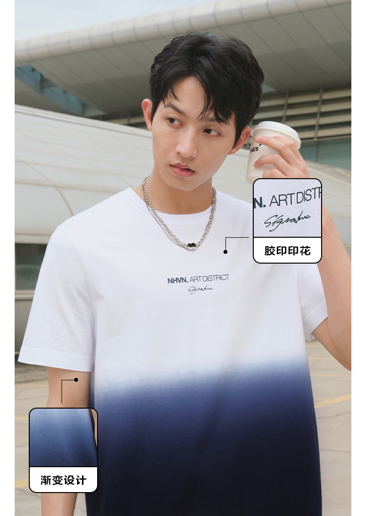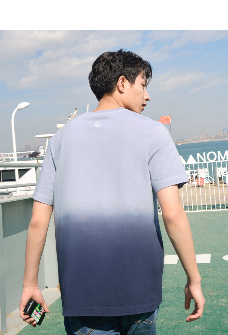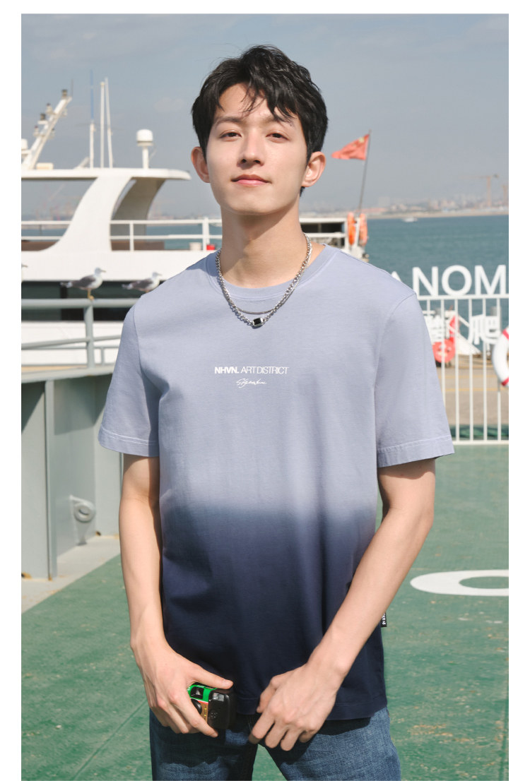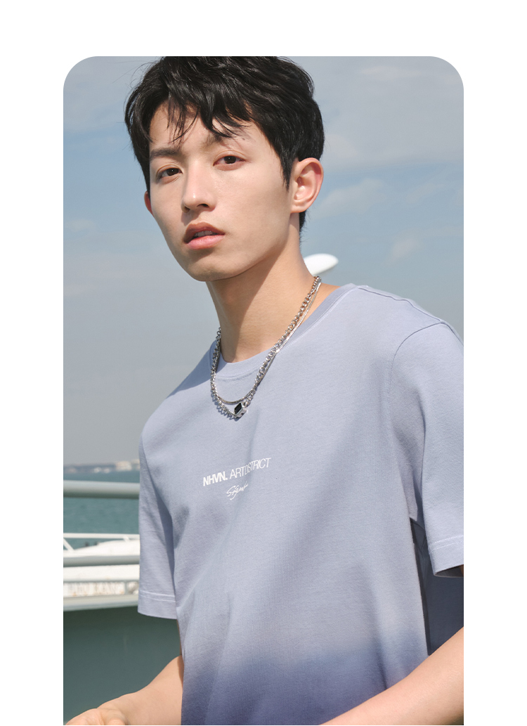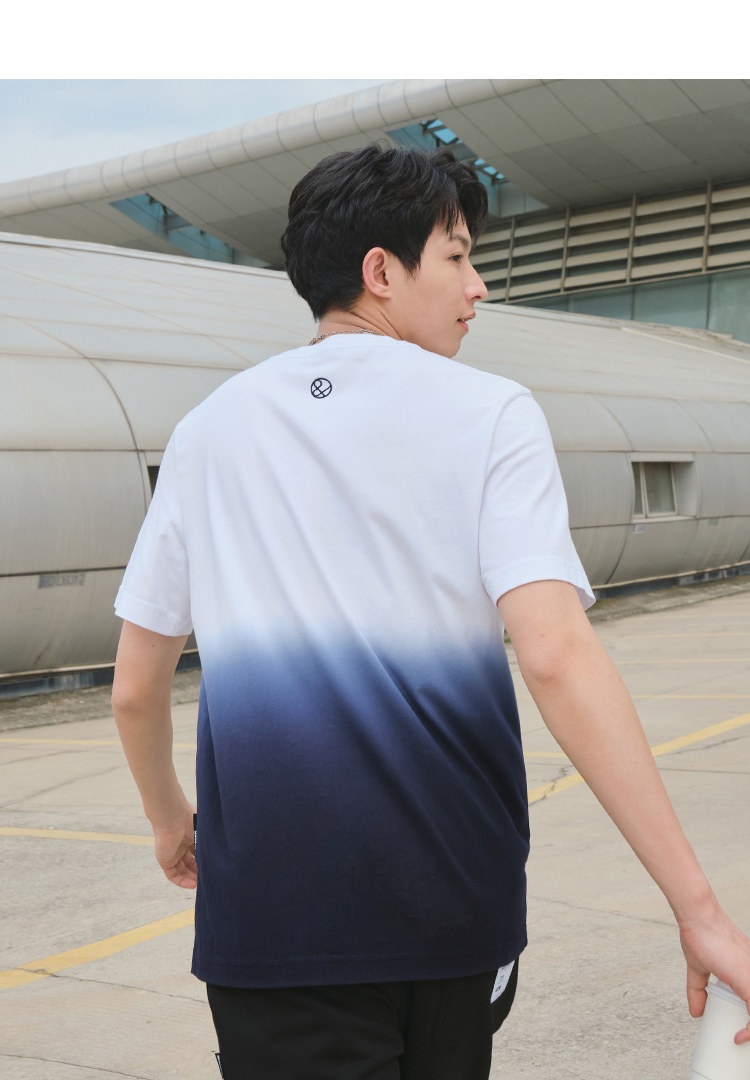 Весенняя хлопковая трендовая футболка с коротким рукавом с круглым воротником, тренд сезона, градиент, с вышивкой
