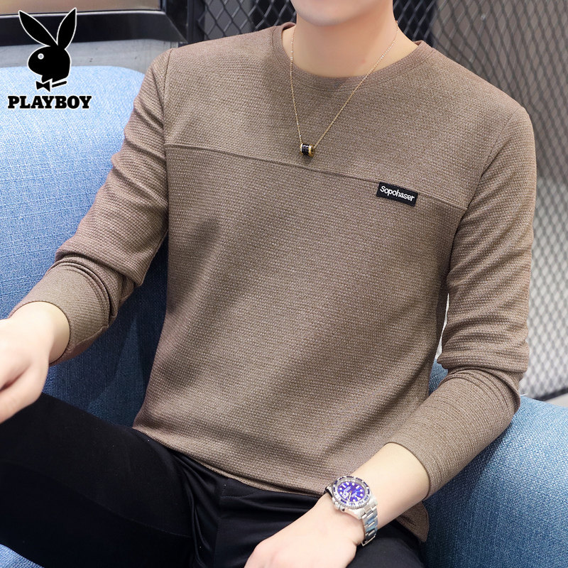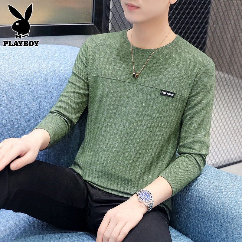 Playboy, мужская трендовая футболка, осенний базовый приятный телу лонгслив