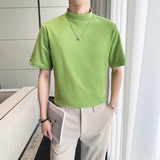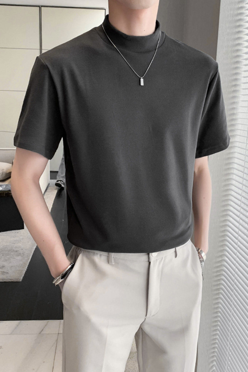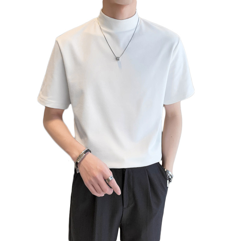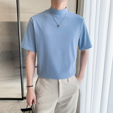 Летняя трендовая базовая приятная телу футболка с коротким рукавом, высокий воротник