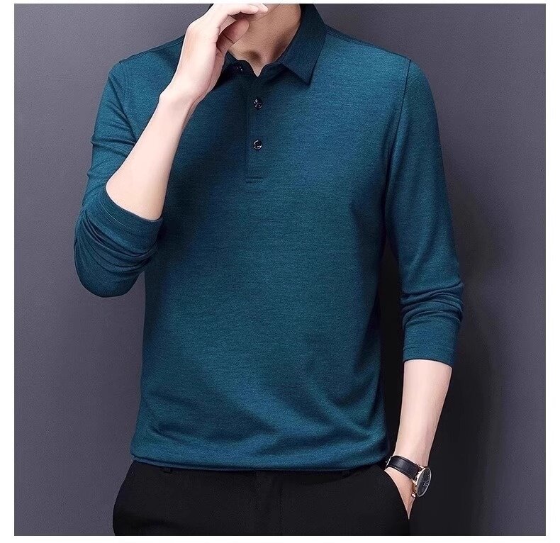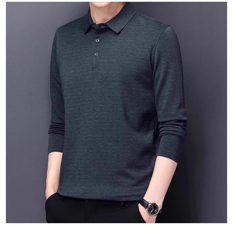 Мужской осенний элитный лонгслив, черный шерстяной трендовый свитер, футболка polo