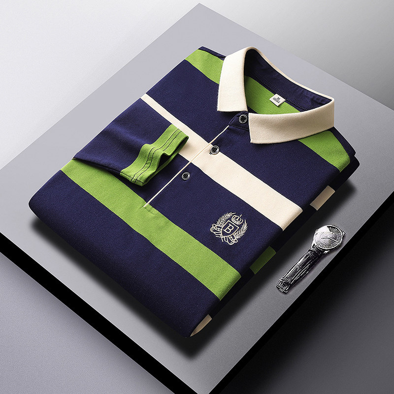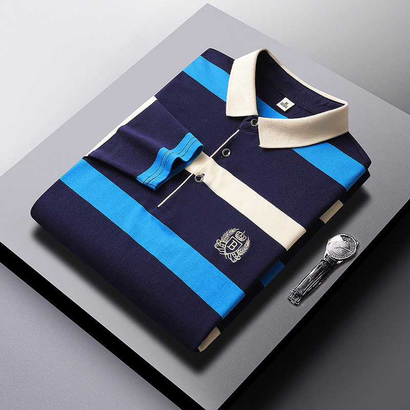 Мужской хлопковый осенний лонгслив, футболка polo, с вышивкой