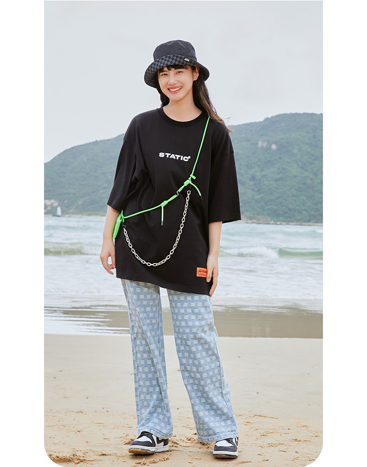 Хлопковая трендовая футболка с коротким рукавом с круглым воротником