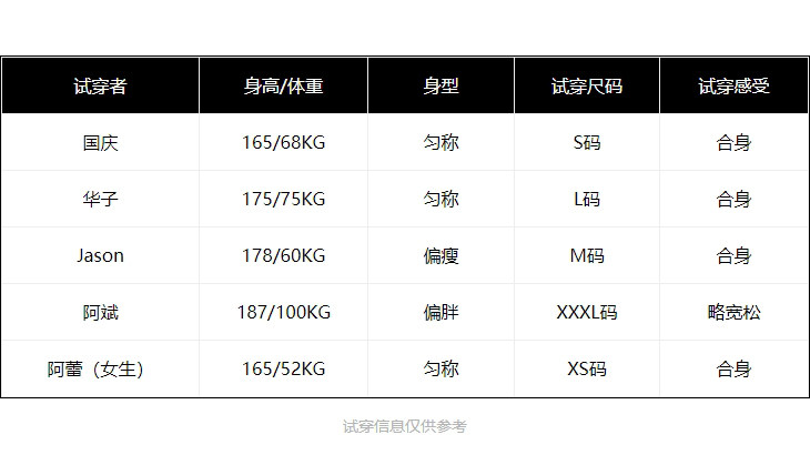 - = 195/112A/XXXL 190/108A/XXL 185/104A/XL 180/100A/L