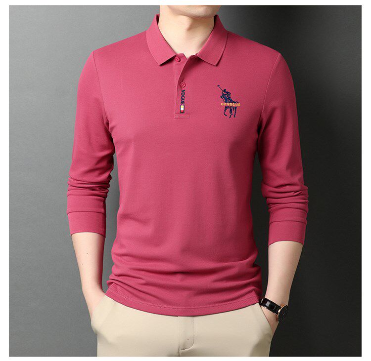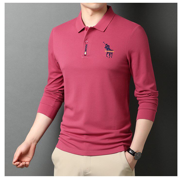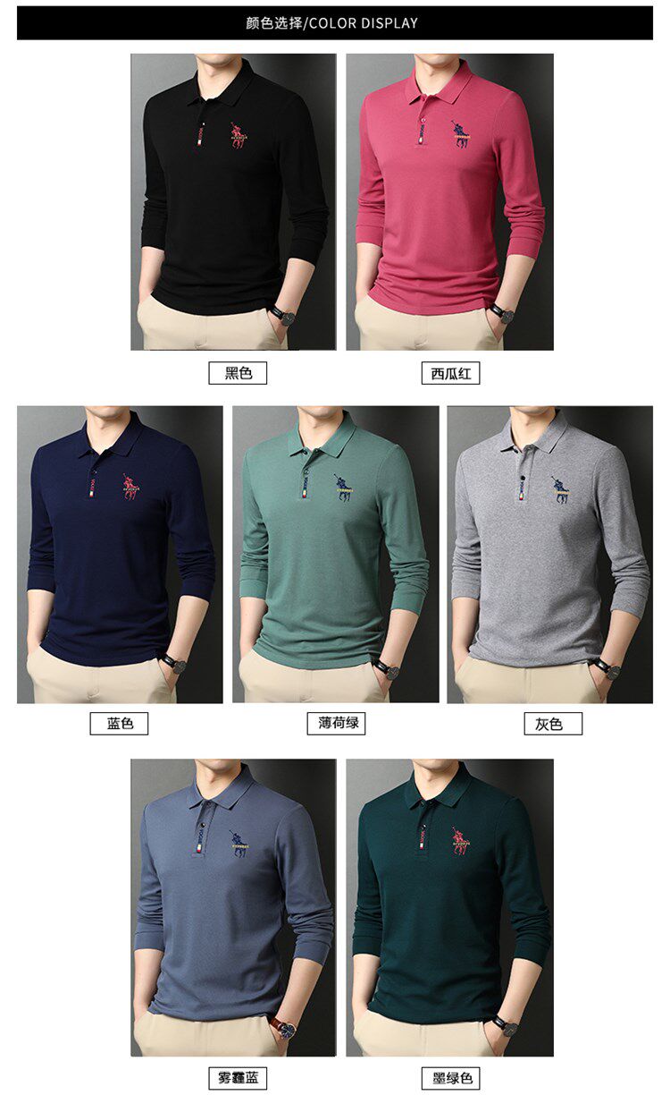 Мужской хлопковый лонгслив, осенняя элитная футболка polo, 100% хлопок, свободный крой