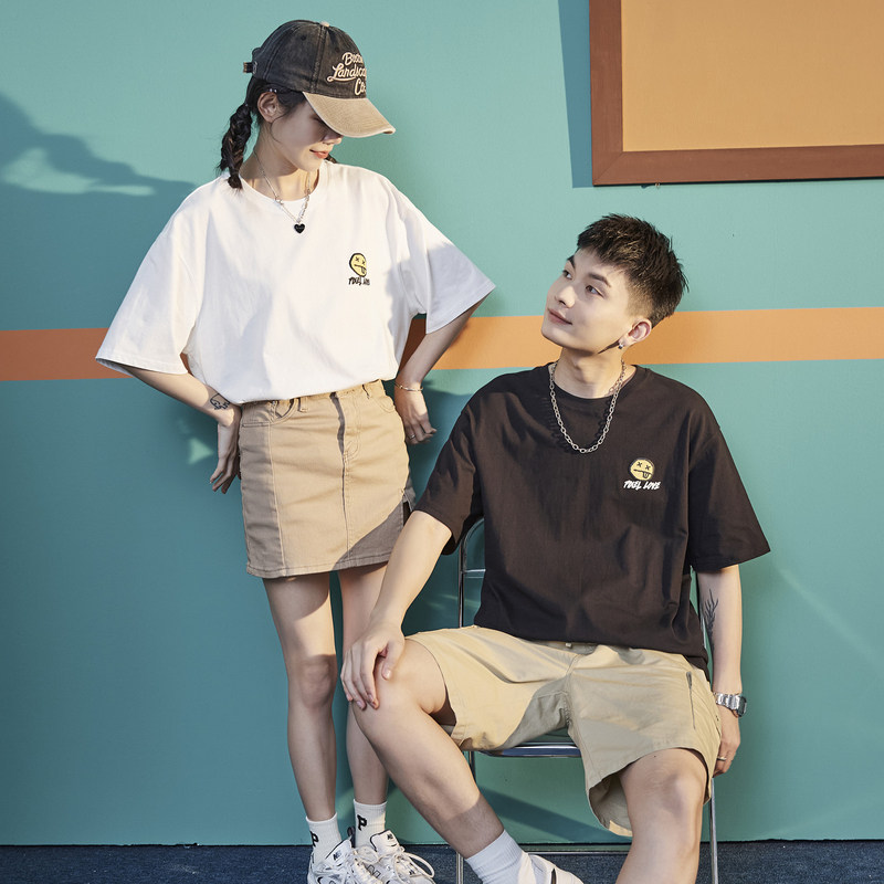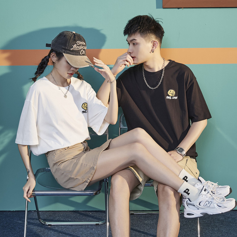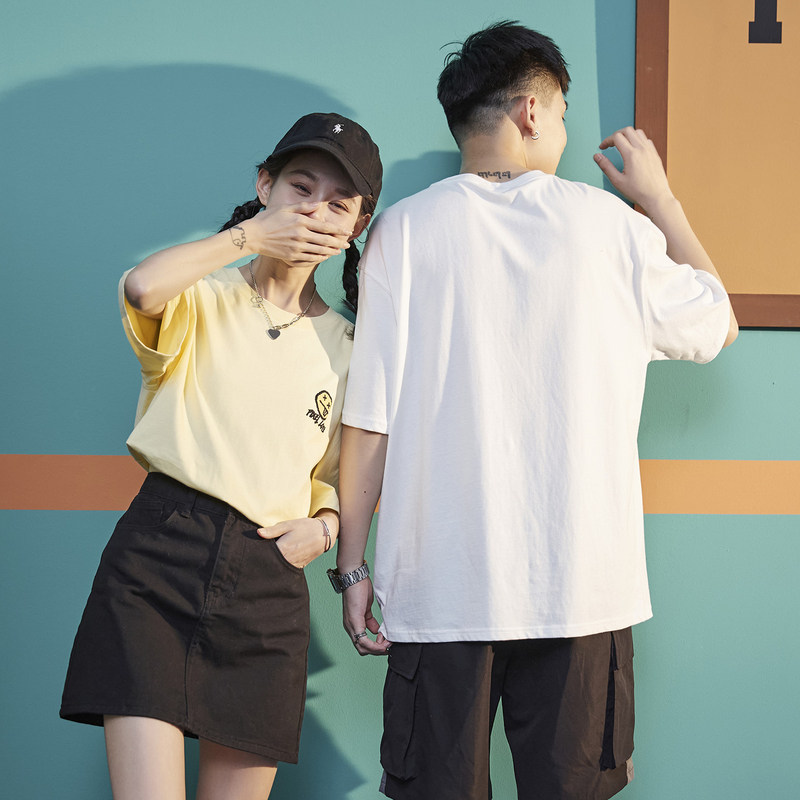 Летняя однотонная трендовая брендовая базовая приятная телу футболка, короткий рукав, для влюбленных