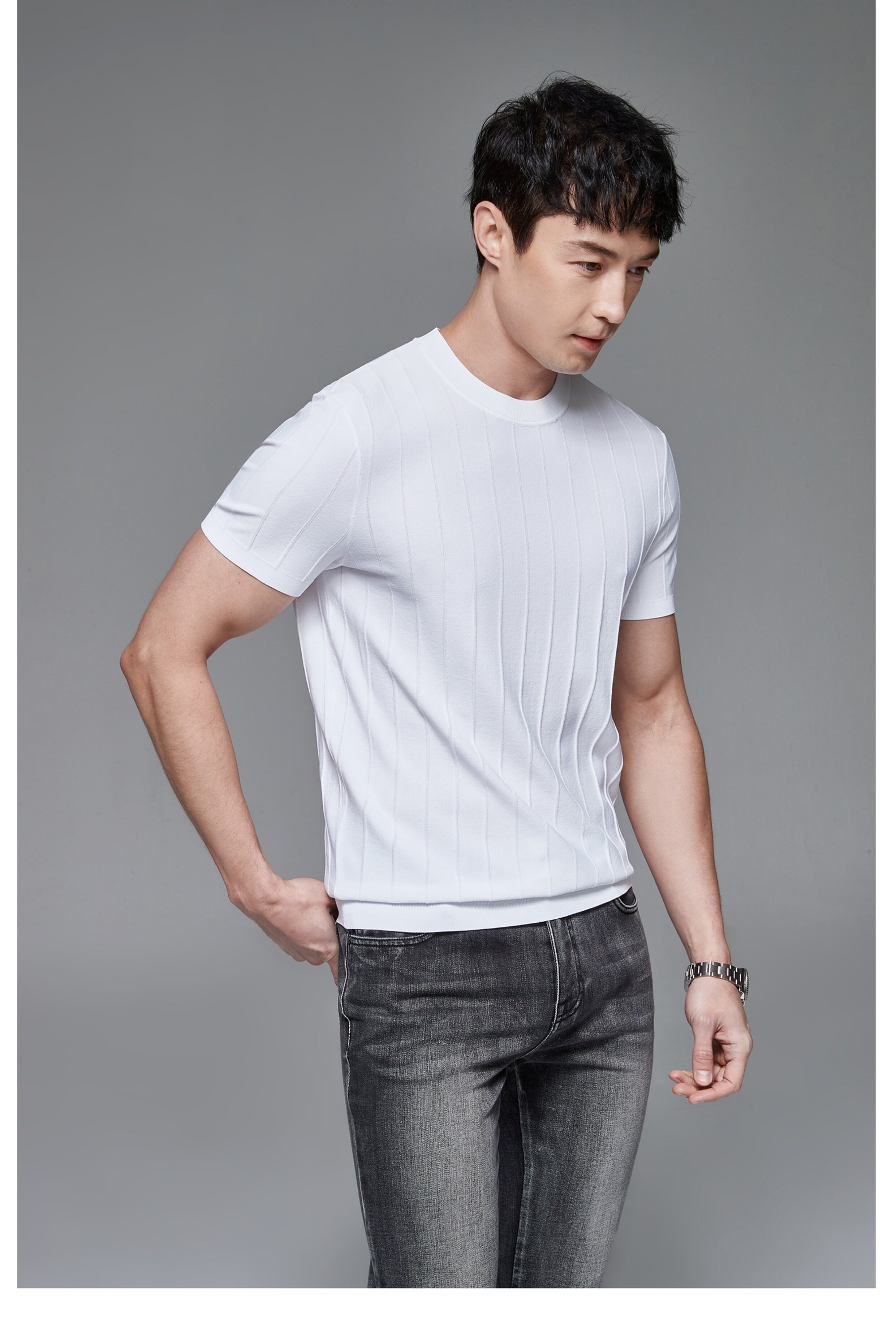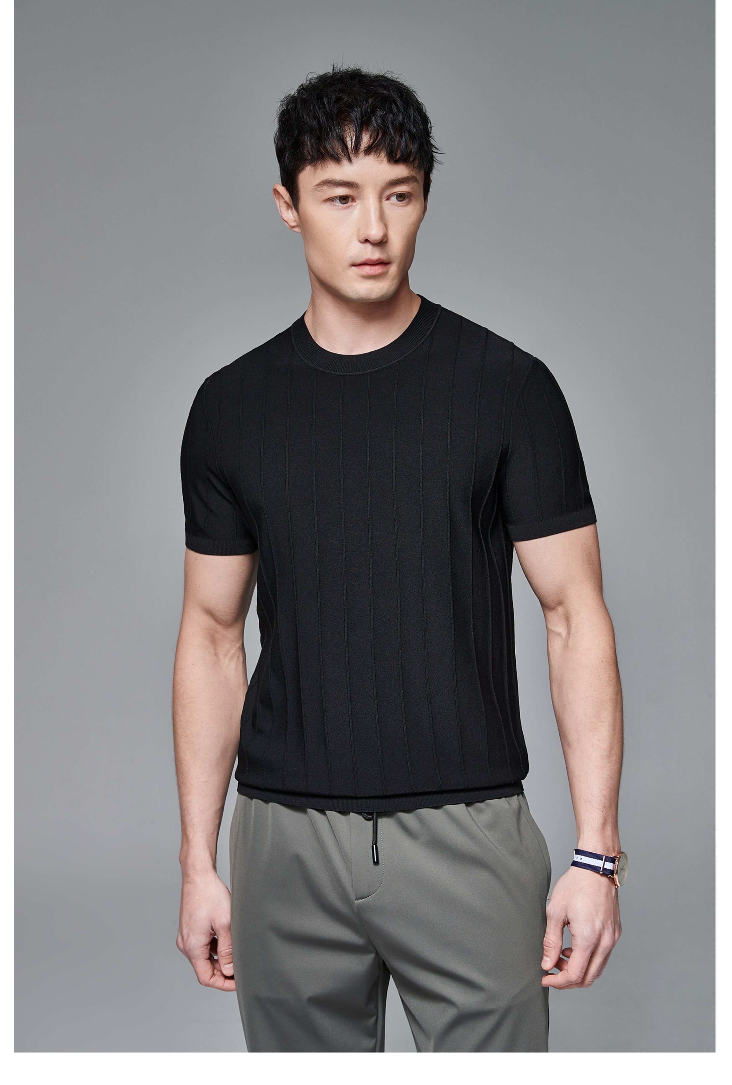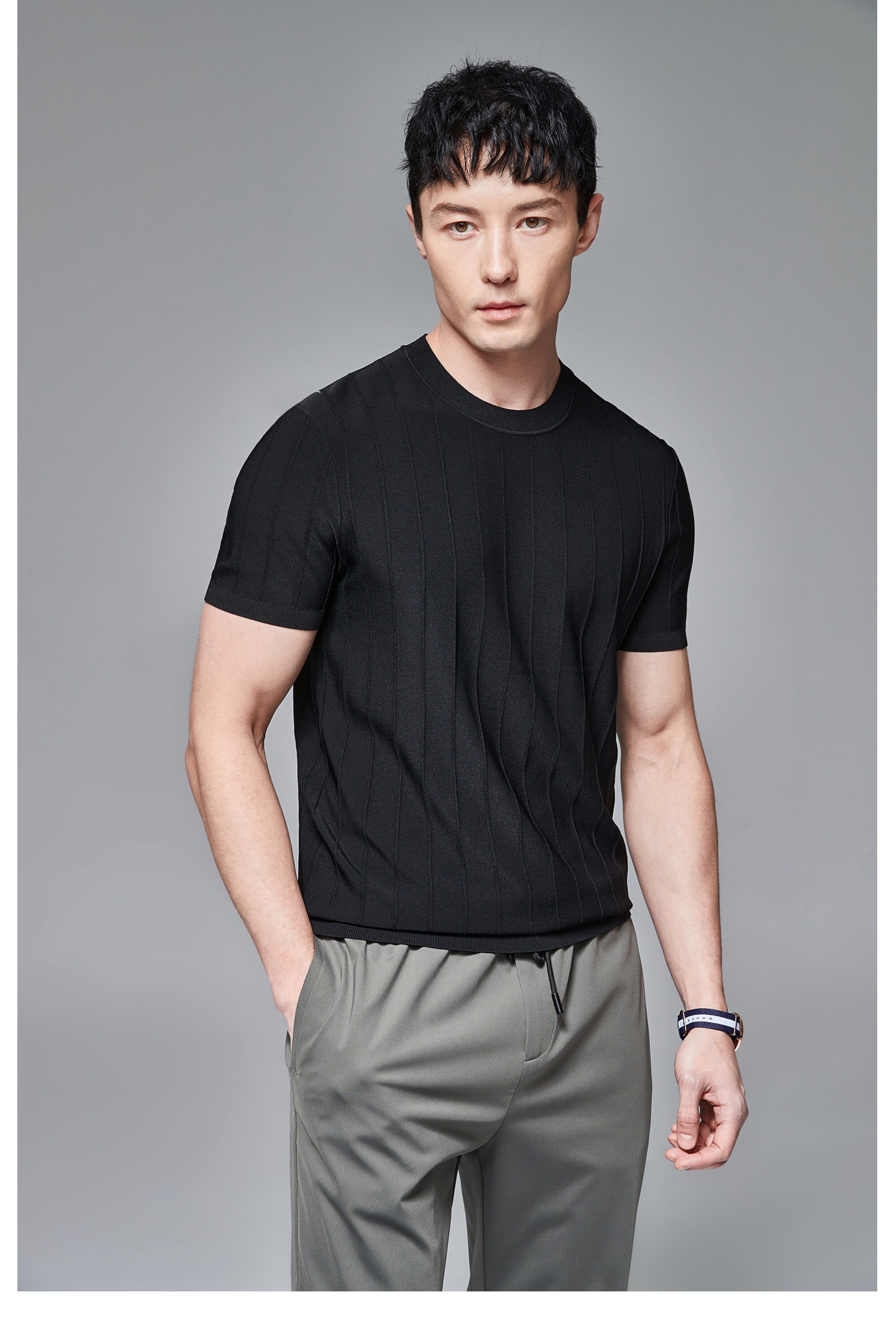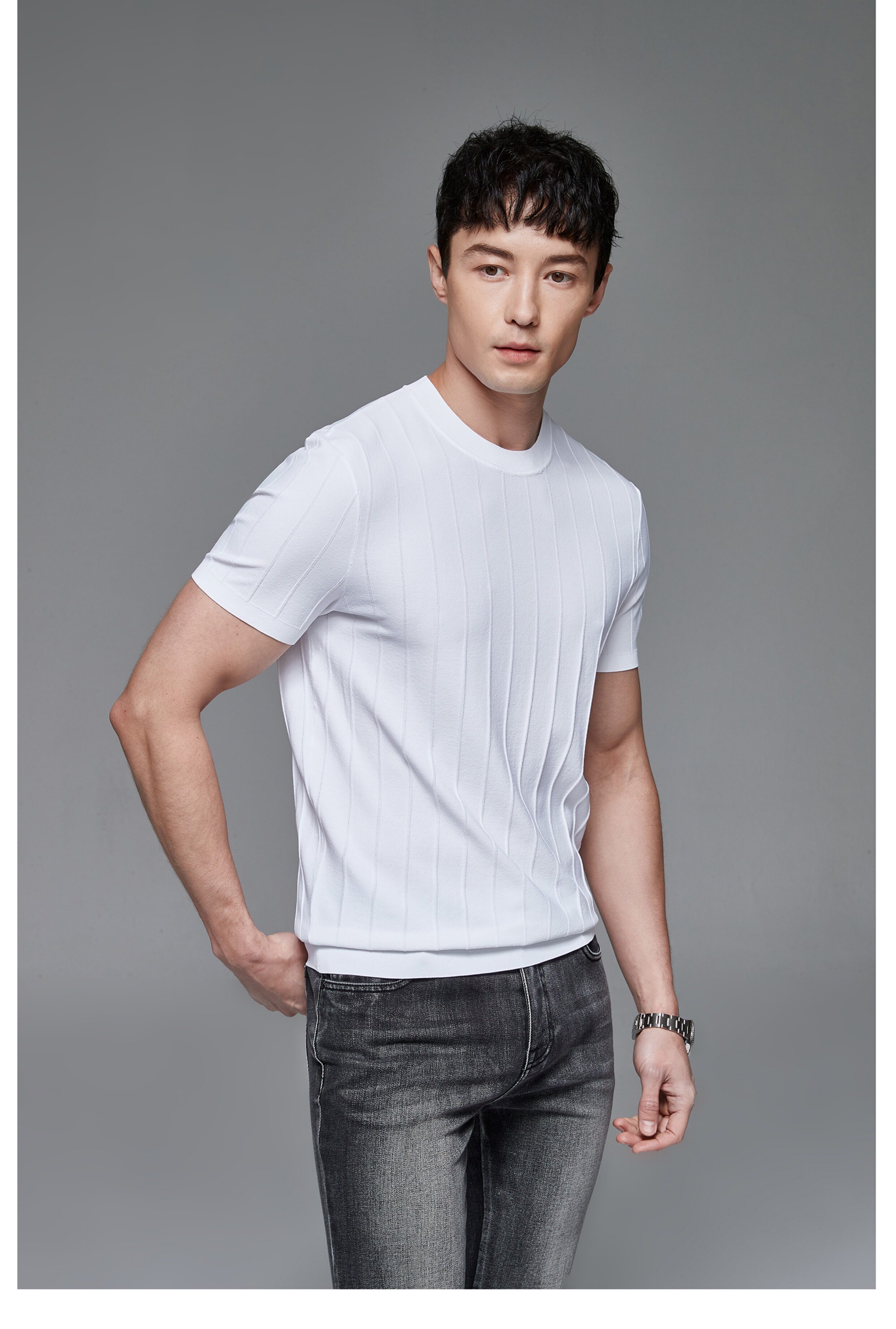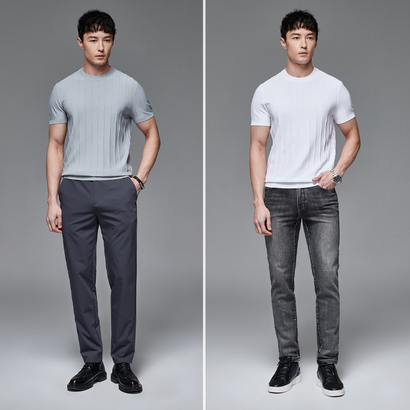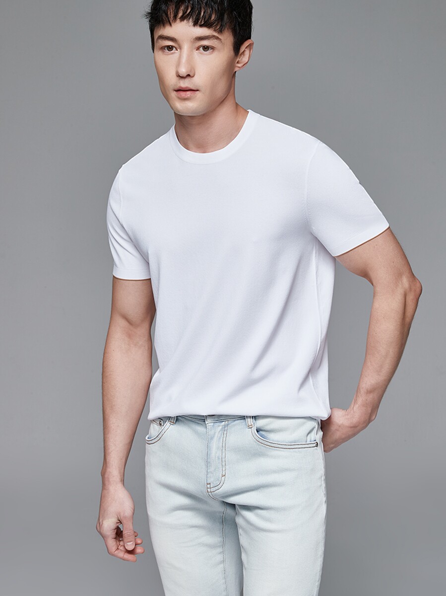 Мужская трикотажная летняя освежающая дышащая цветная футболка с коротким рукавом