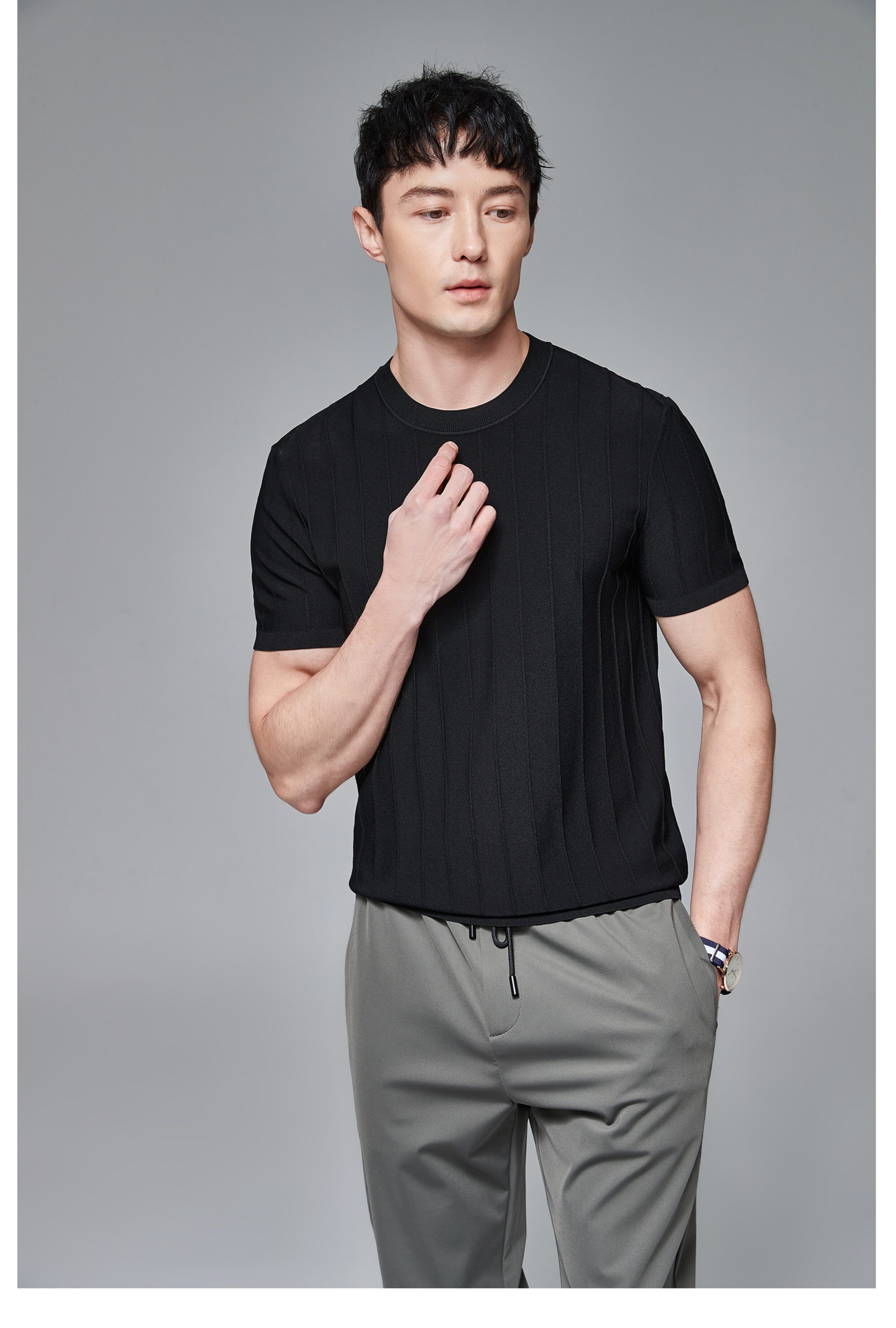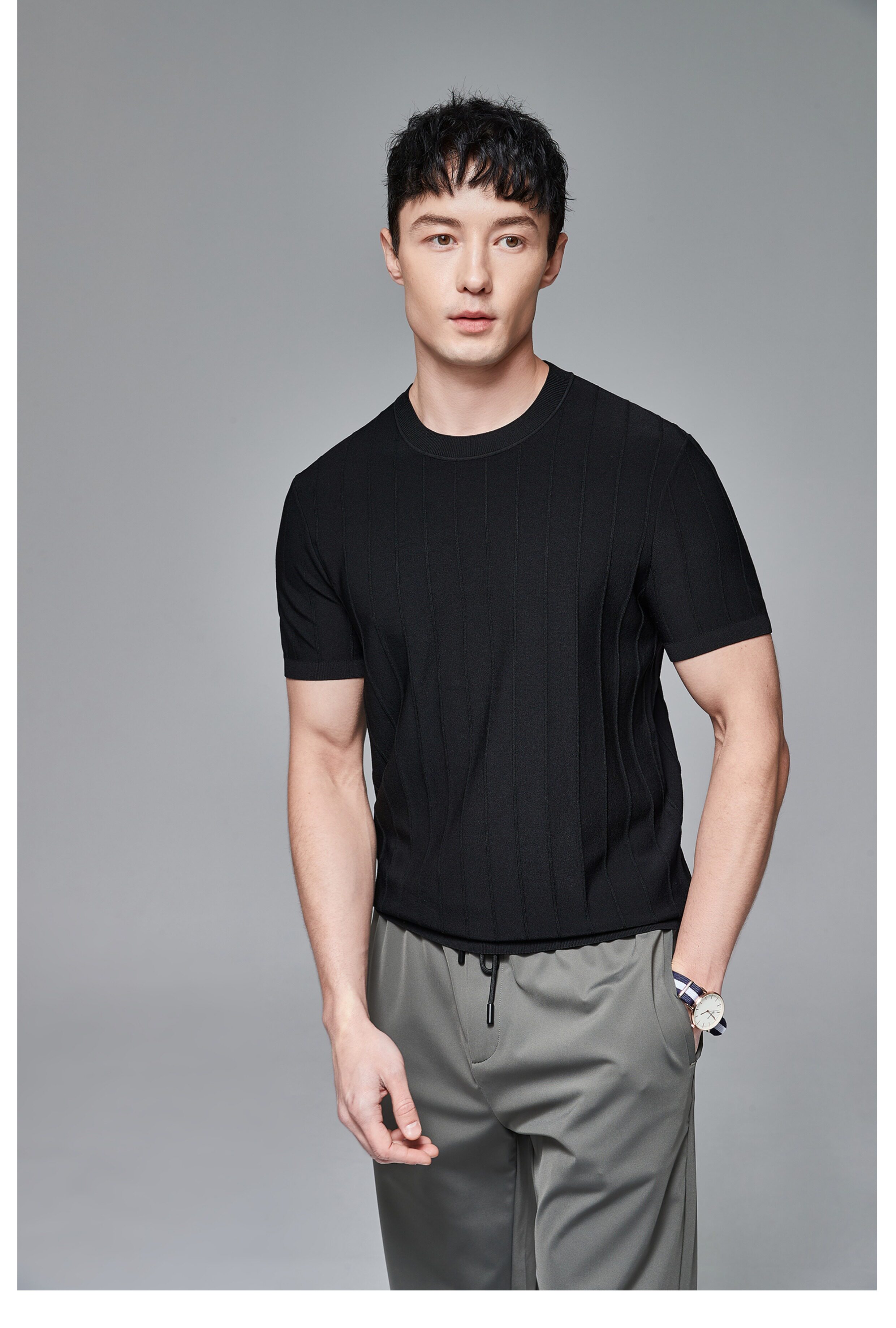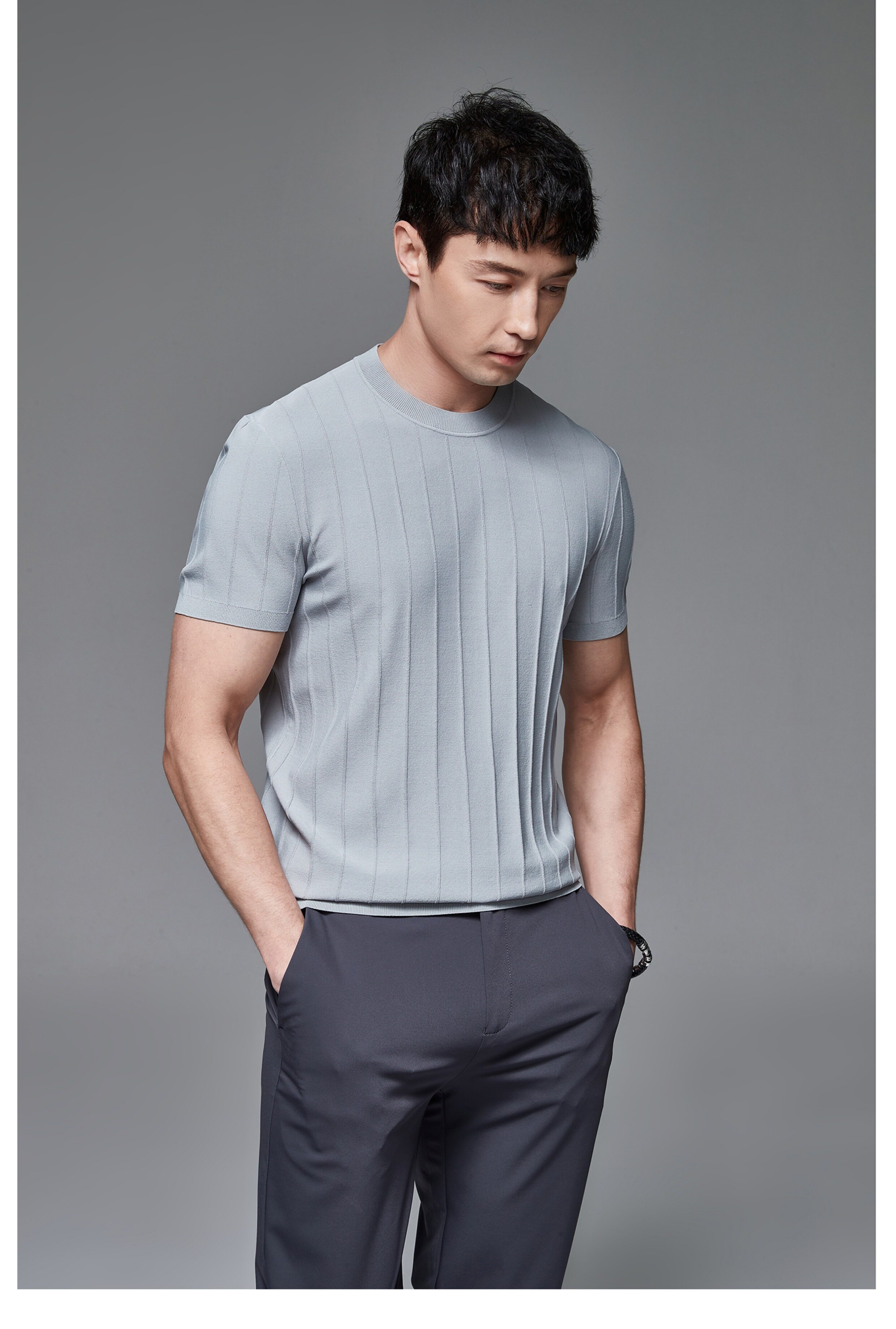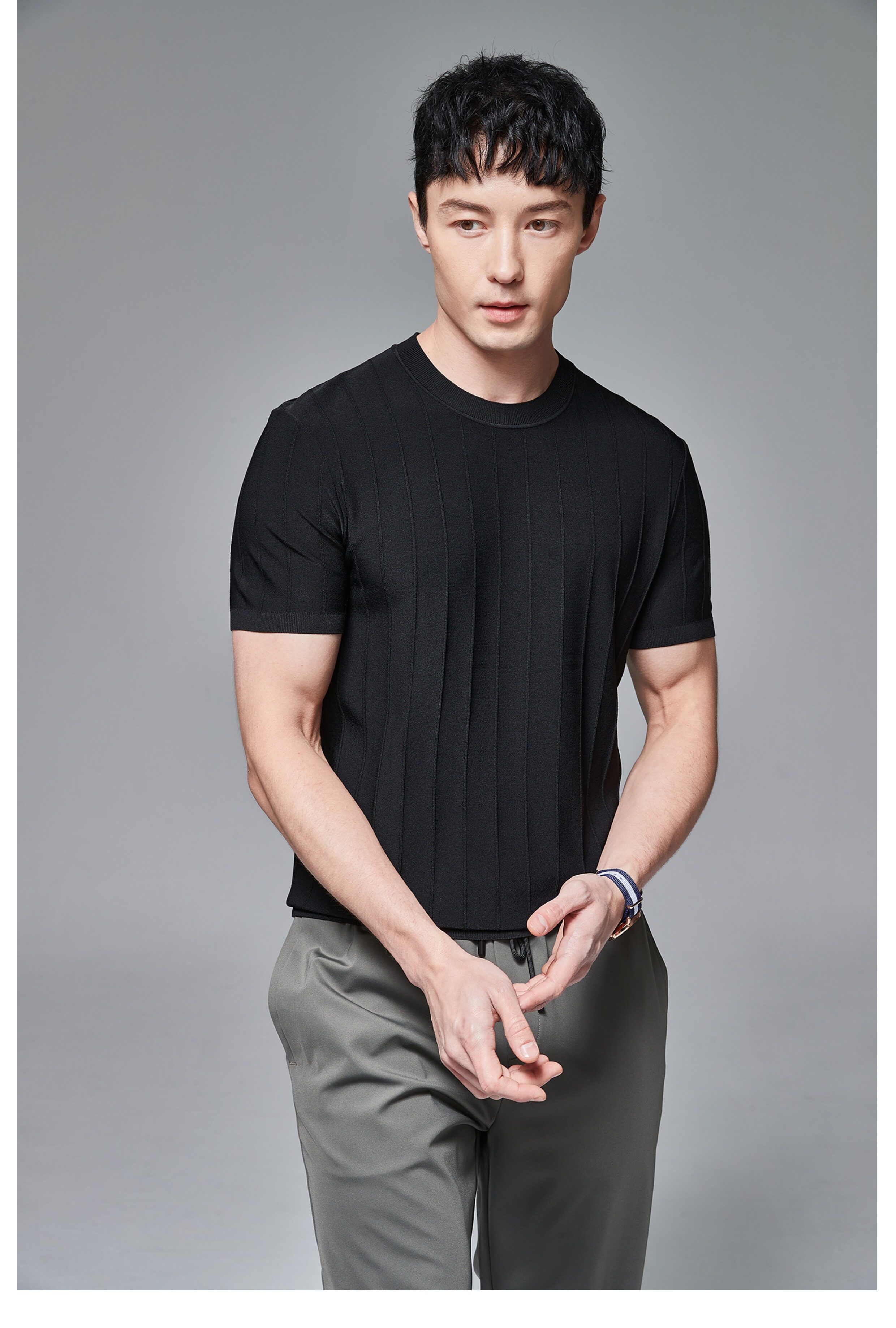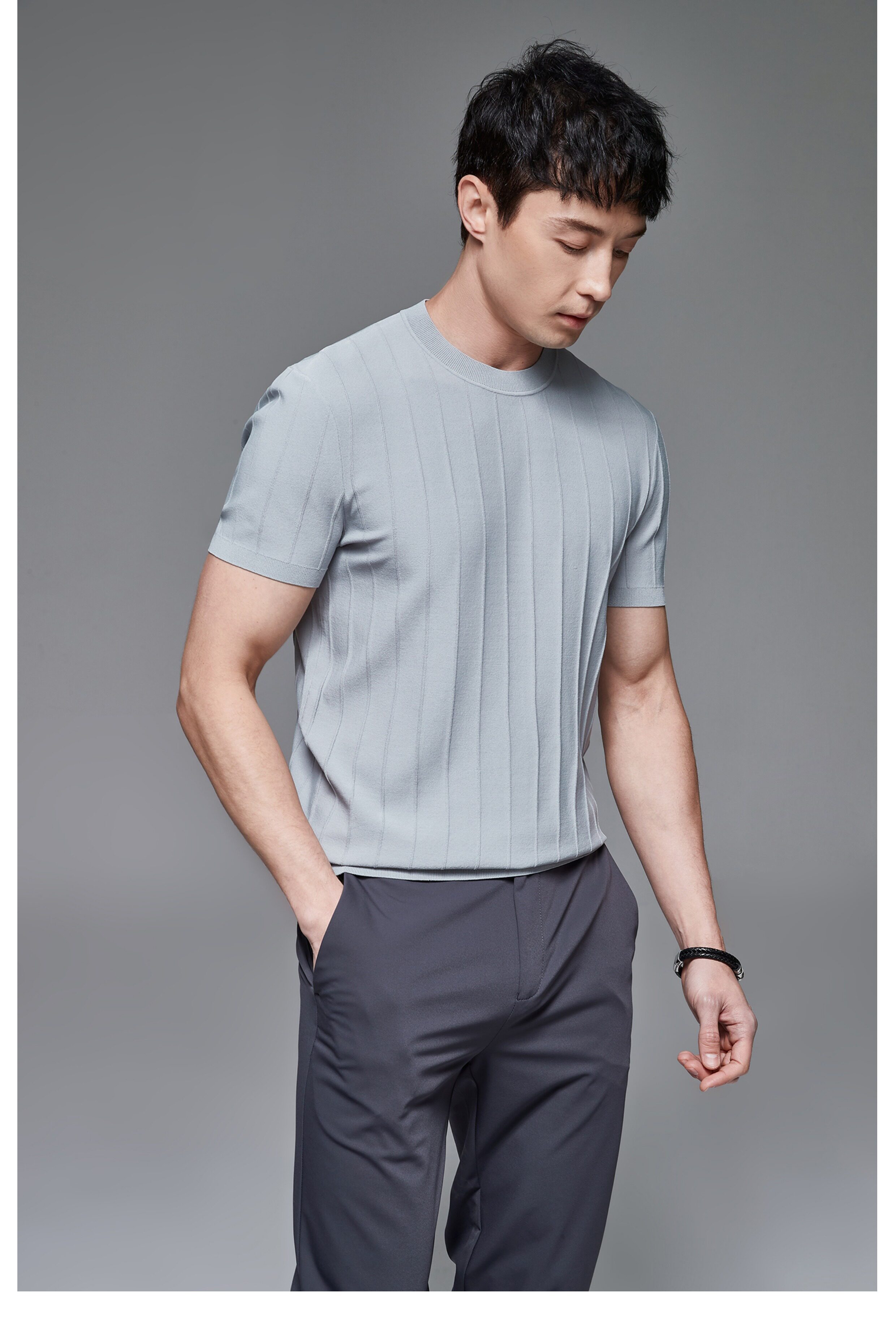 Мужская трикотажная летняя освежающая дышащая цветная футболка с коротким рукавом