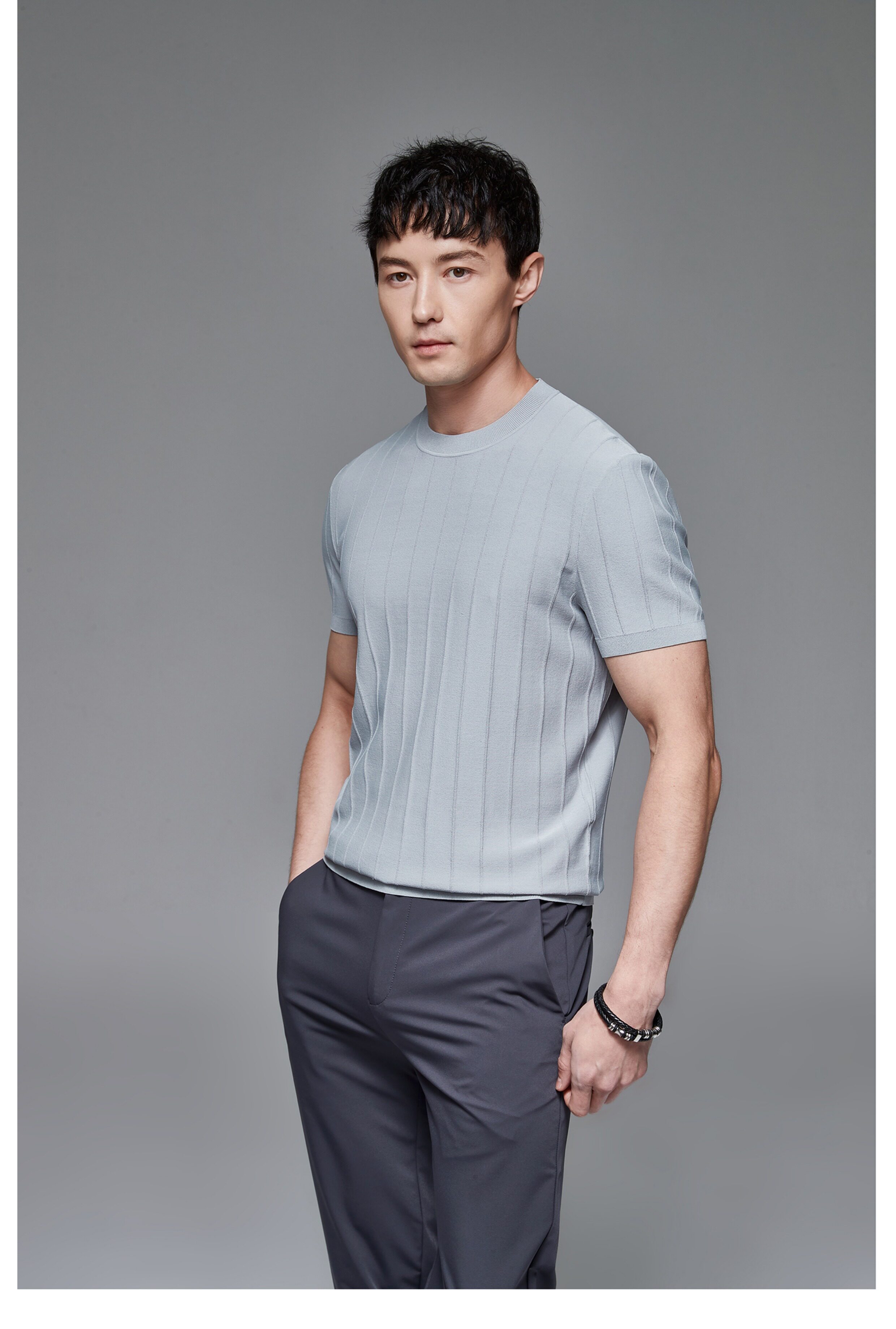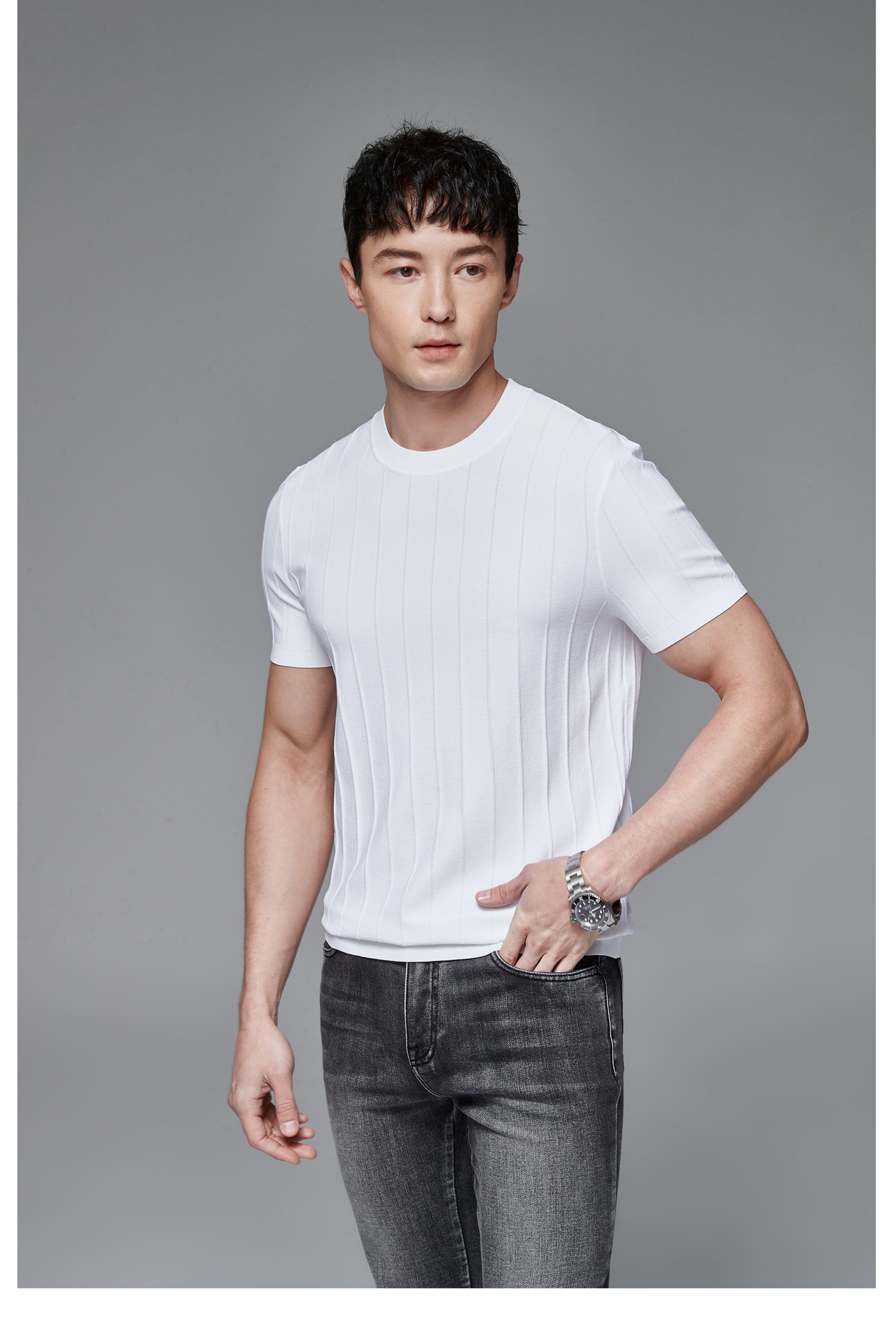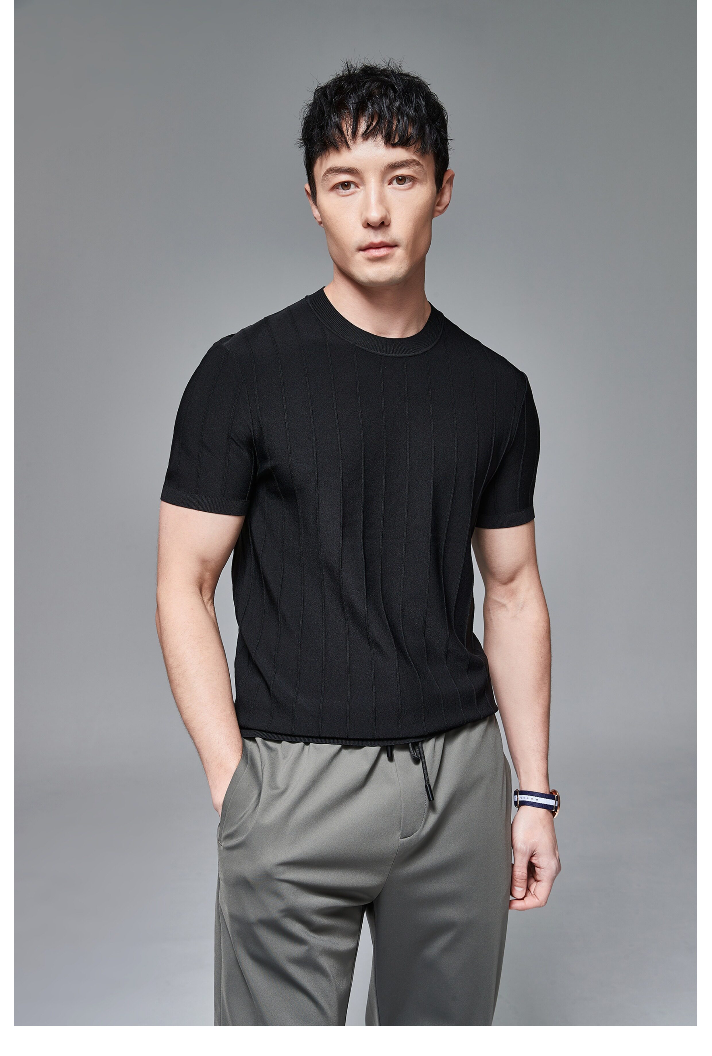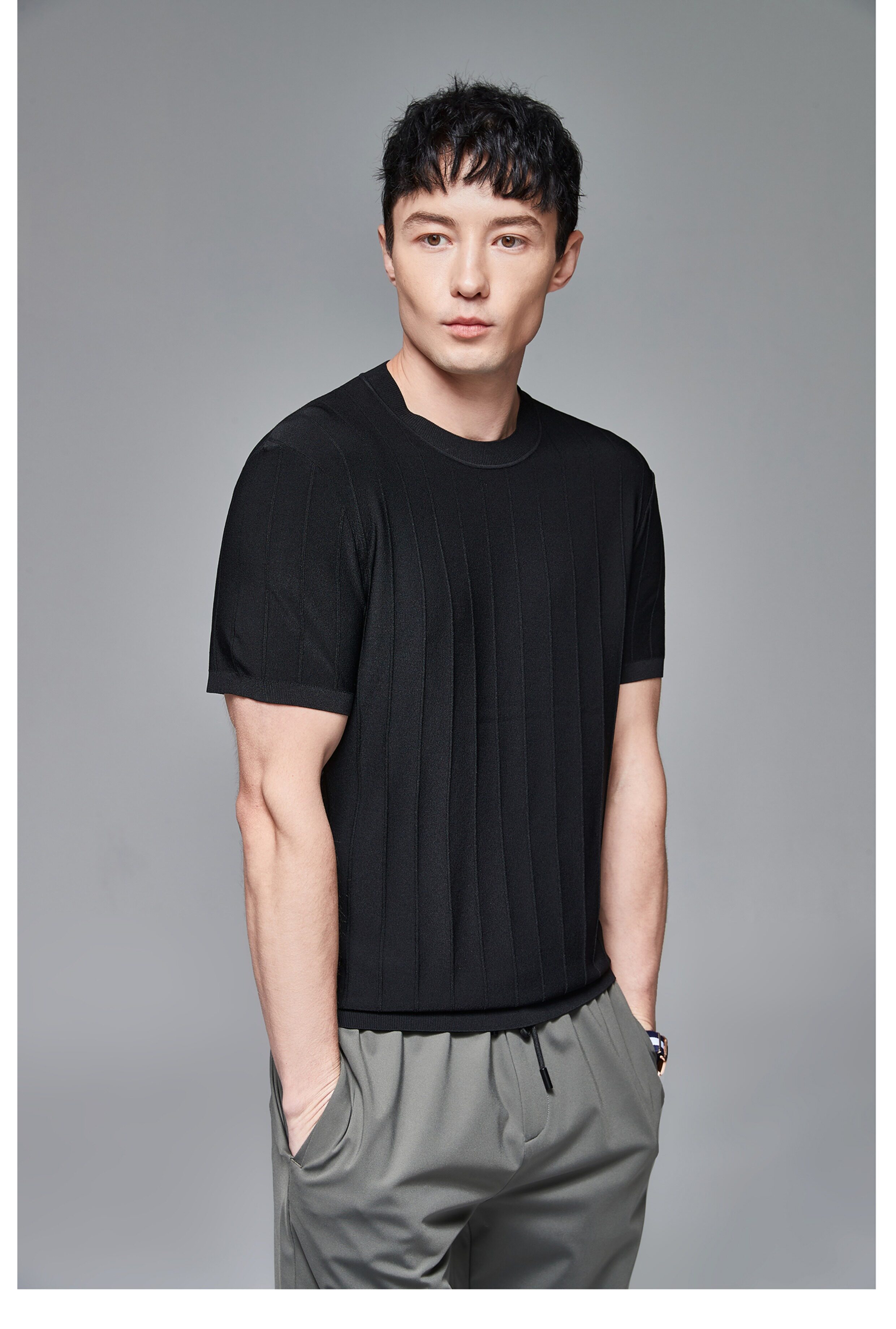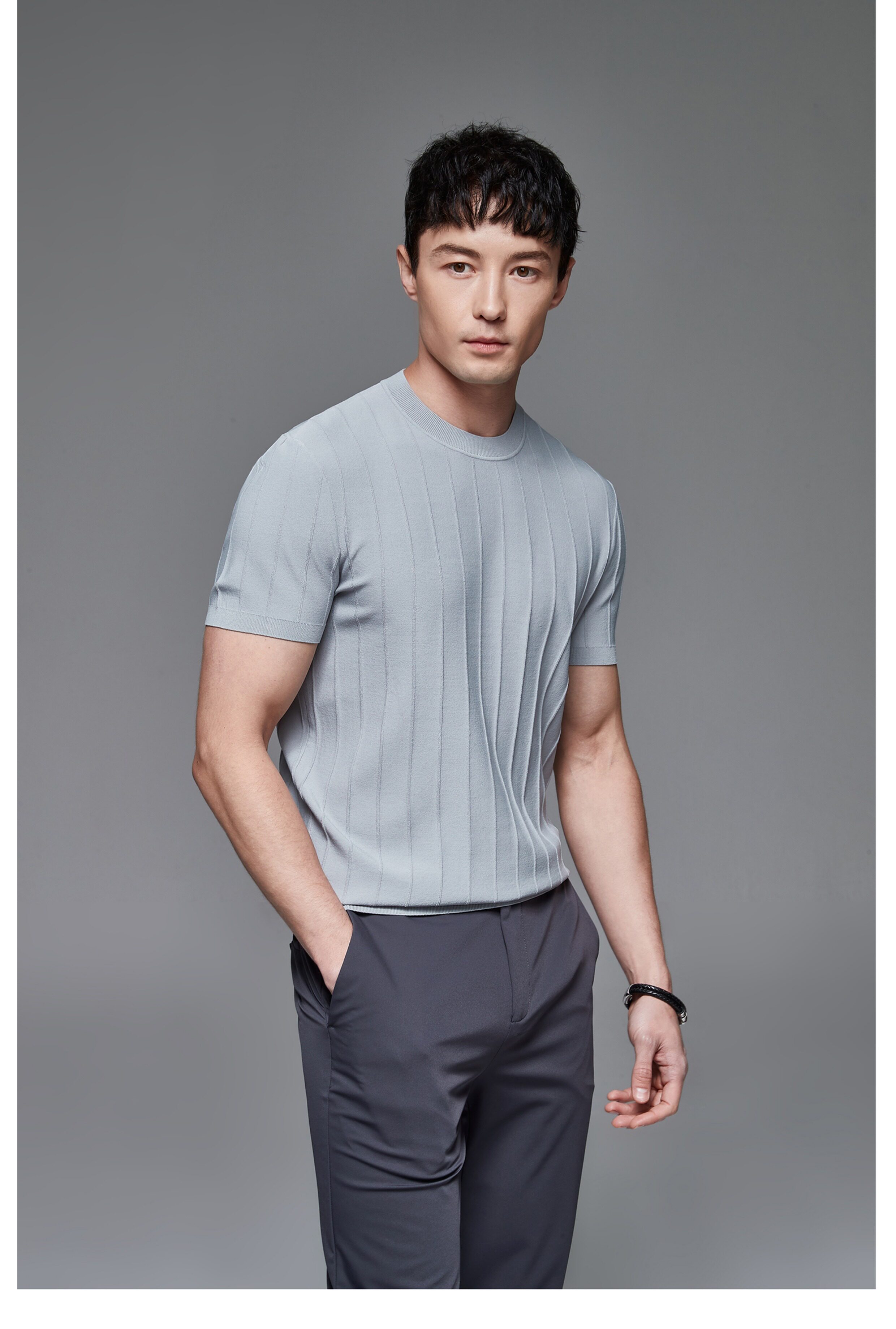 Мужская трикотажная летняя освежающая дышащая цветная футболка с коротким рукавом
