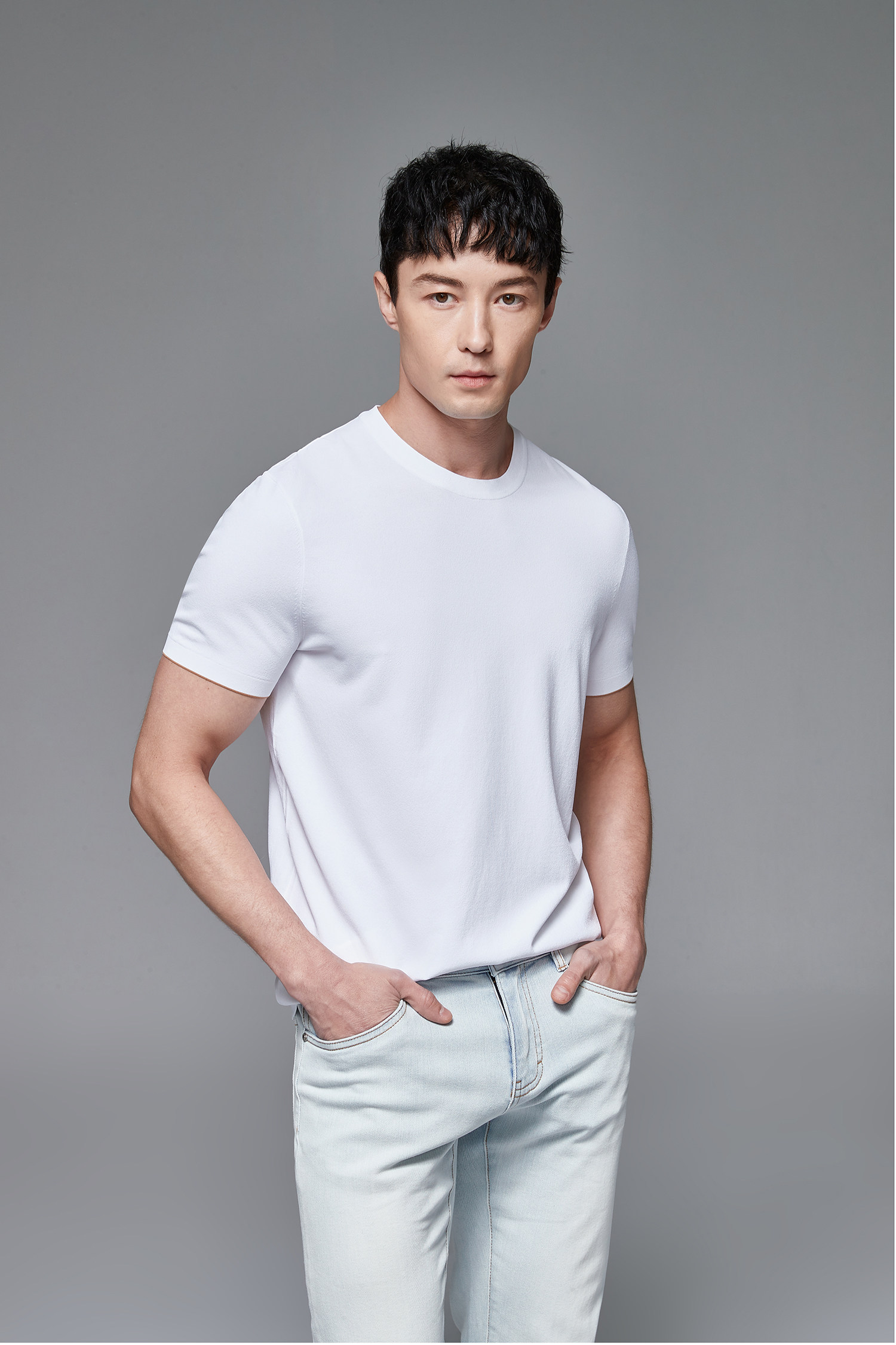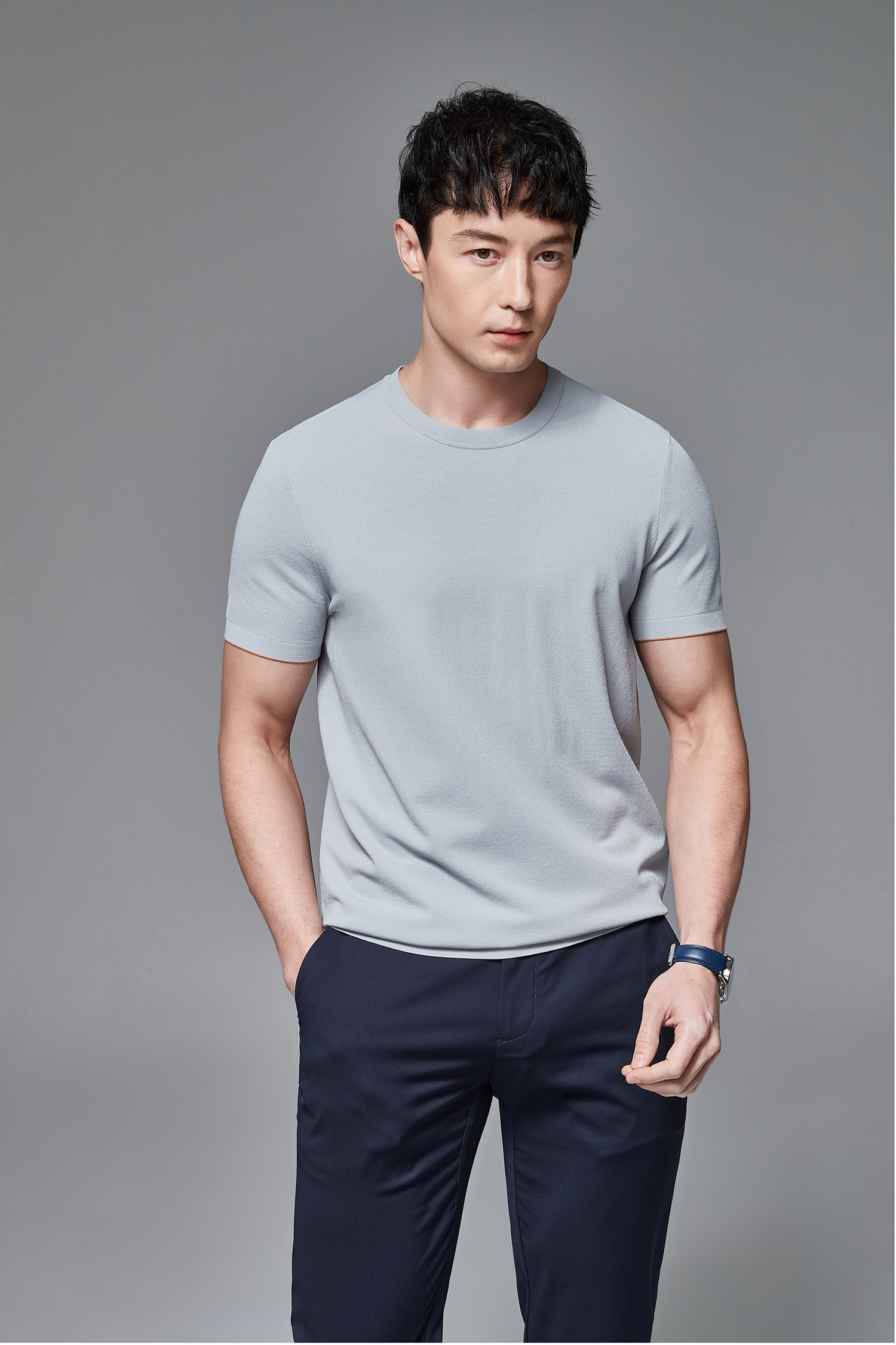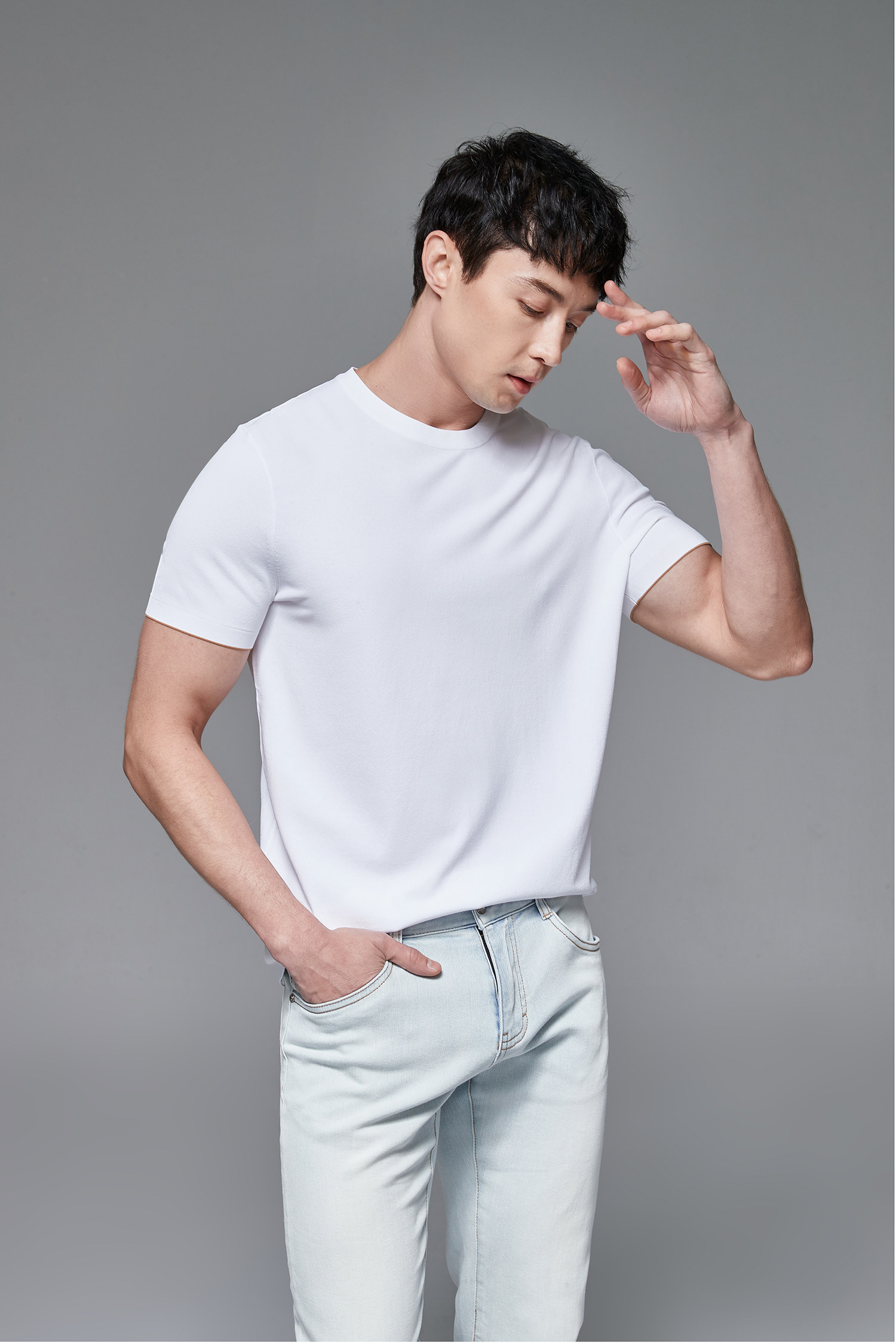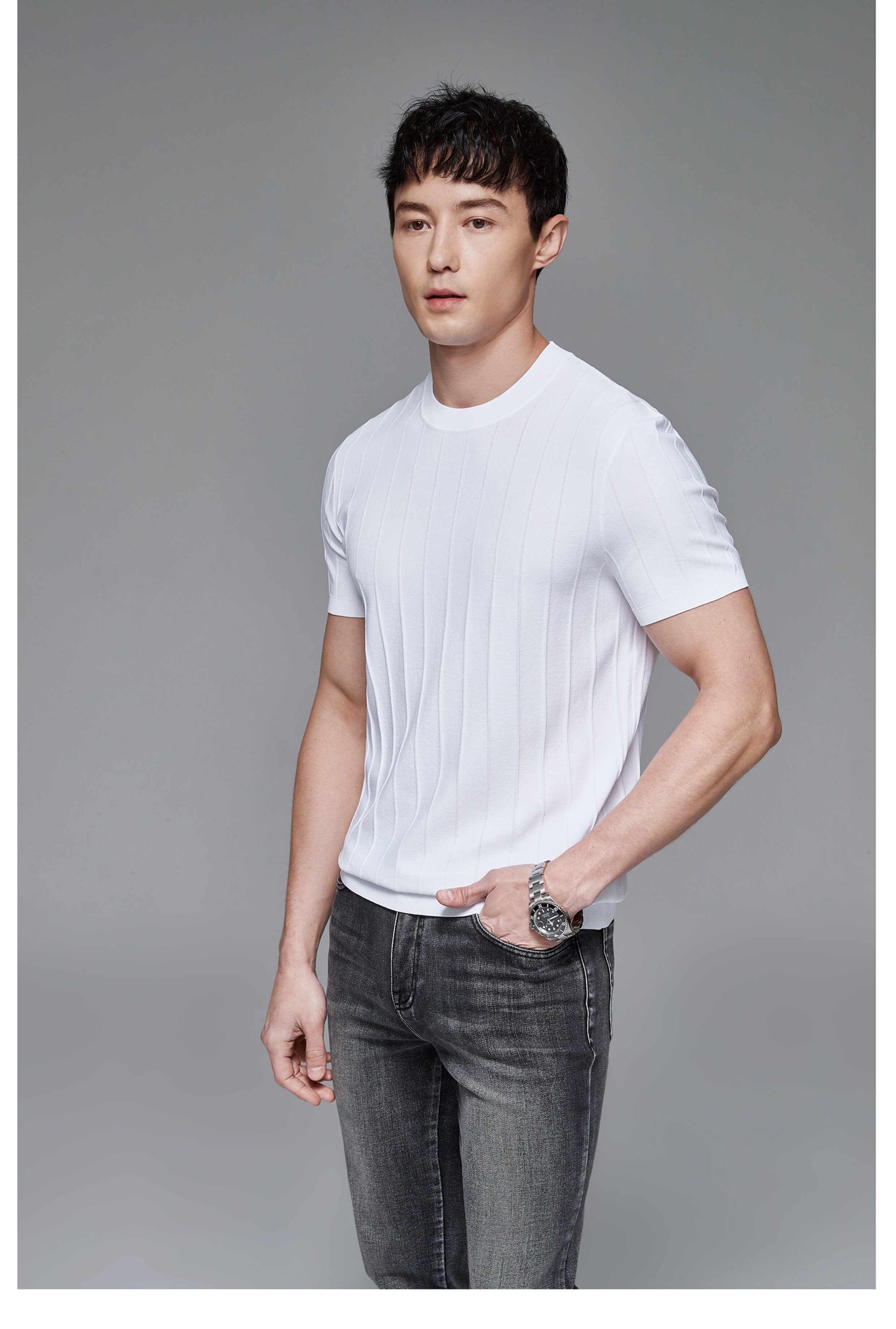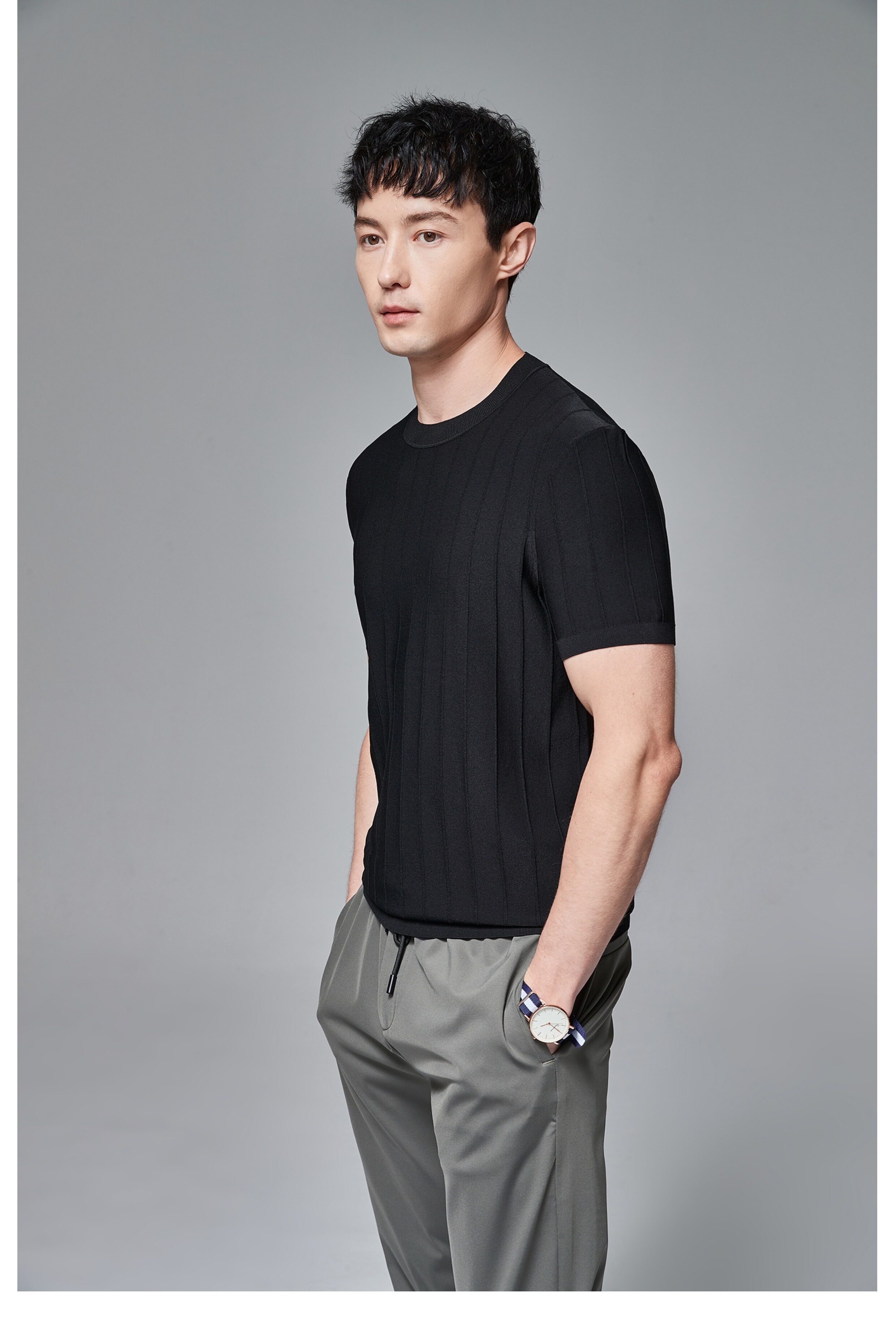 Мужская трикотажная летняя освежающая дышащая цветная футболка с коротким рукавом