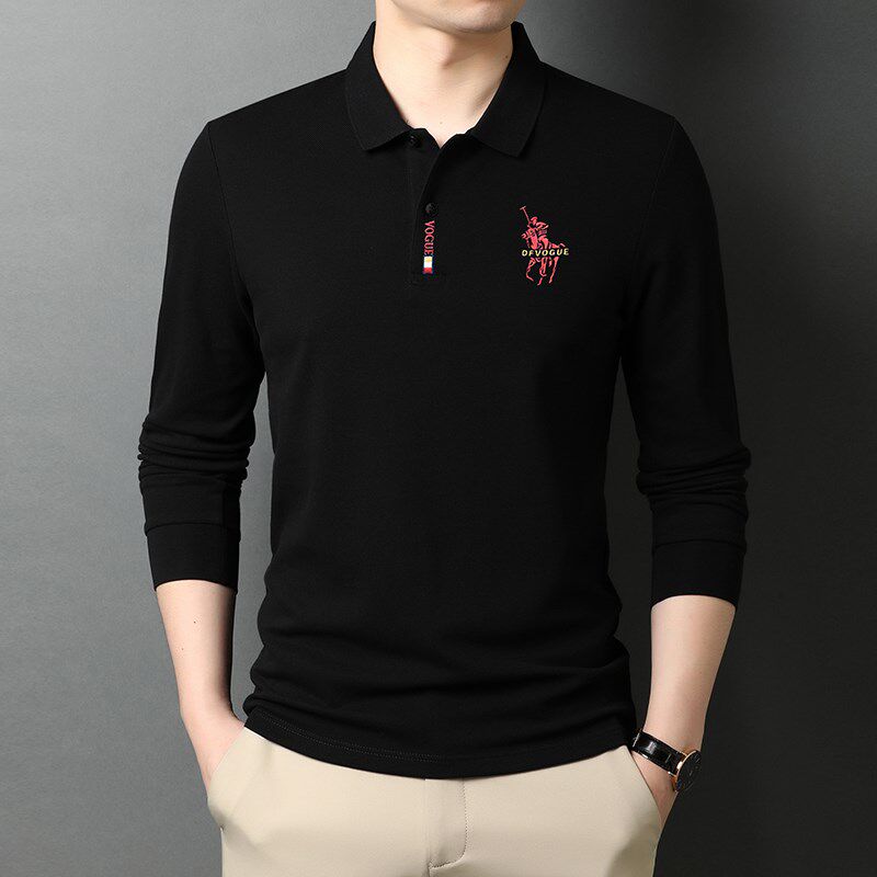Элитная осенняя утепленный лонгслив, хлопковая футболка polo, с вышивкой