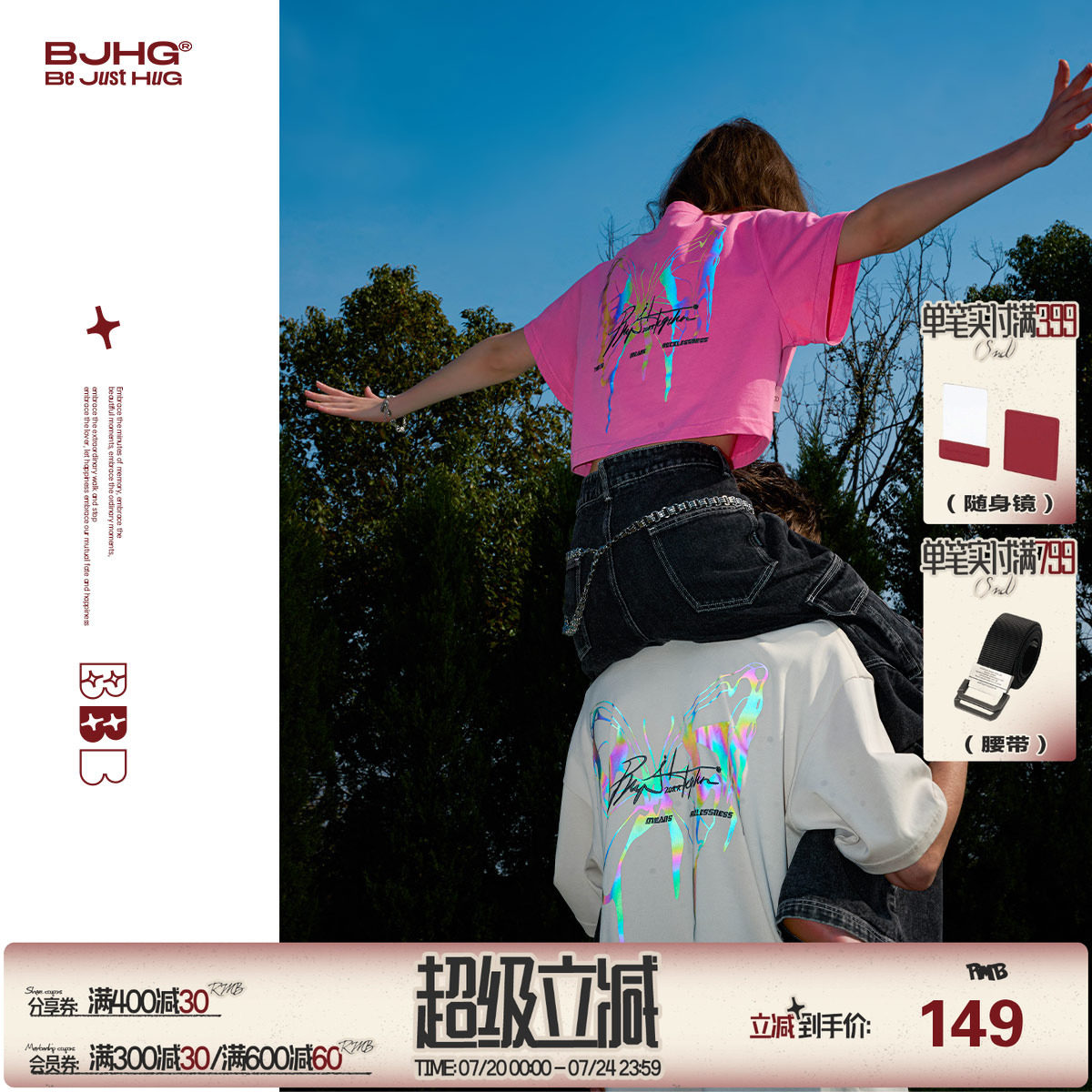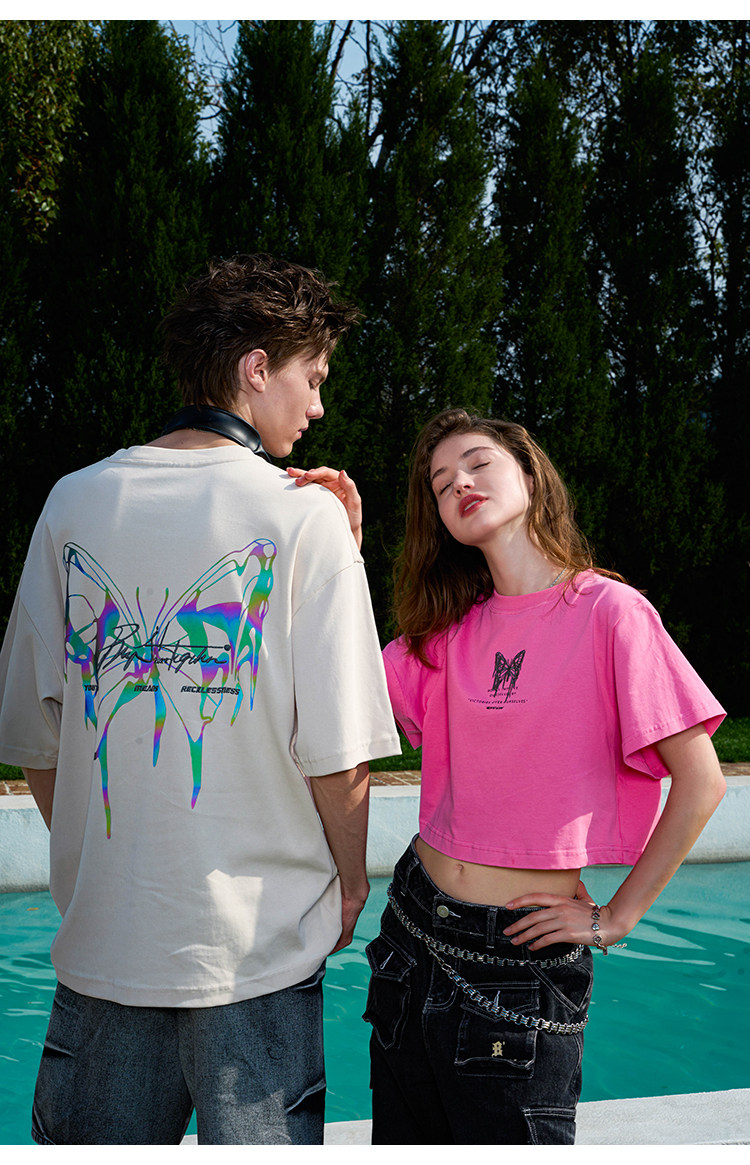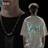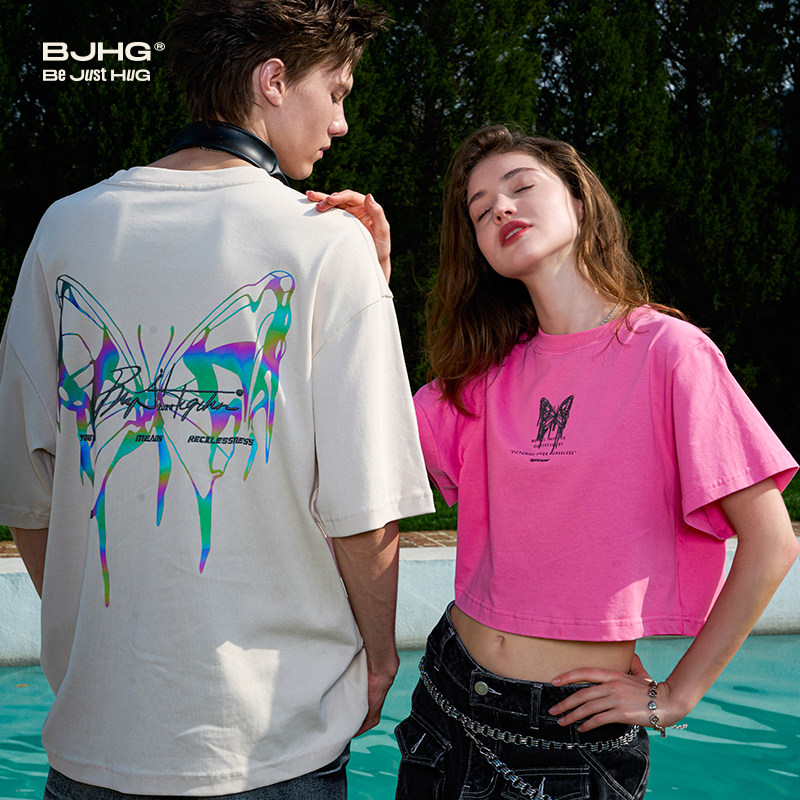 BJHG Светоотражающая летняя спортивная футболка с коротким рукавом для влюбленных, короткий рукав