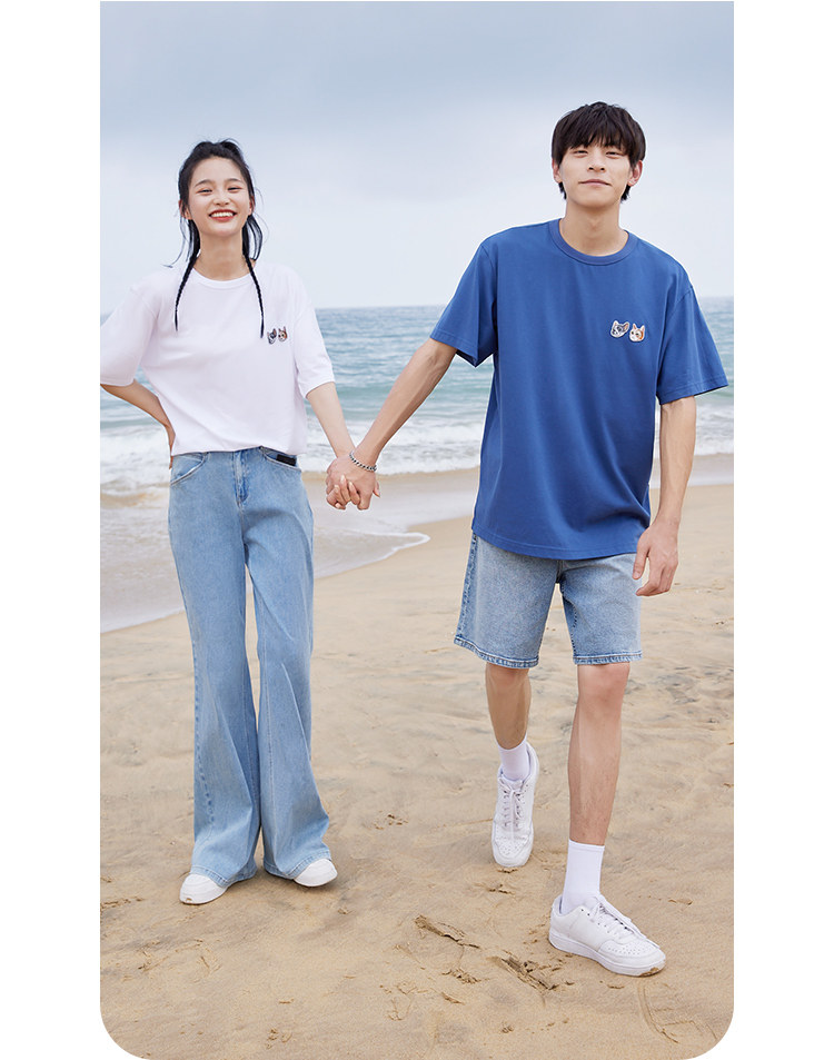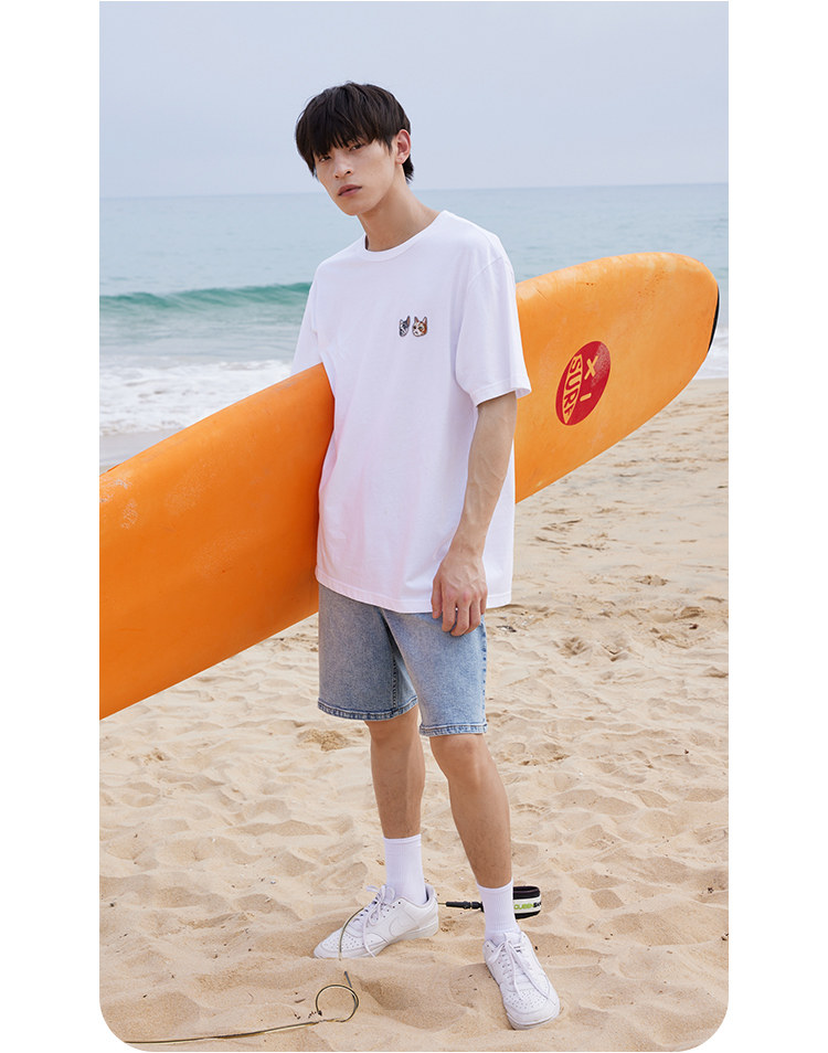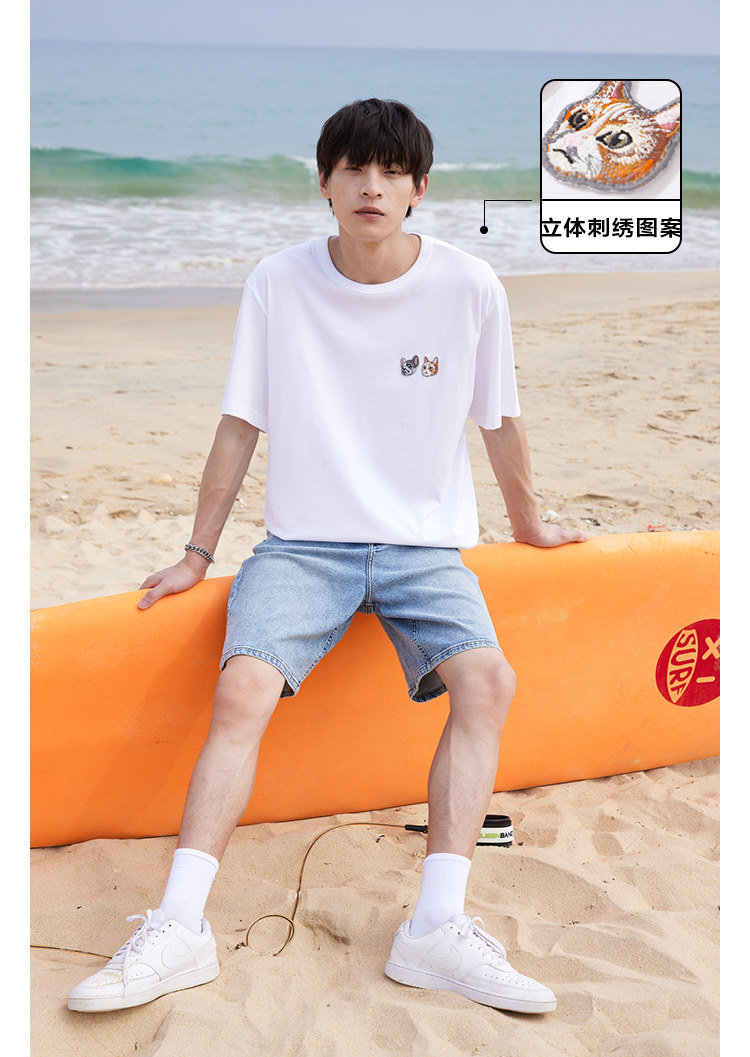 Футболка с коротким рукавом с круглым воротником, универсальный комфортный комплект для отдыха, с вышивкой, принт